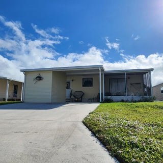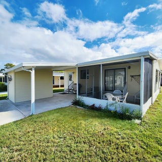 Brand New Roof on this charming 2bed/2bath home w/ a MINI YARD AREA that is tucked away in a quiet & desirable 55+ community. AC less than 2 years old on this well maintained furnished home. The spacious primary bedroom boasts a walk-in closet & a 3 piece en suite. Living room opens up to a bright, Screened in Florida Room. Large Shed for ample Storage. PRIME LOCATION; near shops, grocery, pharmacies & everyday conveniences, this property offers the perfect balance of comfort & accessibility. Monthly lot lease of 594 includes HOA, lawn & trash, a clubhouse w/ activities, a heated pool & spa, shuffleboard, tennis, pickleball, library, social/card room, billiards & more!
