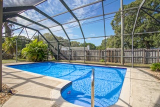 Discover this well maintained 4 bedroom, 3 bathroom CBS, 0.5 acre estate featuring a 2023 metal roof, full accordion shutters, and a private fenced yard with a pool, expansive patio, and a 10x20 shed that conveys. Inside, the home offers a comfortable layout with plenty of space for living and entertaining. The oversized 2.5 car garage includes its own full size bathroom, creating a great opportunity to convert it into an ADU or keep it an ideal workshop. This property delivers security, versatility, and true Florida living.