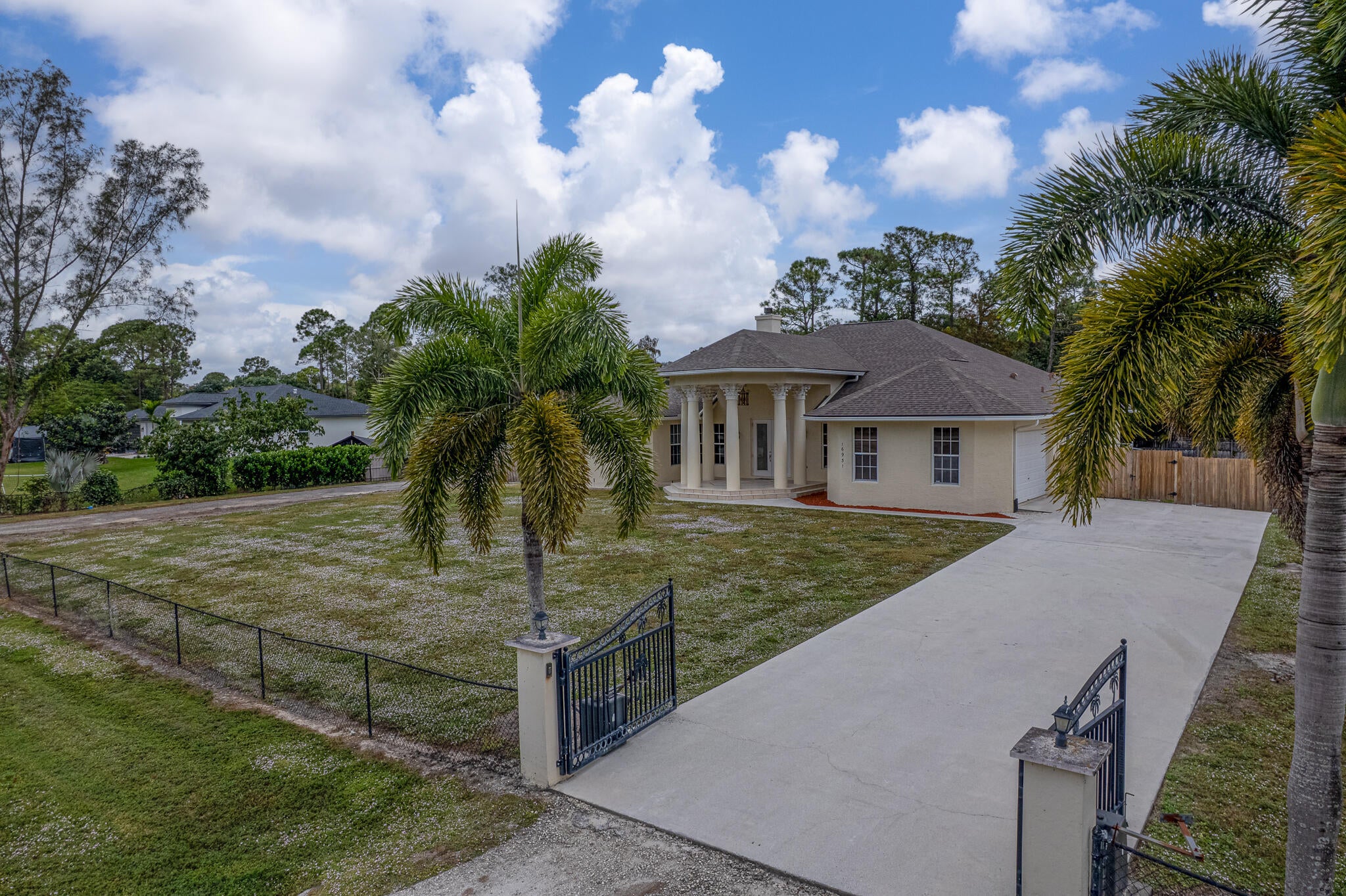 Move in ready home perfectly situated on a fully fenced 1.25-acre lot with two gated entrances--offering privacy, space, and unmatched versatility. Located in desirable Loxahatchee with NO HOA, this property provides the freedom to live the lifestyle you want, whether that means bringing your toys, animals, or building additional structures. Step inside to find an inviting, open layout featuring all-tile flooring throughout, making the home both stylish and easy to maintain. The thoughtful split-bedroom floor plan offers comfort and privacy for family and guests alike. Major updates bring peace of mind, including a new roof (2023) and two newer hot water heaters, ensuring efficiency and reliability for years to come. Outside, the expansive yard offers endless possibilitiesadd a pool, expand your outdoor living space, or simply enjoy the tranquility of wide-open green space. With plenty of room to park boats, RVs, or work vehicles, this property is ideal for those who need extra space. Prime Location! Just off Seminole Pratt Whitney Road and Okeechobee Blvd you'll enjoy quick and easy access to shopping, dining, and entertainment. Commuting or traveling is a breeze with convenient access to Palm Beach International Airport, and weekend fun is always within reach with the beautiful West Palm Beach beaches only a short drive away. This is the perfect opportunity to own a beautifully updated home on acreage in one of Palm Beach County's most sought-after communities. Don't miss ithomes like this don't last!