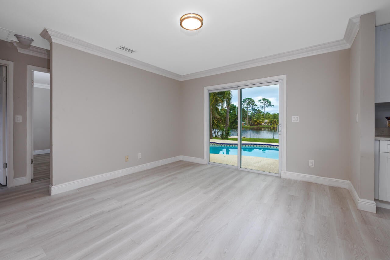 Remodeled 2 Bed/2 Bath Pool Home on an Oversized Lot at the end of a cul-de-sac with Spectacular Water Views. The bonus room allows for flexibility to fit any family's needs. This home offers a tranquil oasis with lots of natural sunlight in a non-HOA community. Relax by the pool or on the wood deck overlooking the lake. Metal Roof, Skylights, Hardy Board Planking and Impact Glass Windows were installed in 2021, as well as a new A/C unit. The extra large Shed has power and impact glass. There's plenty of room to back up your boat or RV, so bring your toys! If you enjoy the outdoors, you're only a short drive to beautiful Hobe Sound Beach and Jonathan Dickinson State Park. Come take a look and fall in love!