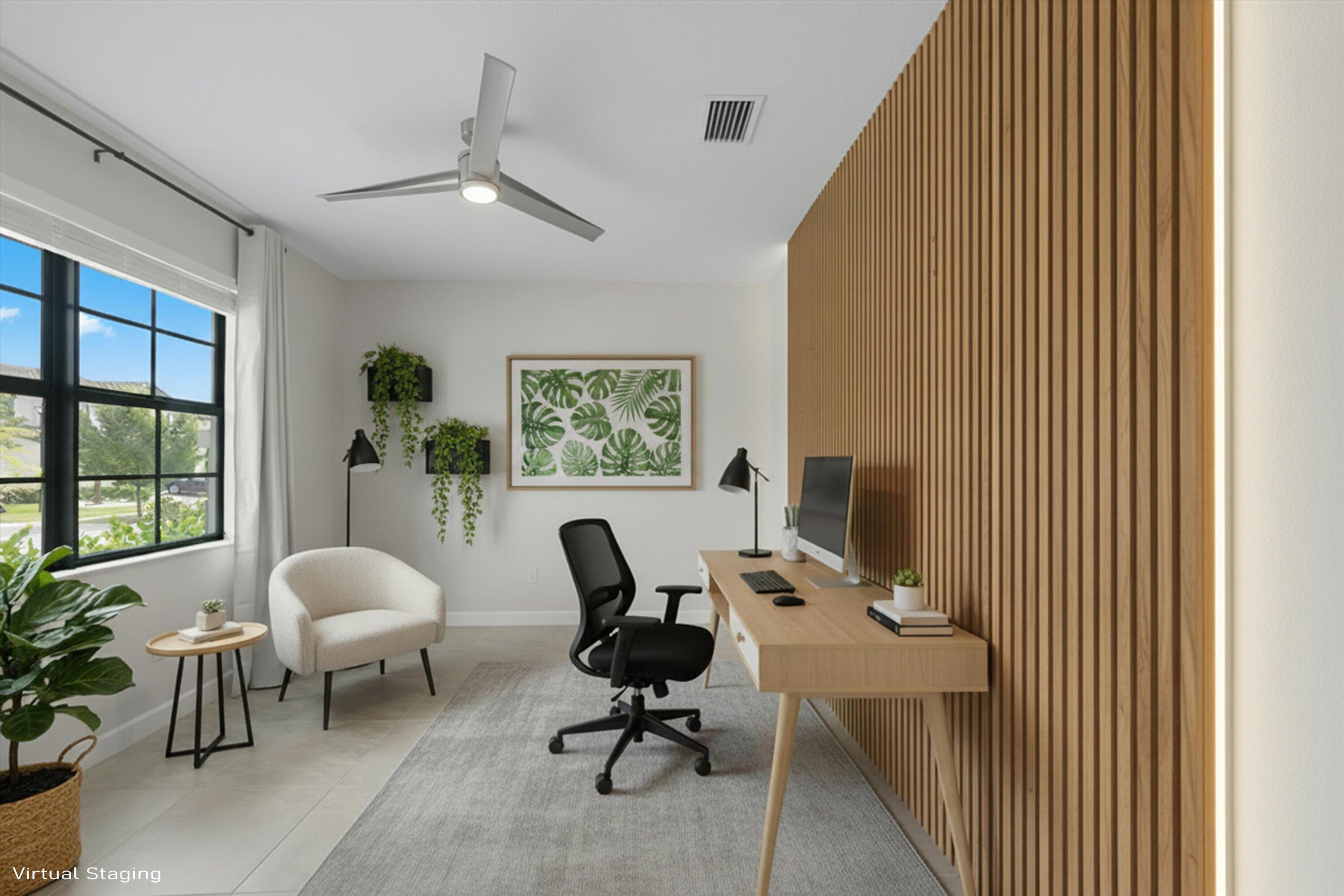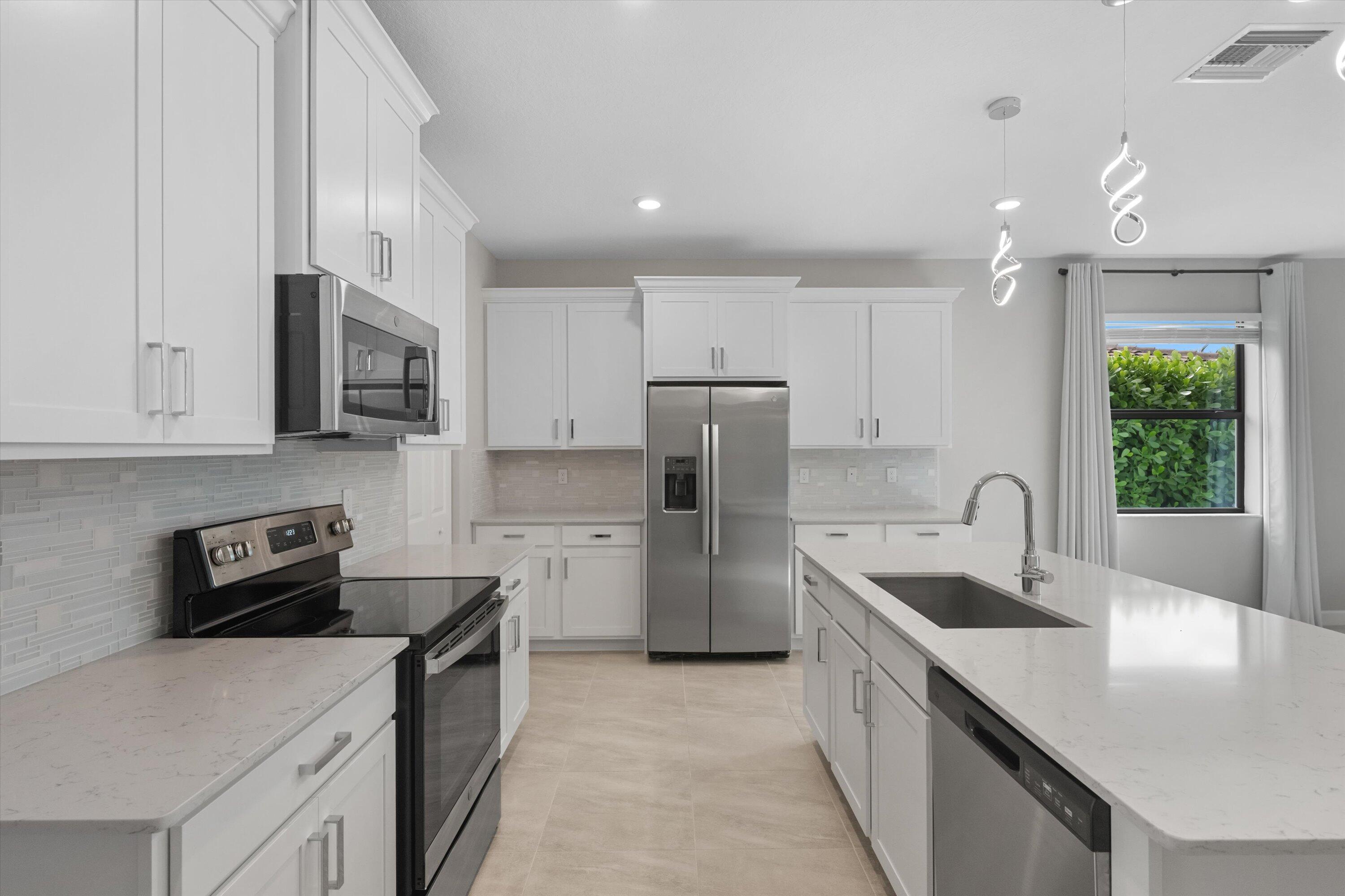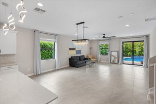 Stunning 5-Bedroom Home with Loft, Den & New Pool - Built in 2022 | 3,185 Sq Ft Under AirThis beautifully maintained 5-bedroom home with a loft, den, and newly installed pool offers 3,185 sq ft of living space under air and an exceptional layout. Built in 2022 and owned by only one owner, the property lives like brand-new construction and includes impact windows and a new roof.The primary bedroom is conveniently located on the main level and features generous closet space and a well-appointed en-suite bath with a separate shower. The state-of-the-art kitchen includes GE appliances, white cabinetry, quartz countertops, and an oversized walk-in pantry. A bright den/office and a laundry room with new front-load washer and dryer are also located on the first floor, along additionalstorage under the stairs. The spacious family room overlooks the newly completed pool area, which features travertine decking, lush privacy landscaping, a sundeck, and a waterfall. The covered patio provides an ideal space for outdoor entertaining. Upstairs, you'll find four well-sized bedrooms, two full bathrooms, and a large loft perfect for additional living or recreation space. The 3-car garage includes a Tesla wall charger. Located in the desirable Bellesera community in Royal Palm Beach, this home offers convenient access to Madison Green Golf Club, dining, shopping, and more. Community amenities include a clubhouse, resort-style pool, fitness center, card room, playground, and tennis courts. All homes in the community are "Connected Homes" with Wi-Fi certification to reduce dead spots and Amazon Alexa integration for voice control. Please note some of the photos are virtually staged.