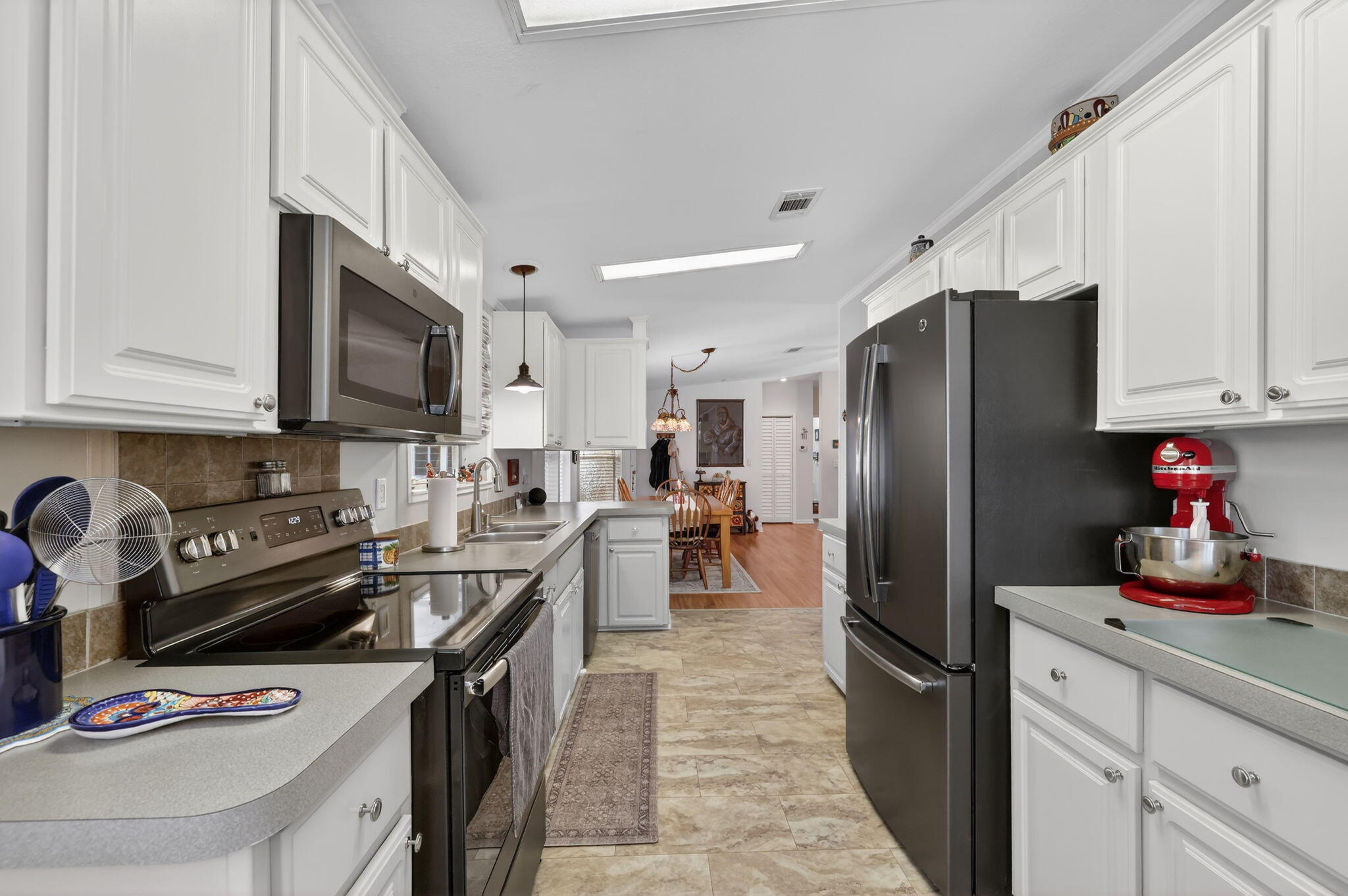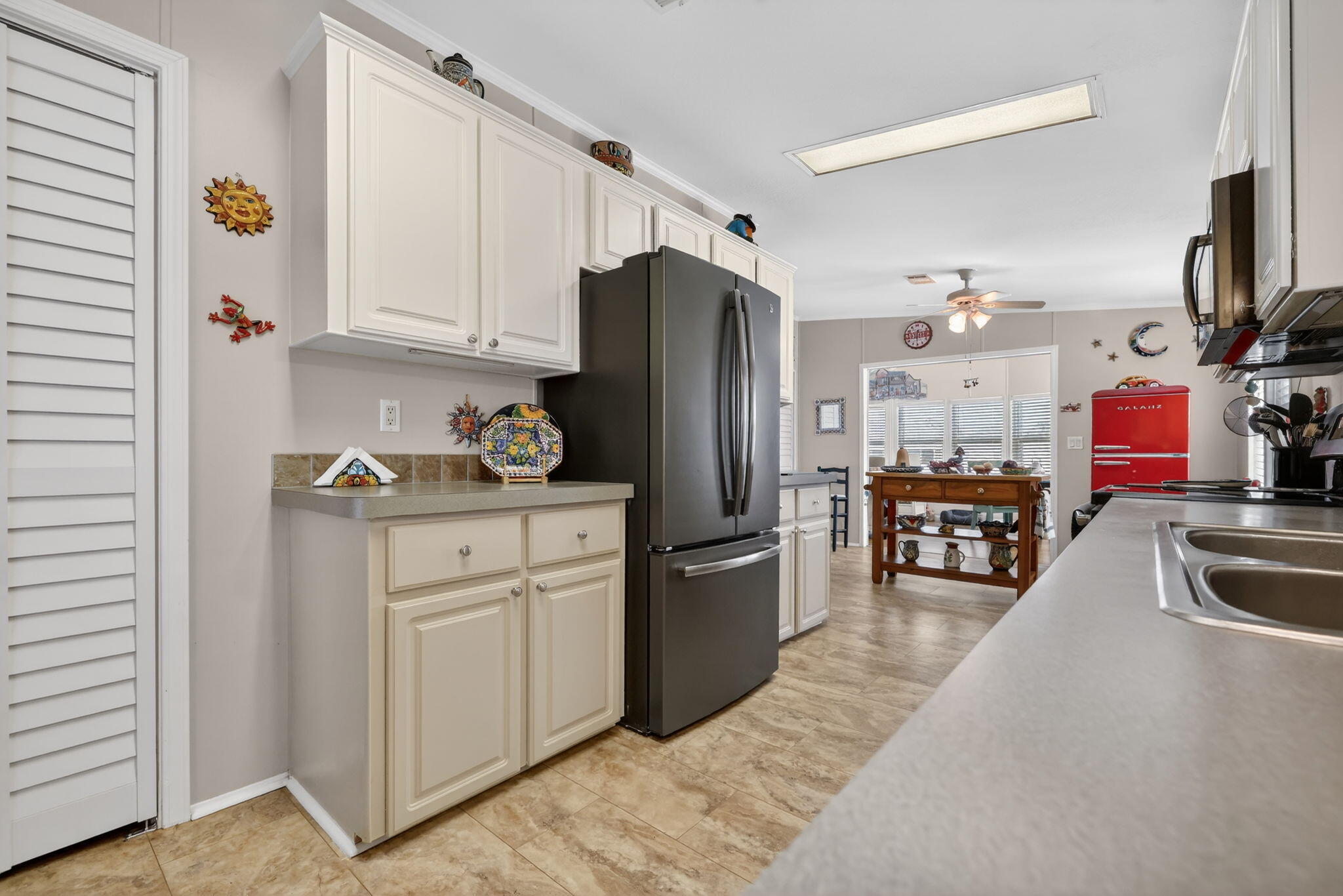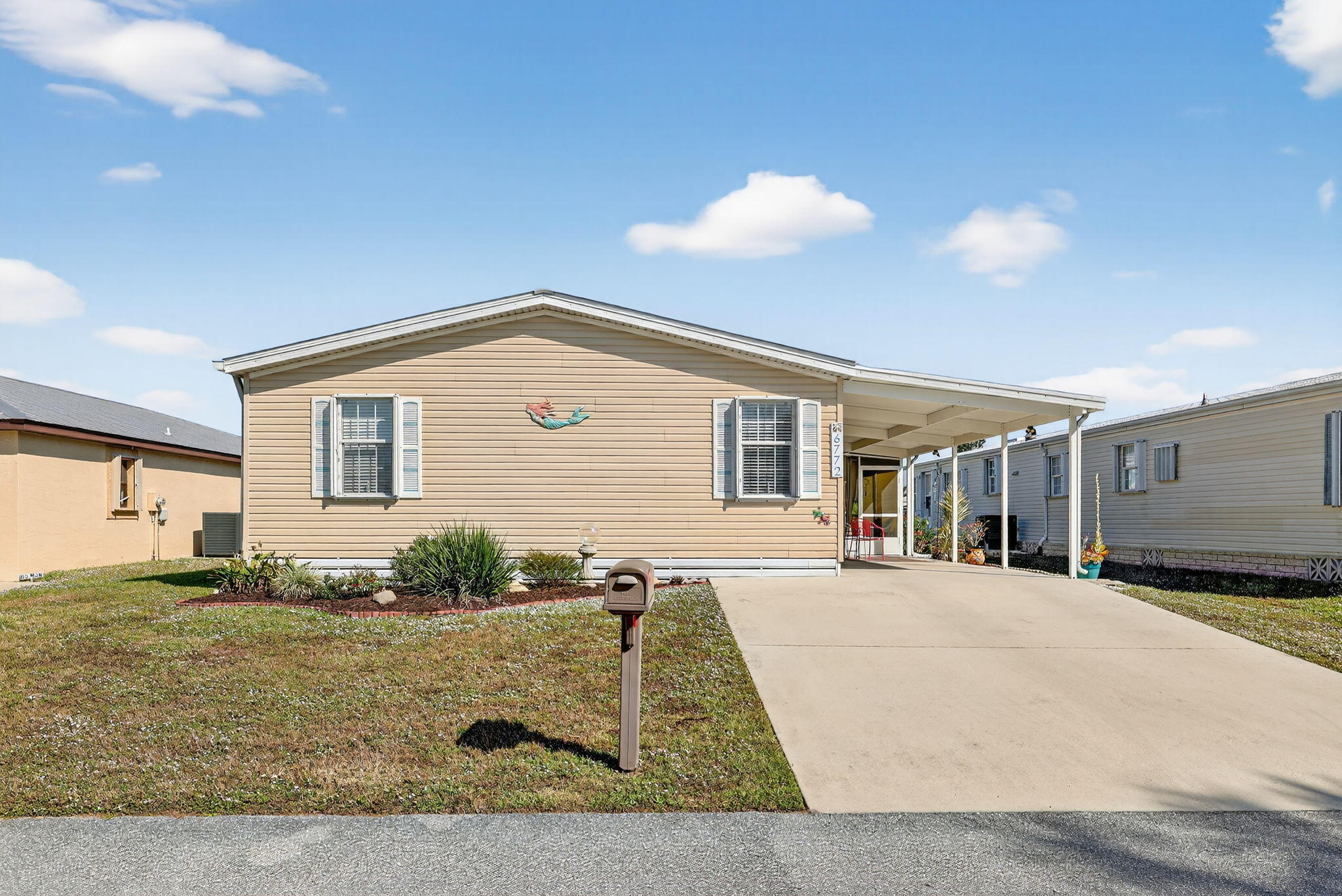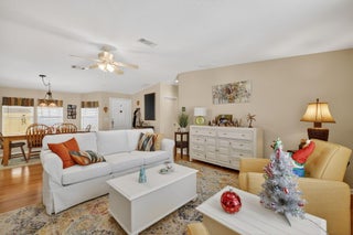 Beautifully updated 3-bedroom, 2-bath mobile home built with house-like quality, featuring drywall walls and ceilings, vinyl flooring, and a stunning kitchen overlooking the family room and lake. Located in a vibrant 55+ community with golf and many amenities. Enjoy peace of mind with a 2017 metal roof, 2023 water heater, and numerous recent upgrades. Spacious, bright, and move-in ready--this one won't last. Call today before it gets away! Professional Photo's coming soon.