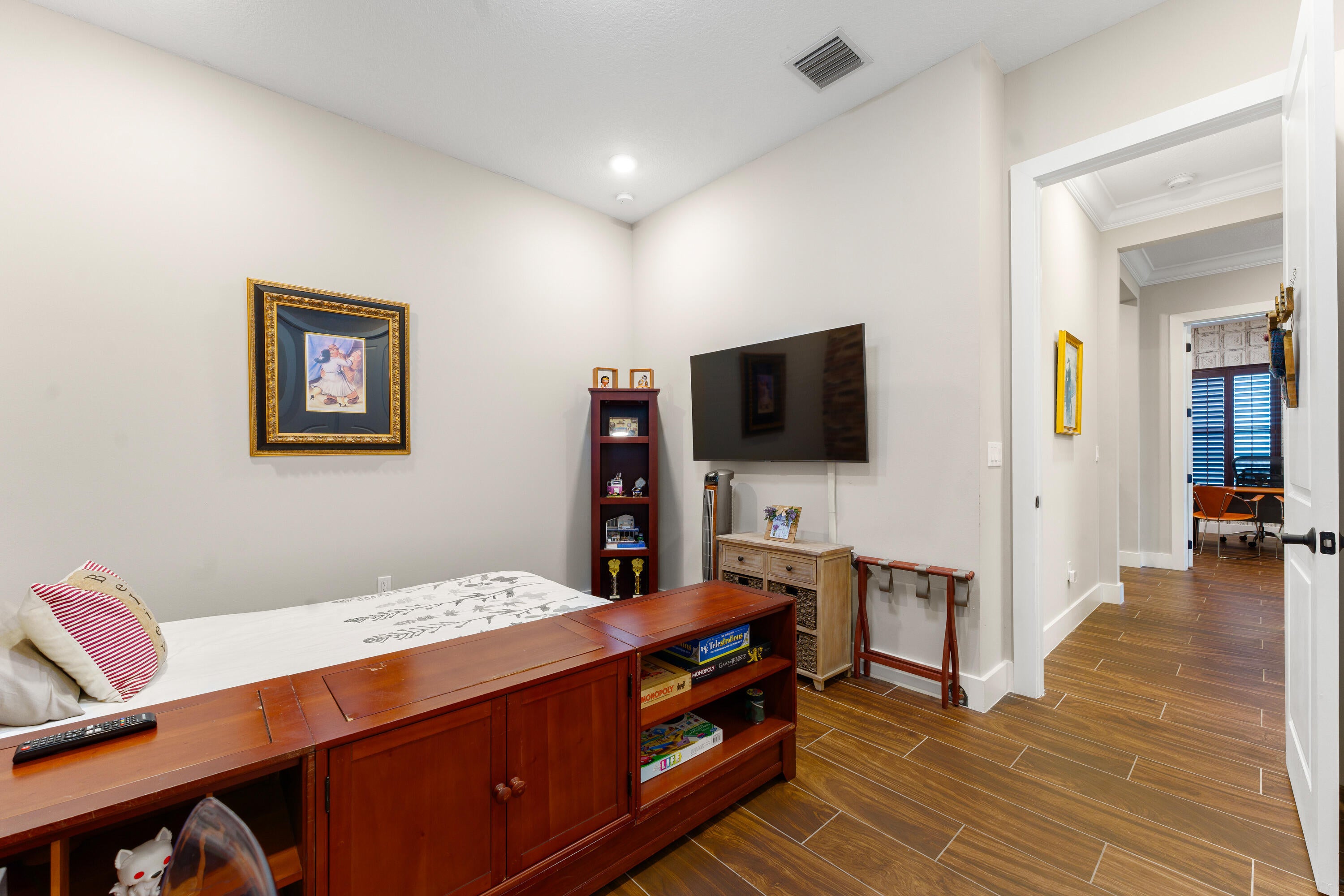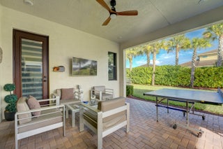 Welcome to this stunning 3 BR + den / 3 BA residence in the desirable Cresswind Palm Beach community. This extended 2,200 sq. ft. Dania model, loaded with over $100,000 in upgrades, blends modern luxury with everyday comfort.Step inside to find designer appointments throughout, including plantation shutters, motorized patio shades, and wood-look tile flooring that flows seamlessly through the entire home. The spacious, contemporary kitchen is a chef's delight--showcasing a stainless steel gas cooktop, microwave/convection oven, oversized stainless steel sink, built-in wine refrigerator, and a French-door pantry.The home's extended private lanai offers the perfect setting for outdoor living and entertaining, complete with gas hook-ups ready for a future outdoor kitchen.Unwind in the serene primary suite featuring a spa-inspired bathroom with glass-enclosed shower, spa-style fixtures, and a custom walk-in closet outfitted by The Container Store. Two additional guest bedrooms provide comfort and privacy one with an ensuite tub bathroom, and the other conveniently located near the third full bathroom with a glass-enclosed shower. The den with French doors offers flexible space and can be easily converted into a fourth bedroom with the addition of a closet. All this in the Prestigious Cresswind at Westlake a residential community offering a range of amenities tailored for active adults 55+. Move-in ready, newly finished home. World-class amenities, Clubhouse, Very active community, Silver Award Winner - Best of 55+ Housing Awards (National Association of Home Builders)" "2021 "Top 100 Places to Live" (ideal Living Magazine)" The community clubhouse, managed by a full-time lifestyle director, offers a SmartFIT Training Center powered by EGYM, event and game rooms, an arts and crafts studio, pickleball and tennis courts, a dog park, resort-style and resistance pools, a spa, outdoor event plaza, and much more. Westlake Adventure Park amenities include a lagoon pool with a 3-story slide, a splash pad, cabanas, lawn space for parties, an outdoor concert pavilion, basketball courts, an adult pool clubhouse (lodge), a playground, a dog park. As an owner, you also have access to Westlake's Adventure Park. Cresswind HOA covers lawn maintenance, internet and the community amenities.