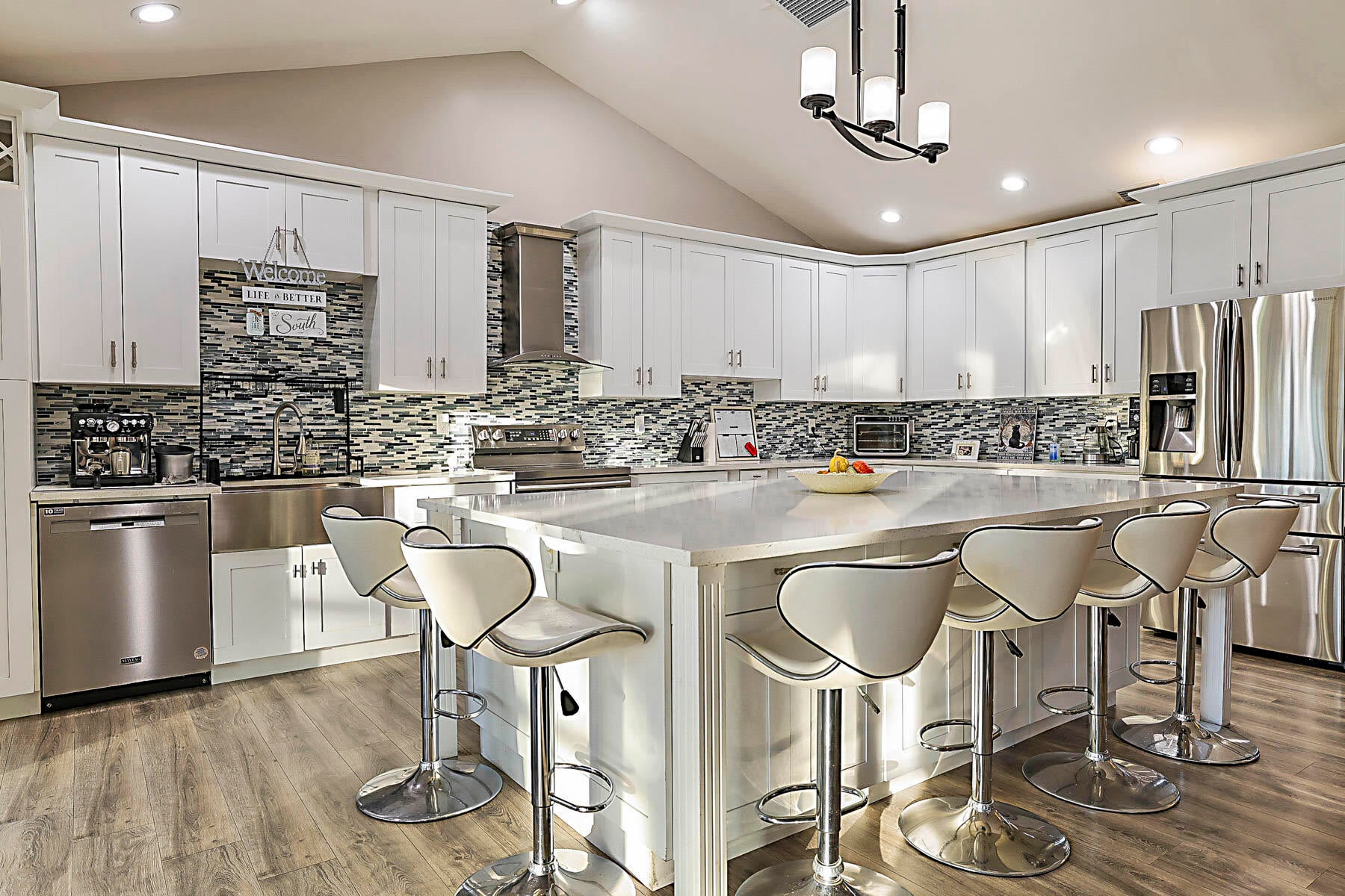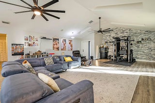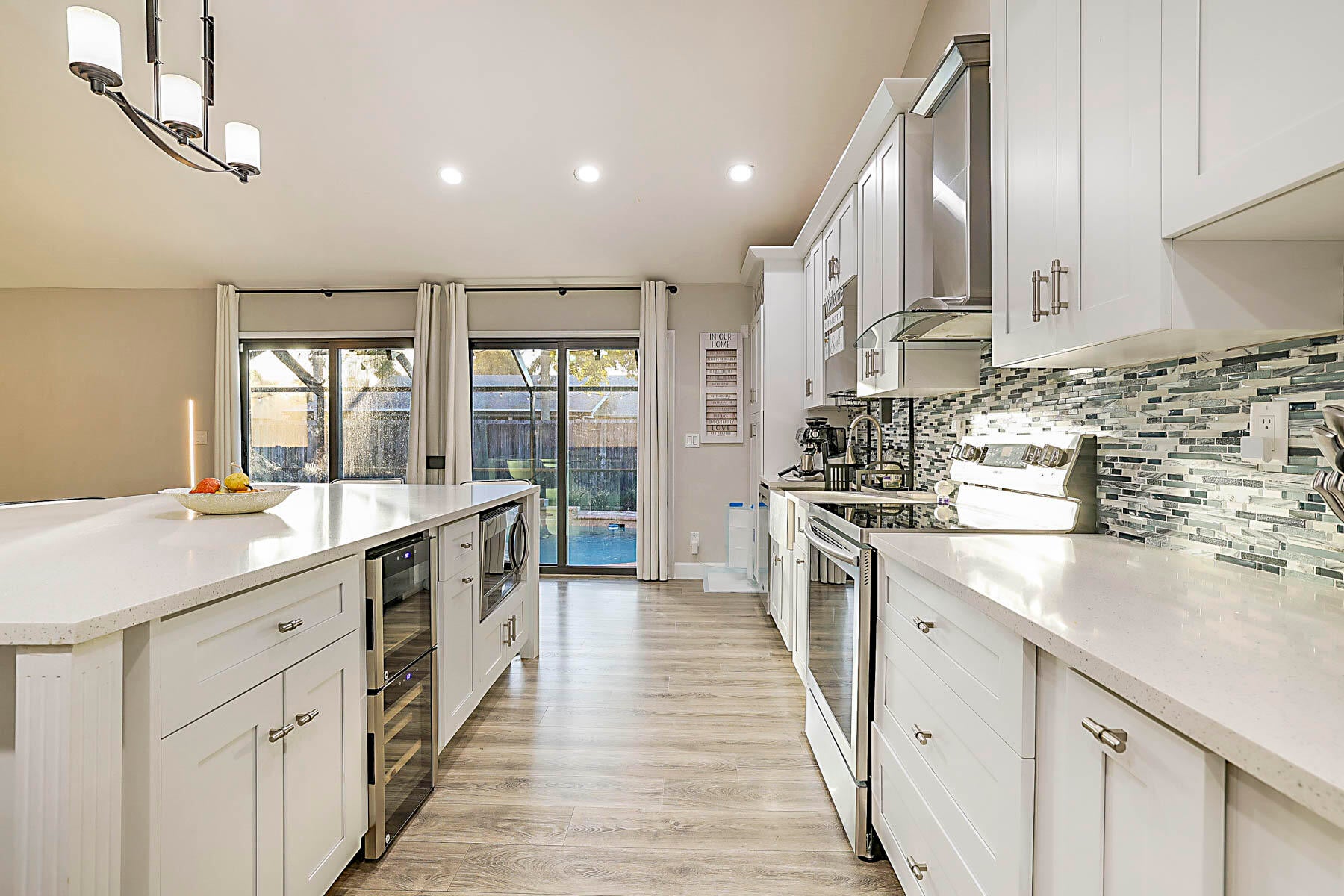 Absolutely stunning open concept floor plan featuring a dream kitchen offering plenty of storage, stainless steel appliances and a huge island, fully remodeled bathrooms, vaulted ceilings, in-ground pool, screen enclosure and aluminum pan roof installed in 2023, roof replaced in 2022, all new impact glass 2024, newer A/C and hot water heater, side entry garage and a fenced-in yard. This is a truly special home and not to be missed!