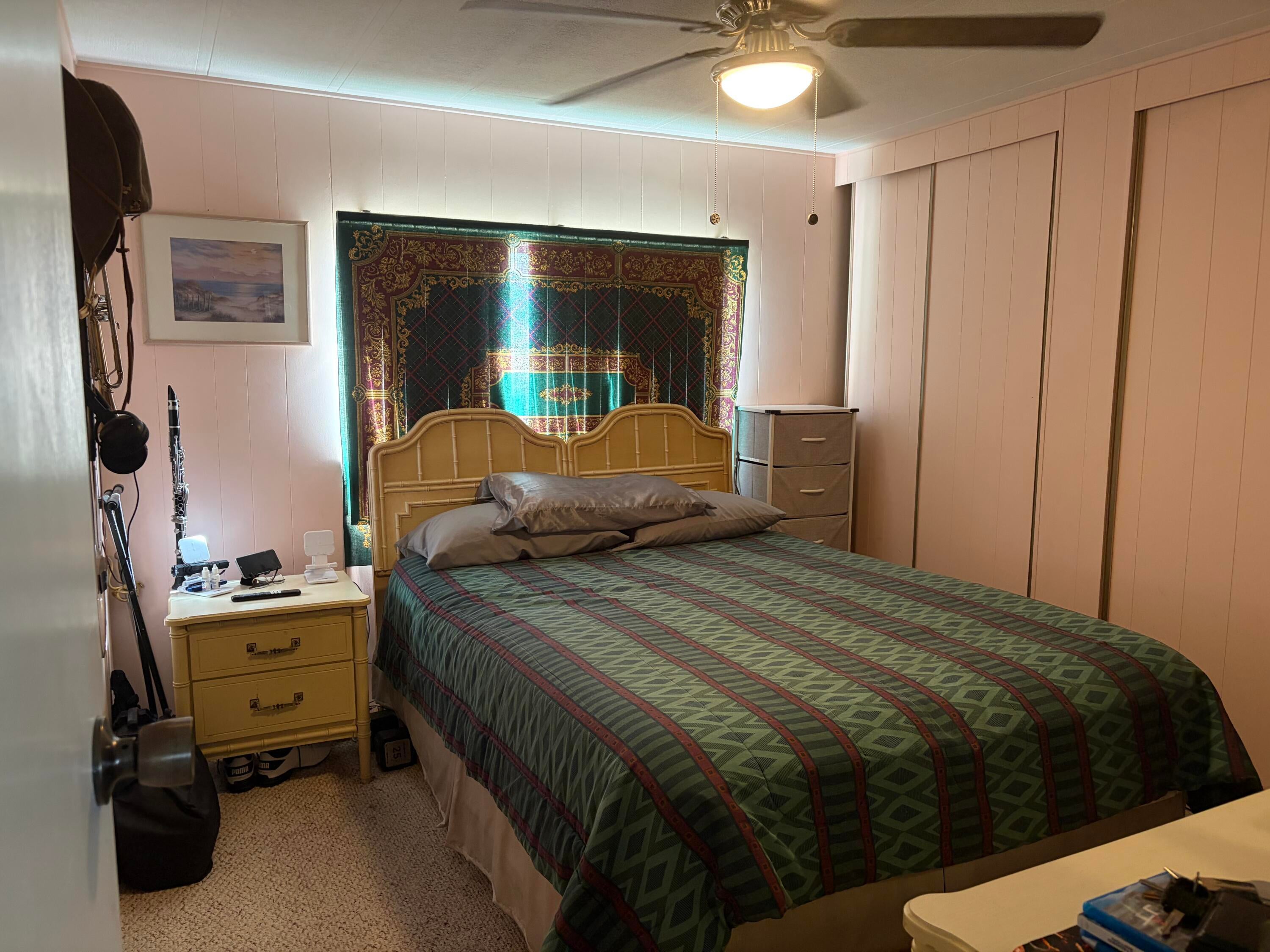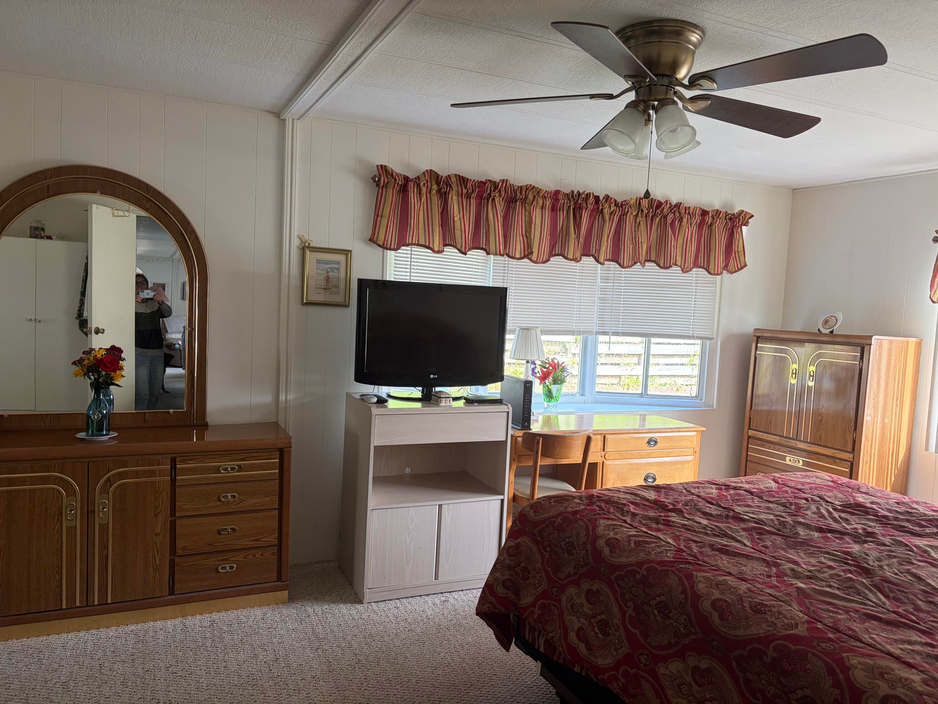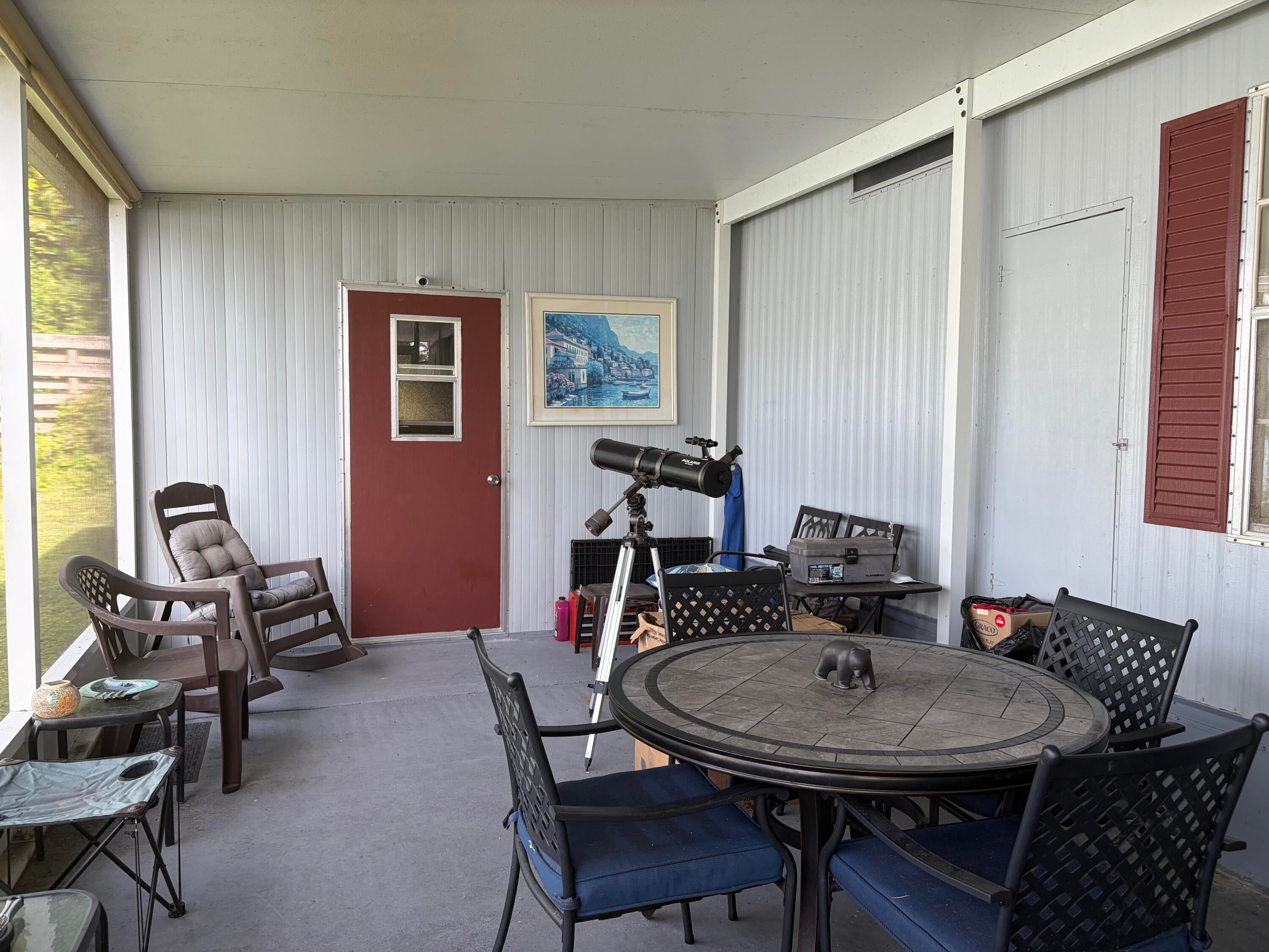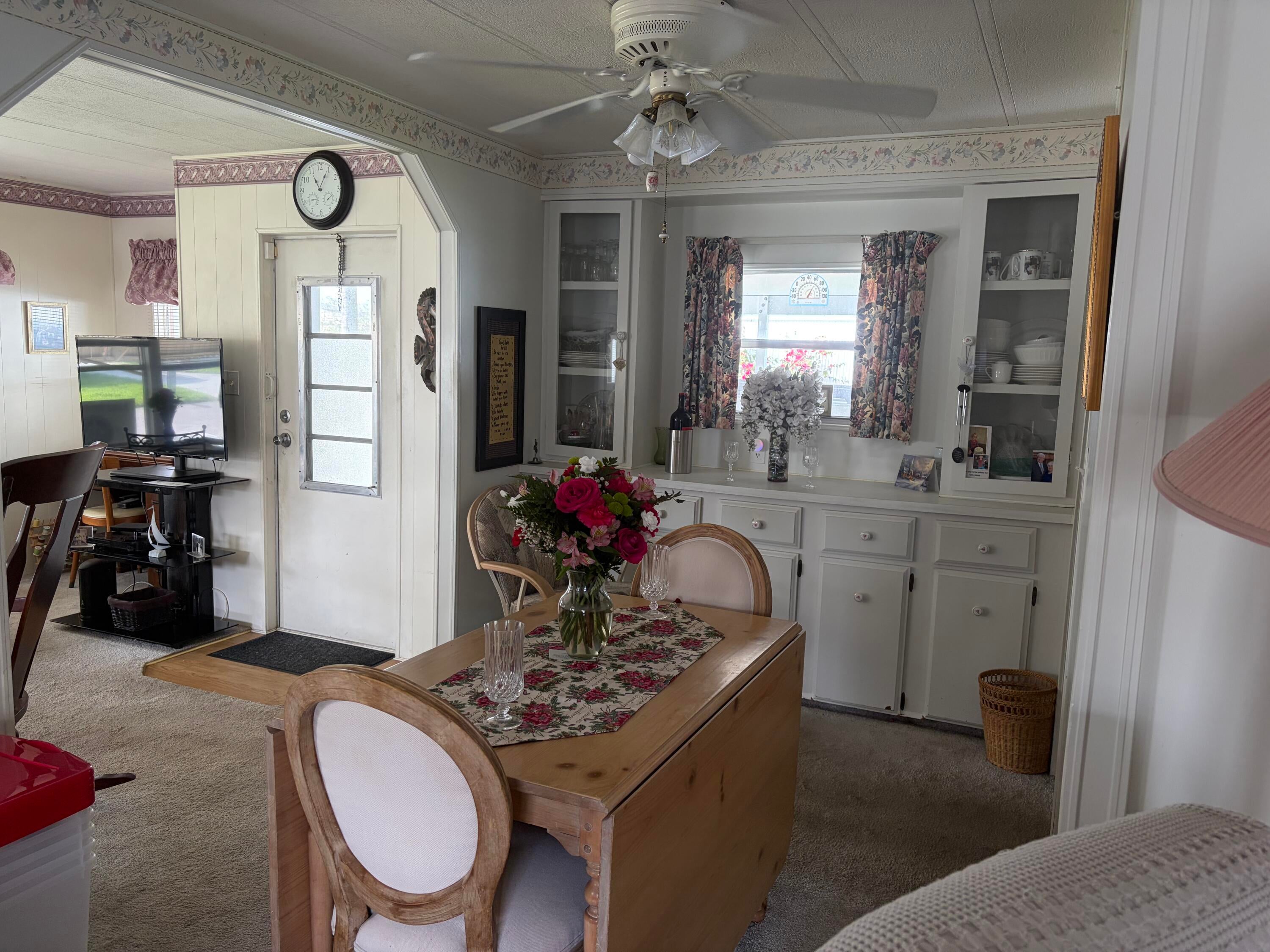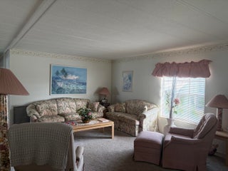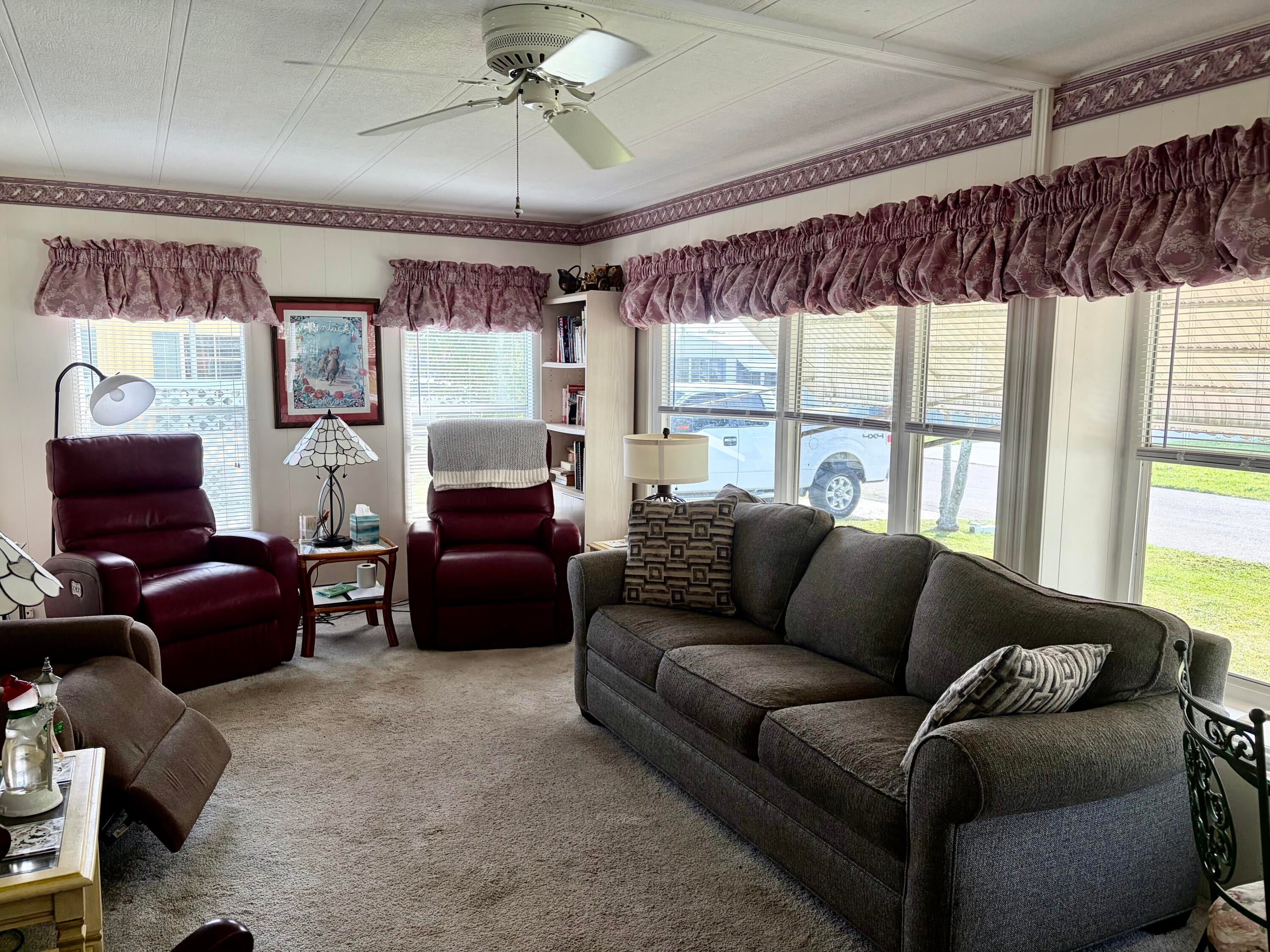 This home is being offered partly furnished, available (with residency approval) by the first of 2026 so get ready for a great deal! Owners moving out of state, and ready for qualified buyers! Lots of living space with 1460 Sq Ft inside laundry, and large screened room with storage shed. Both bedrooms will be unfurnished so bring your own comfy beds and enjoy! The large bonus room in the front of the home can serve as family room or formal dining area or a great game room. The living area is spacious with light gray carpet in living and dining areas. The 2 bedrooms at the back of the home have Berber and the kitchen and 2 baths are luxury vinyl. No leaks in this roof and the carport is only 8 years old. The galley kitchen is surrounded with Brite white cabinets. HURRY! COME SEE TODA