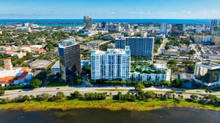 This expansive corner unit offers turnkey living with a sprawling wrap around balcony. A light filled open-concept home, featuring two sets of floor-to-ceiling sliders, sleek finishes, engineered hard wood in living areas and new tile floors in bed and bathrooms, 10' ceilings with loft style cement accents, and modern design throughout. Kitchen boasts updated appliances with an in home water filtration system that is also installed in recently modified master bathroom. Whether you're relaxing at home or entertaining guests, this retreat provides both comfort and style.The Edge is one of Downtown West Palm Beach's premier luxury buildings, offering resort-style amenities including a lakeside Olympic size pool, fire-pit, bbqs, a fully equipped fitness center, 24/7 concierge, and more!