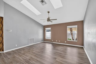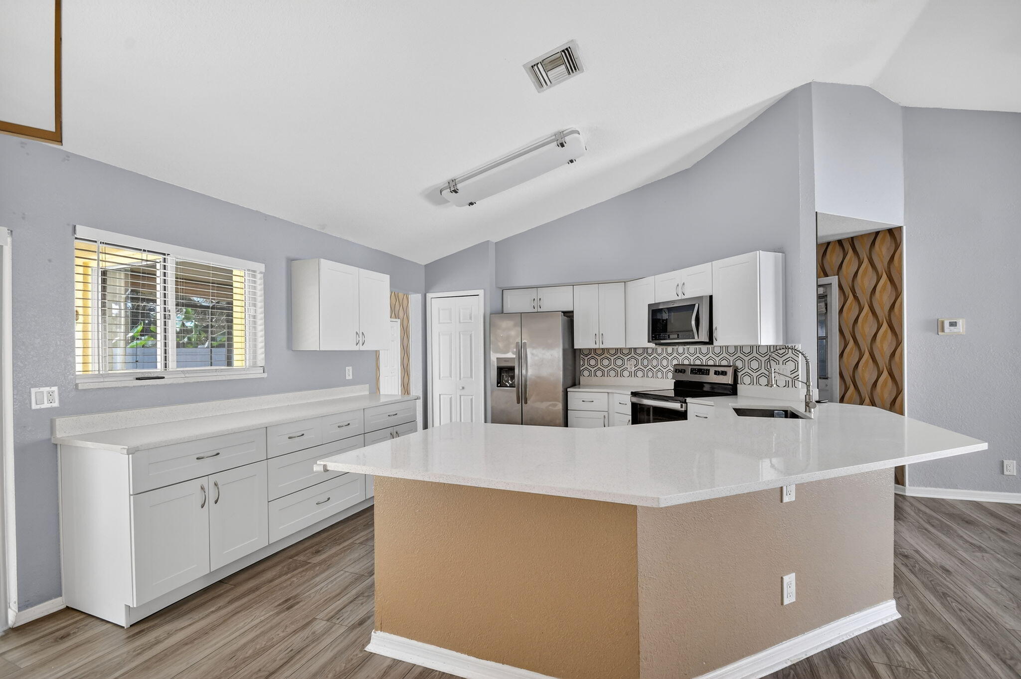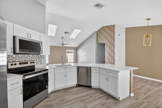 Welcome to this Spacious private home in Woods Walk neighborhood with a large covered patio and a screen pool for entertaining family & friends. This remodeled home has an open-concept kitchen that features sleek white cabinetry, quartz countertops and stainless appliances. The family room & kitchen have vaulted ceilings with skylights. Updated baths and a split floor plan gives this home privacy. This home is a true retreat in an unbeatable location.'' Located just minutes away from great shopping, dining, entertainment, World renowned equestrian grounds.