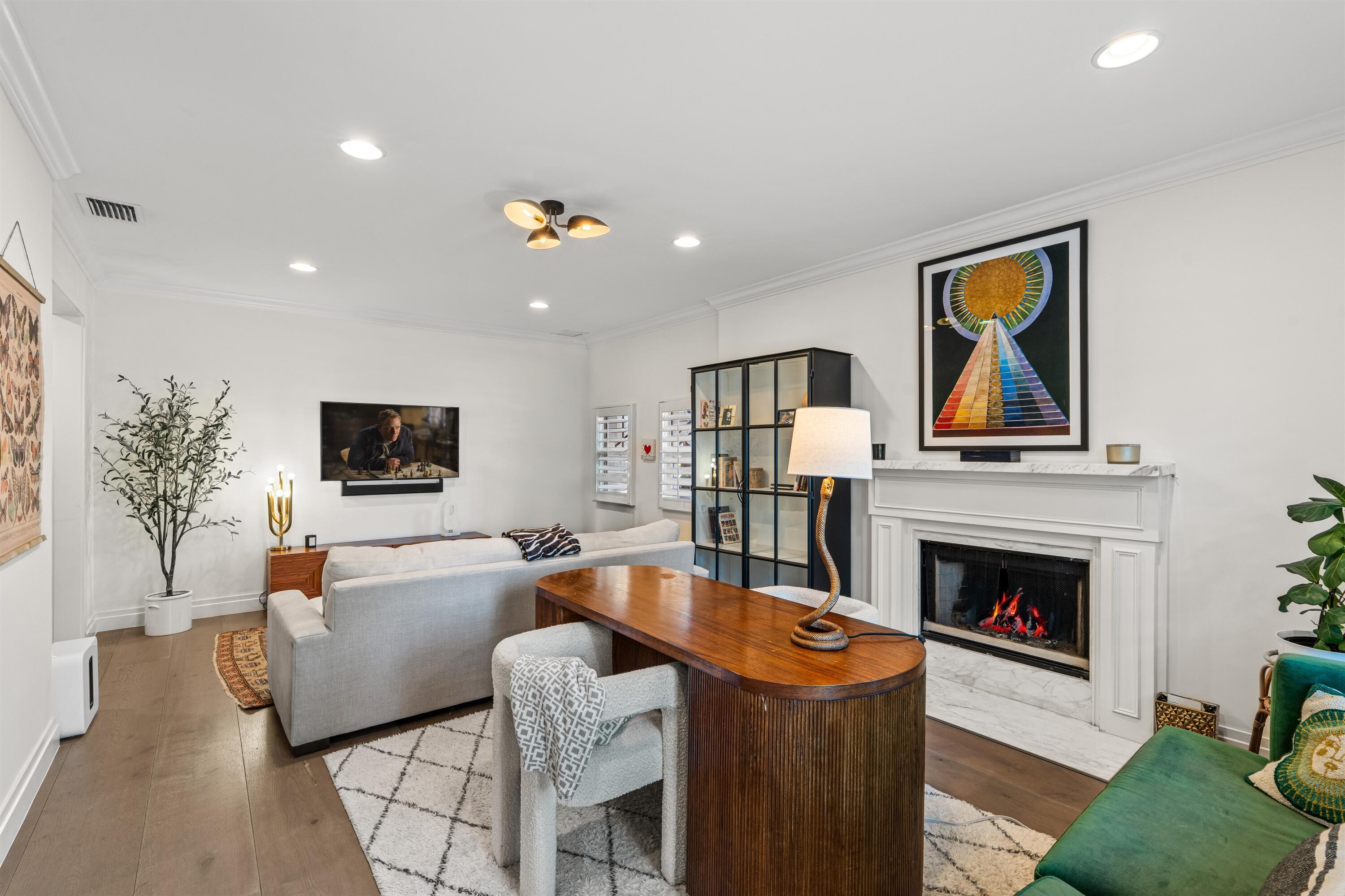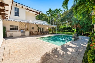 This delightful residence has been skillfully redesigned to join all the elements of a California vibe with South Florida luxury living. The project achieved exactly the right blend of style, detail and quality. A majestic exterior elevation is poised against a gracious circular drive on a lush, oversized lot with privacy hedge and mature landscaping. This completely hurricane resistant residence features exterior block walls on the first and second levels as well as concrete 2nd floors also included are Impact windows and doors. Meandering Chicago brick paths, a canopy of oaks trees, lights gently illuminating an expansive span of oaks trees and perimeter palms, a backyard pre-wired for entertaining sound, designer tasseled awnings, a refreshed resort-style pool/deck, smart keyless entryto the house and simulated wood-cladded garage doors, and security surveillance system. The extensively renovated interior of this two-story 5-bedroom, 4.1-bath residence incorporates imported tile(remove?) and new wide-plank French oak flooring, crown molding and plantation shutters throughout. A marble-mantle wood-burning fireplace, flanked by built-ins, adds to the warmth of the living room. The bespoke gourmet kitchen, with its French professional-grade La Cornue gas range with double cast-iron ovens, Liebherr refrigerator, Brazilian hardwood island seating 6, water filtration system, newly refinished soft-close cabinetry and hand-painted backsplash, and Carrera countertops with LED task lighting, beautifully serves the formal dining room. An adjoining family room now features a professional wet bar and 51-bottle wine fridge. Ascending to the second level by an extra widened custom French oak and wrought iron railing staircase, revealing the second level complete with four guest bedrooms, two bathrooms and the grand Primary suite with new marble spa primary bathroom and boutique lined walk in closet. The recently renovated primary bathroom includes a freestanding soaking tub, custom marble shower, porcelain floors, Brizo fixtures, TOTO toilet, and custom Italian wood vanities, while all secondary bath vanities have updated custom cabinetry and Brizo fixtures. Location NW 9th Terrace, Boca Raton, Florida. This charming estate resides on a rare, nearly half-acre lot on a quiet cul-de-sac street in Florenada, the highly sought-after subdivision adjacent to Old Floresta in the heart of historic Boca Raton. It is ideally located just minutes from the world-class shopping, dining, and entertainment at beautiful Mizner Park, and in close proximity to the landmark Boca Raton Resort and wide sandy beaches. Property This rare opportunity retreat resides on a secluded double lot (to be determined if the adjacent lot is buildable), with a canopy of grand oak trees, gently illuminated trees, and privacy hedges that seclude the backyard oasis. The 28' x 14' resort-style pool, summer kitchen with gas grill and refrigerator, and awning-covered poolside patio for ease of entertaining and dining alfresco create a delightful setting. Residence First Floor: Guests are welcomed through the custom mahogany arched entry door into an imported tile foyer with tray ceiling leading to a charming light-filled living room warmed by plank wood floors and a wood-burning marble-mantle fireplace. An elegant formal dining room with crown molding and shadow boxing opens to the gourmet kitchen with French La Cornue gas range with double cast-iron ovens and grille, Liebherr refrigerator with two freezer drawers and icemaker, Bosch dishwasher, 1200-watt microwave, Brazilian hardwood island seating 6, water filtration system, inset cabinets with custom glides, and Carrera countertops with LED task lighting and hidden electrical outlets. To the right of the kitchen lies a secluded guest suite, a pantry and an oversized laundry room with chute and new LG front-loading washer/dryer. To the left, beyond the powder room, an elongated family room encompasses a wet bar with LED-lit quartz counters, glass/stainless temperature-controlled 51-bottle wine fridge, and French doors which open out to the awning-covered entertaining patio and pool beyond. Second Floor: Atop the wide landing, a private primary suite overlooking the pool includes custom walk-in closets, luxurious Carrera marble master bath with make-up counter, walk-in shower and soaking tub. One additional guestroom with ensuite bath and two guestrooms with shared bath all enjoy walk-in closets with custom built-ins. Special features include: Emtek keyless entry to house and 2-car detached side-load garage, MyQ garage remote, bi-level concrete construction, high-impact windows and doors, barrel tile roof with new flat roof portion recently resurfaced, new gutters, and plantation shutters. Additional upgrades include a water filtration system and new 50-gallon water heater, new dual Carrier high-performance two-stage HVAC system with smart home controls and upgraded sound-dampening, an integrated Control4 / SONOS entertainment system, wet bar, 51-bottle wine refrigerator, oversized laundry chute, wood burning fireplace, security surveillance system with DVD back-up, commercial grade outdoor electrical panel, electric dog fence, and an underground propane tank for outdoor grill and indoor range. DISCLAIMER: Information published or otherwise provided by the listing company and its representatives including but not limited to prices, measurements, square footages, lot sizes, calculations, statistics, and videos are deemed reliable but are not guaranteed and are subject to errors, omissions or changes without notice. All such information should be independently verified by any prospective purchaser or seller. Parties should perform their own due diligence to verify such information prior to a sale or listing. Listing company expressly disclaims any warranty or representation regarding such information. Prices published are either list price, sold price, and/or last asking price. The listing 
