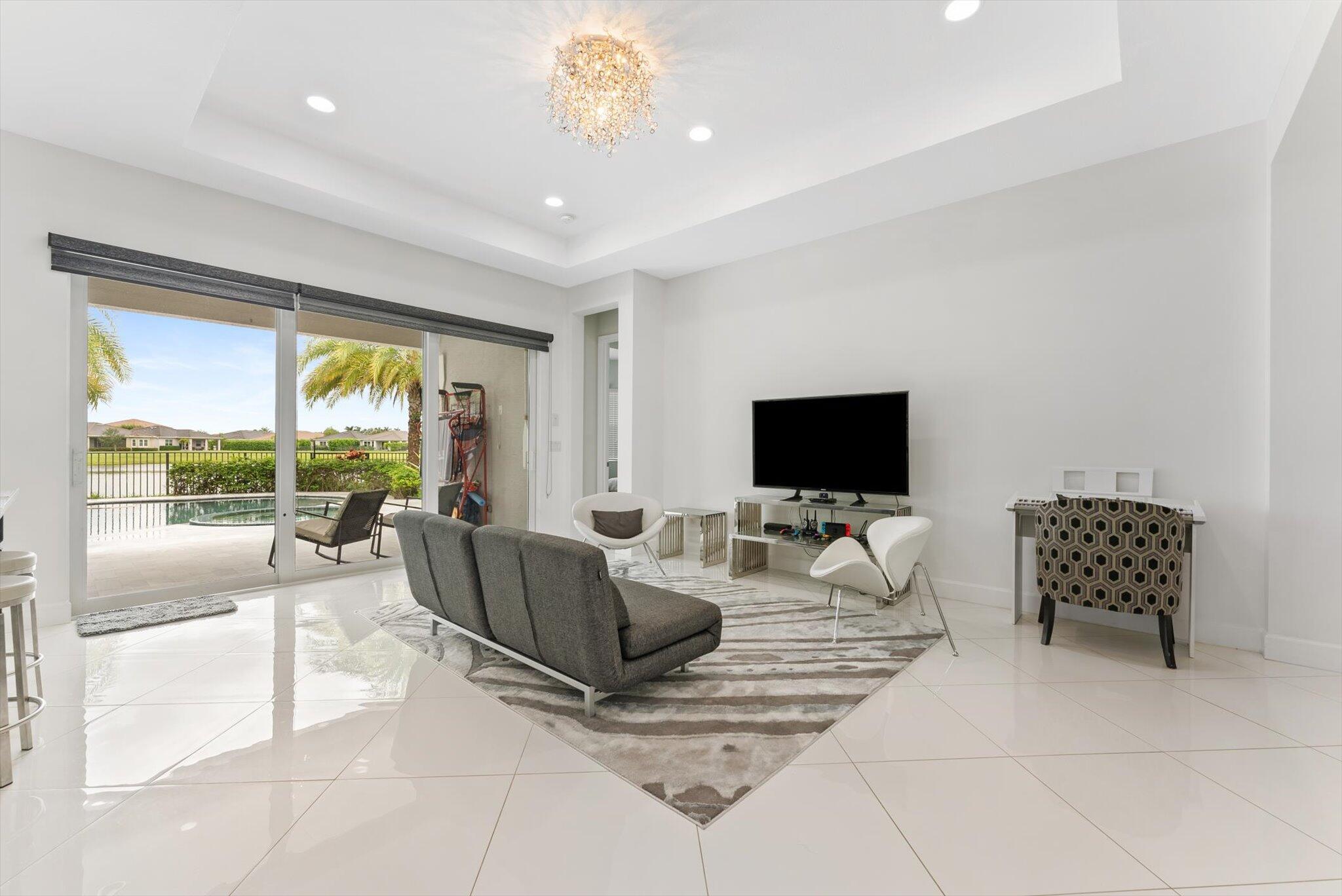This home stands out the moment you step into the backyard--a true private oasis designed for relaxation and entertainment. Enjoy a luxurious heated pool with an integrated jacuzzi and a built-in sitting area right in the water, perfect for lounging, unwinding, or hosting friends in style. Surrounded by lush Clusia hedges and set on an oversized lot with added easement space, this outdoor paradise offers exceptional privacy and sweeping lake views.Inside, the home features an upgraded kitchen with oversized cabinetry, stainless steel appliances, and premium finishes. The open layout and carpet-free bedrooms create a clean, modern living experience that complements the resort-style backyard.Located in a quiet, family-friendly community with a low HOA and access to top-tier amenities.