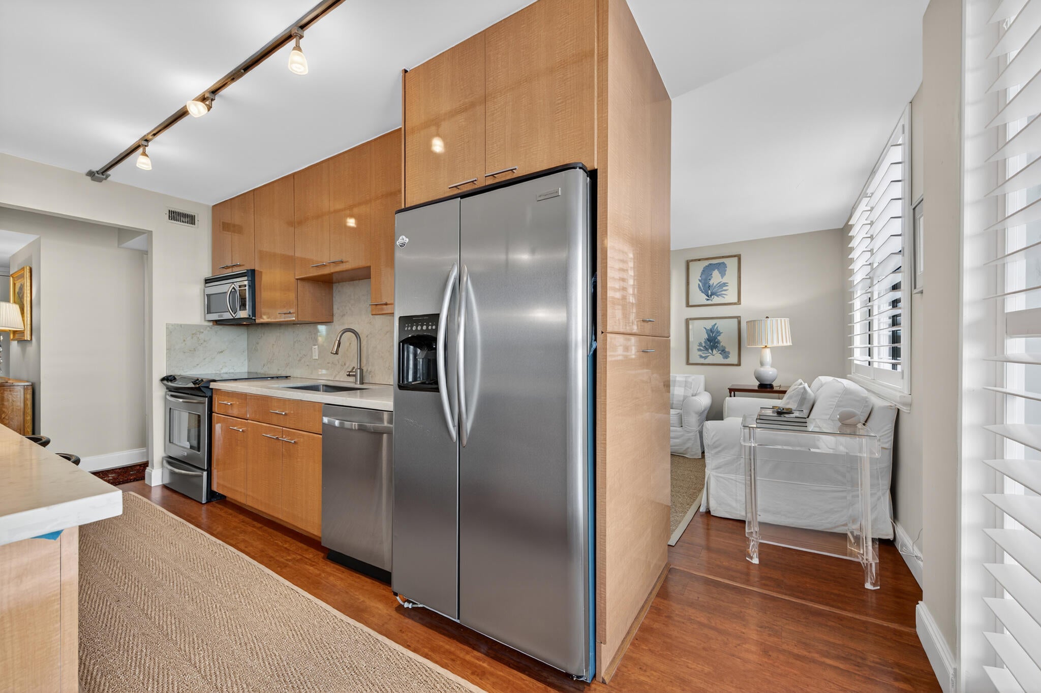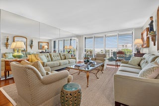 Prime location on the Intracoastal waterway close to everything, Portofino South is a desirable full service building withfull time doormen, manager and lovely large pool area for relaxing This handsome fully renovated 2 bedroom 2 bath offers darkwood flooring, Italian wood kitchen cabinets with quartz countertops and marble bathrooms. Impact glass with plantationshuttered windows offer views of the Intracoastal. Day dock and more. Close to beaches, restaurants and PBI airport.