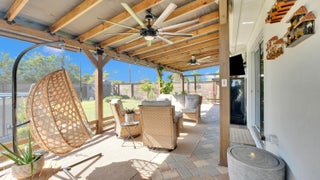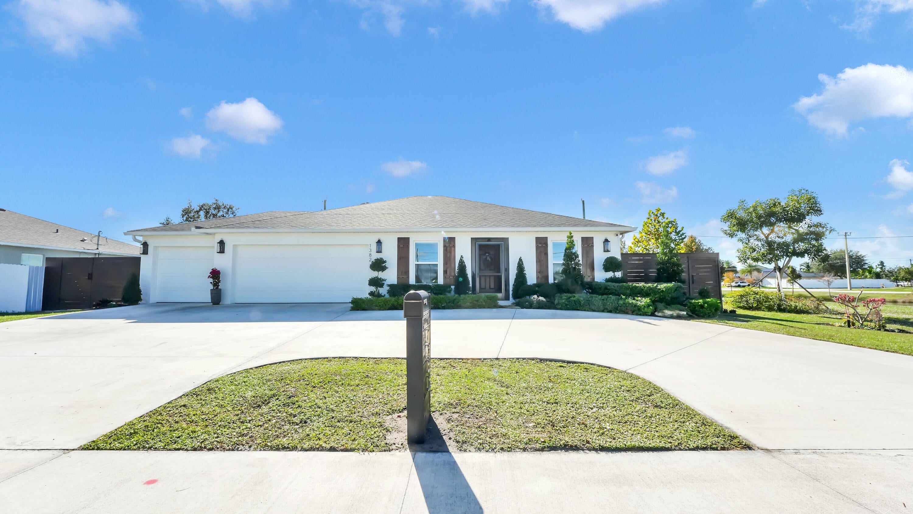 Welcome to this beautifully upgraded 2023 single family home on a corner lot with no rear neighbors! This 3 bed, 2 bath + den / office with a 3 car garage home is close to I-95, turnpike and minutes away from Tradition, shopping, dining and hospitals. Tile flooring throughout, the open living space includes a stylish fireplace, and the modern kitchen is enhanced by a Samsung smart refrigerator. The home is also equipped with a smart washer and dryer. The private backyard is an oasis, featuring a 7-ft real wood privacy fence, 400 sq. ft screened covered patio with roll-down shades, above ground pool, and a separate turfed area designed with pets in mind. Meticulously crafted landscaping and a freshly painted exterior. This home is truly better than new!