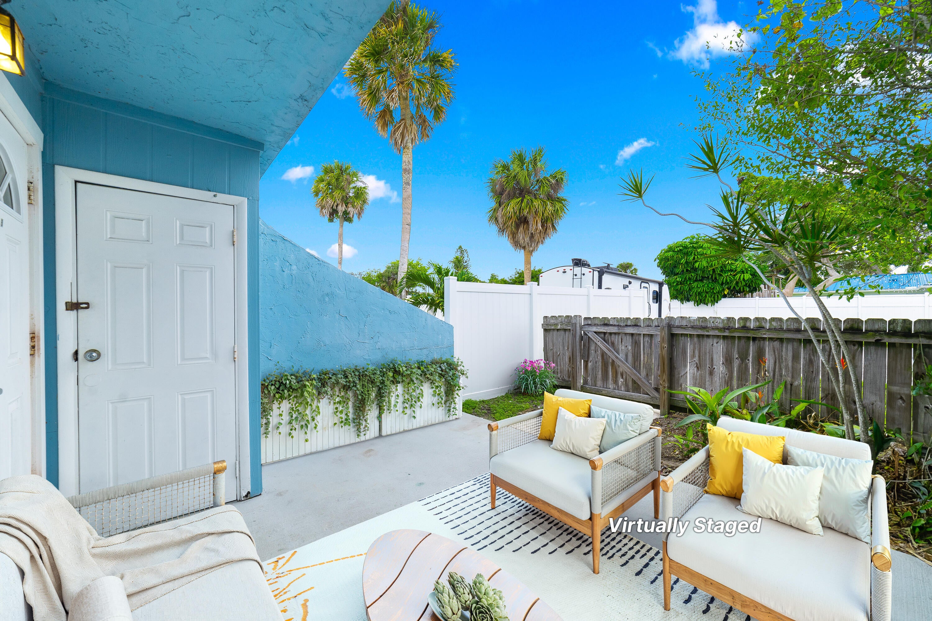 Rare Find, No HOA, minutes distance to the beach! Experience the Florida beach lifestyle in this charming two-story townhouse located in the Coral Cove Beach community, just fives minutes to the ocean. With no HOA fees, this property is ideal as a vacation home or a potential Airbnb. Enjoy the serene setting with a state park right across the street, perfect for nature lovers. Kayak rentals are nearby for your afternoon adventures. The townhouse features two bedrooms, 1.5 baths, and a private open patio. The kitchen boasts granite countertops and a full appliance package, including a full-size washer and dryer. The first floor has tile floors, while the wood staircase leads to carpeted bedrooms on the second floor.The full bathroom upstairs is a convenient Jack and Jill style, while a half bath is located on the first floor. Prepare for storm season easily with accordion shutters on the windows. The air conditioning unit is brand newer, and the metal roof was installed in 2014. Don't miss this opportunity to own a private beach retreat or a ready-to-go investment property. Mortgage savings may be available for buyers of this listing.