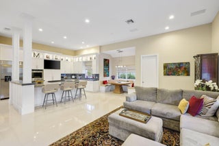 Totally renovated 5 Bedroom residence with office/convertible 6th Bedroom situated on the 13th fairway in Boca Grove. This home offers an open floor plan ideal for entertaining, featuring volume ceilings and a custom bar. The chef's kitchen includes a 5-burner gas cooktop, double ovens, and breakfast area with banquette. The spacious primary suite boasts his/her baths, custom closets, and views of the pool. Two additional ensuite bedrooms complete the first floor, with two more bedrooms sharing a large bath upstairs. Enjoy this backyard retreat with fully screened patio, heated saltwater pool, and abundant lounging space. Impact glass, a brand new metal roof, and full-house generator complete this offering. Conveniently located near great shopping, fine dining and houses of worship.