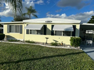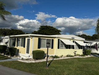 Fabulous 2br/2ba double-wide coach in popular 55+ West Lakes of Boca Raton. This spacious home has an open living/dining/kitchen area w/beautiful wood look flooring, open island in the kitchen & stainless appliances. This home also has updated bathrooms and new carpet in bedrooms & enclosed Florida room. Both bedrooms have built in dressers. Master also has a walk-in closet. Full size washer and dryer. Offered partially furnished, including 2 dining tables w/chairs, bed and night stand in the second bedroom. $225/mo maintenance fees include lawn care, pool, common areas, and basic cable with HBO. West Lakes features social activities, clubhouse, pool, shuffleboard, and screened picnic area. Close to golf courses, shopping, and Boca's fabulous beaches. It's a great place to call home!