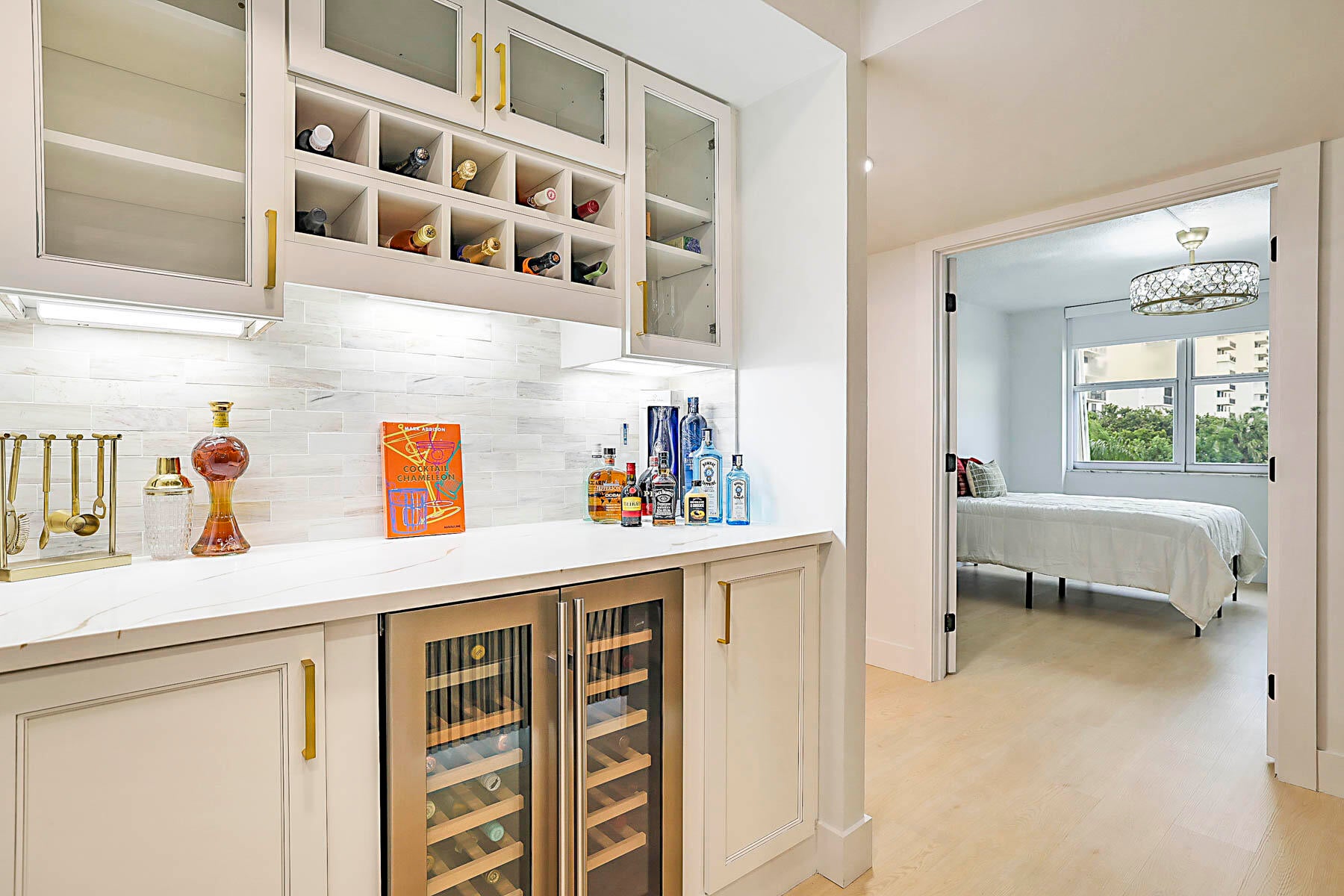 Experience elevated coastal living in this exquisitely updated 2-bedroom, 2-bath residence showcasing designer upgrades and captivating Intracoastal Waterway views. A modern chef's kitchen features quartz countertops, premium stainless steel appliances, and custom cabinetry--perfect for cooking and entertaining. The spa-like bathrooms offer both wall-mounted and rain shower options, while custom closets ensure effortless organization. A stylish French-door entry welcomes you into the second bedroom, providing the ideal setting for guests, an office, or a serene retreat. Rich wood veneer and bespoke wall paneling bring warmth and sophistication throughout, complemented by smart lighting, energy-efficient enhancements, and motorized shades with preset schedules.A built-in bar with wine fridge adds the perfect touch for hosting. Step onto your private balcony and take in the sweeping Intracoastal viewsyour own sanctuary of serenity. This premier community delivers true resort-style amenities, including an air-conditioned indoor bike room, private beach locker, and dedicated kayak/paddleboard storage for seamless coastal living. Residents also enjoy a fitness center, game room, library, arts & crafts studio, beautifully restored building exterior (assessments fully paid), outdoor pool, grilling stations, and inviting social spaces. Perfectly located near five-star dining, luxury boutiques, world-class golf courses, and major airports. This exclusive community has completed all 40-year certification renovations, including a fresh exterior paint finishensuring peace of mind and enhancing long-term property value. A refined blend of luxury, comfort, and conveniencethis is waterfront living at its best.