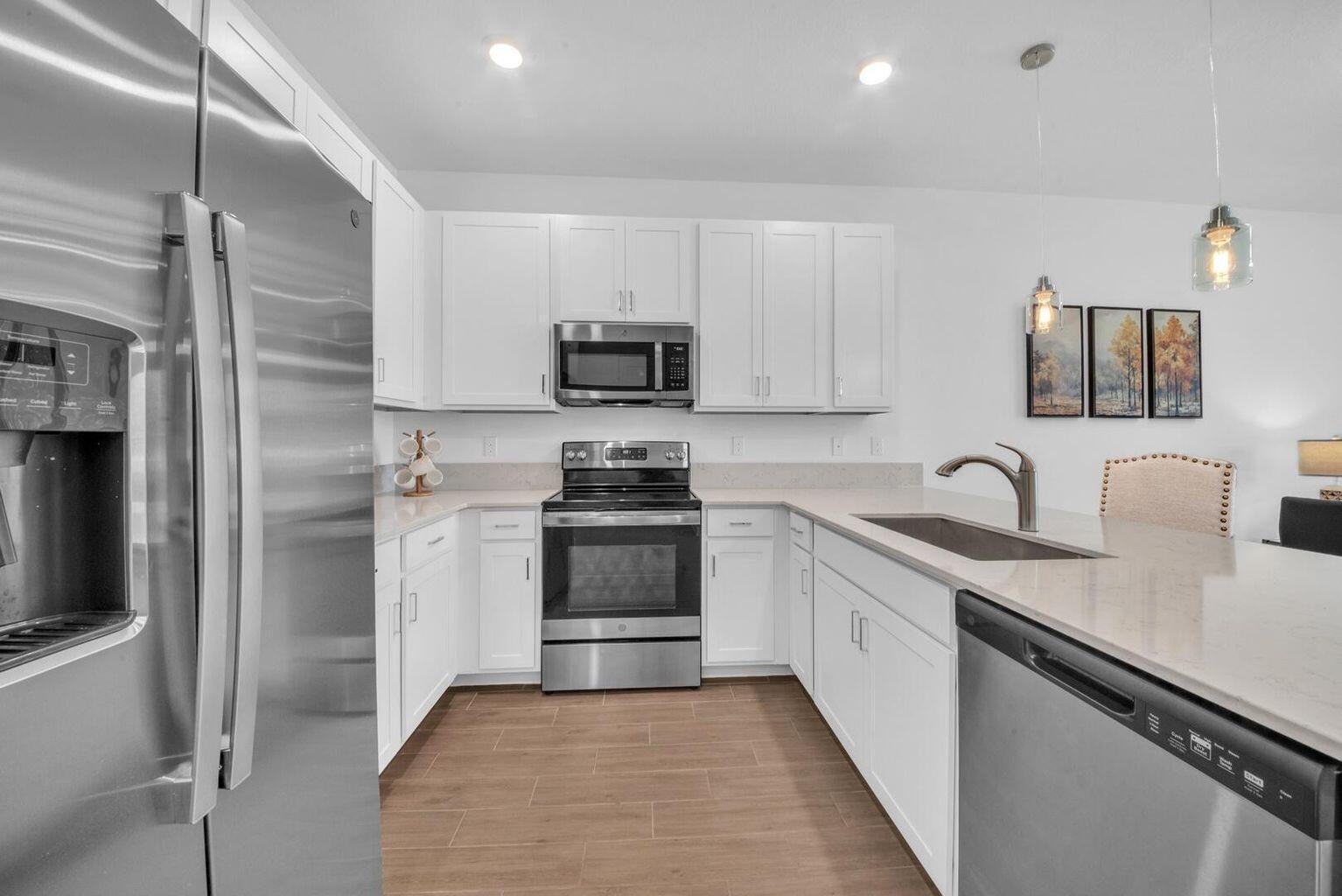 Brand-new 2-bedroom, 2-bathroom home offers the perfect blend of elegant style and casual comfort in a vibrant 55+ community. Designed with entertaining in mind, the open floor plan seamlessly connects the living room and dining area. The dream kitchen features timeless white cabinetry, granite countertops, stainless steel appliances, a pantry, and a convenient snack bar. The primary suite includes a spacious walk-in closet, dual sinks, and a walk-in shower, providing ultimate luxury. Additional highlights include neutral flooring (no carpets), impact windows, recessed lighting, and a charming, covered entrance. A driveway with parking for up to three cars adds to the convenience and appeal of this exceptional homeAvalon Trails enhances your lifestyle with exceptional amenities, including a clubhouse, social rooms, a fitness center, resort-style pool, pickleball courts, and tennis courts. Conveniently located near shopping, dining, entertainment, major highways, and the trendy Atlantic Avenue, this home is a must-see!