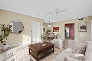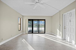 Beautifully updated first-floor condo with serene lake views and immediate rental eligibility--a rare and valuable opportunity for investors. The unit features tile flooring throughout the main living areas and brand-new vinyl flooring in both bedrooms, creating a clean, modern feel. The kitchen has been tastefully updated with dark cherry wood cabinetry and granite countertops, offering both style and functionality. Impact windows provide peace of mind, and the first-floor location offers easy access with no stairs. Enjoy tranquil water views from the living space in this well-maintained residence, ideally located for comfortable South Florida living.