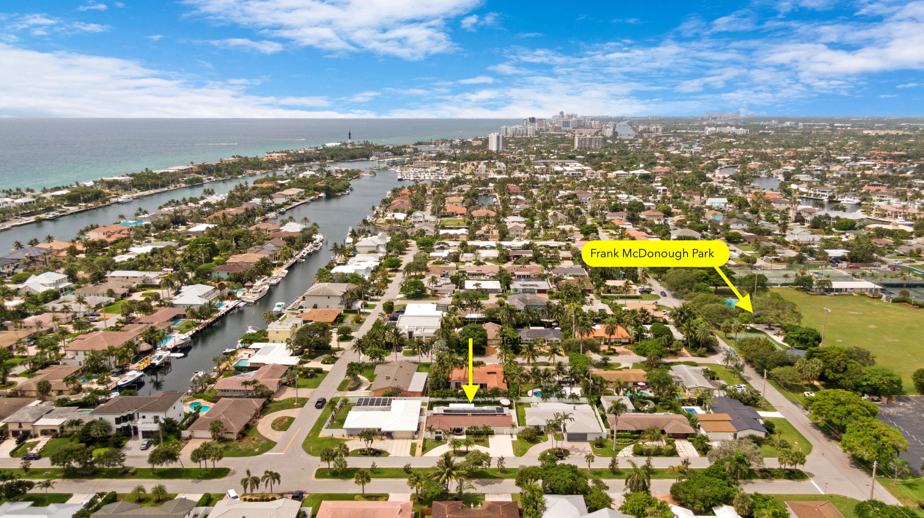 SELLER WILLING TO OFFER A $10,000 CREDIT AT CLOSING! Live the Lighthouse Point lifestyle just steps from Cap's Place and Frank McDonough Park! This fully SOLAR-powered (owned solar) 4 bed, 4 FULL bath home blends cutting-edge technology with elevated coastal comfort, boasting over 2,600 sqft of living space, ideal for entertaining. The chef's kitchen stuns with a leathered honed quartz island, 8-burner GAS RANGE (120-gallon tank), oversized 66'' built-in refrigerator and freezer, MIELE BUILT-in COFFEE system, and wine fridge. Bright, open-concept living areas feature white oak engineered hardwood flooring and a sleek ventless bioethanol fireplace. Dual A/Cs (2024 & 2011), two tankless water heaters (2021), IMPACT WINDOWS, updated electrical panels and PVC PLUMBING to ensure peace of mind.Love the furniture too? Furniture can be included in the sale for a turnkey experience, if desired. Outside, enjoy a resort-style SOUTH FACING EXPOSURE backyard with premium synthetic turf, a 3-hole putting green, HEATED saltwater pool, newly insulated pergola, and full outdoor kitchen. Home includes 3 high-capacity backup batteries (up to 4 days of off-grid power), and EV charging station (220V). Double primary shower, beautifully updated baths throughout, and an expansive layout complete this exceptional offering in one of Lighthouse Point's most desirable walkable pockets. The home has been a successful vacation rental and can easily continue generating income if you're looking for an investment or part-time use.