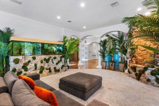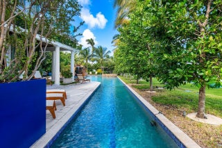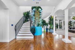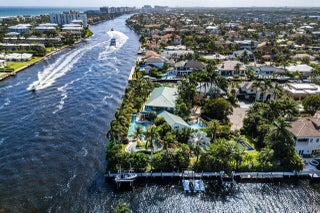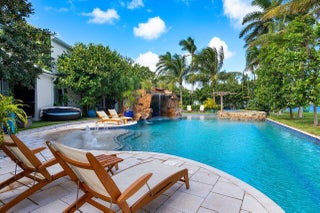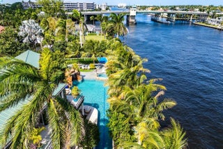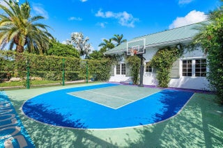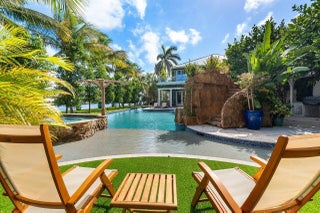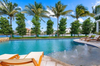 Introducing a stunning gated estate on an expansive point lot! This tropical paradise boasts 450 feet of waterfront with breathtaking direct Intracoastal views. A dream come true for boating enthusiasts, the property offers direct ocean access, two boat lifts, and WaveRunner pads. Enjoy resort-style living with a spacious pool that features a lap lane, waterfall, fountains, and a spa. The outdoor amenities include a half-court basketball area, a football field, and a game room, creating your own private club. With 8 bedrooms and 6.2 bathrooms, this home comfortably sleeps 20+ guests. The luxurious primary suite offers a large sitting area and an exquisite bathroom, providing the ultimate retreat.