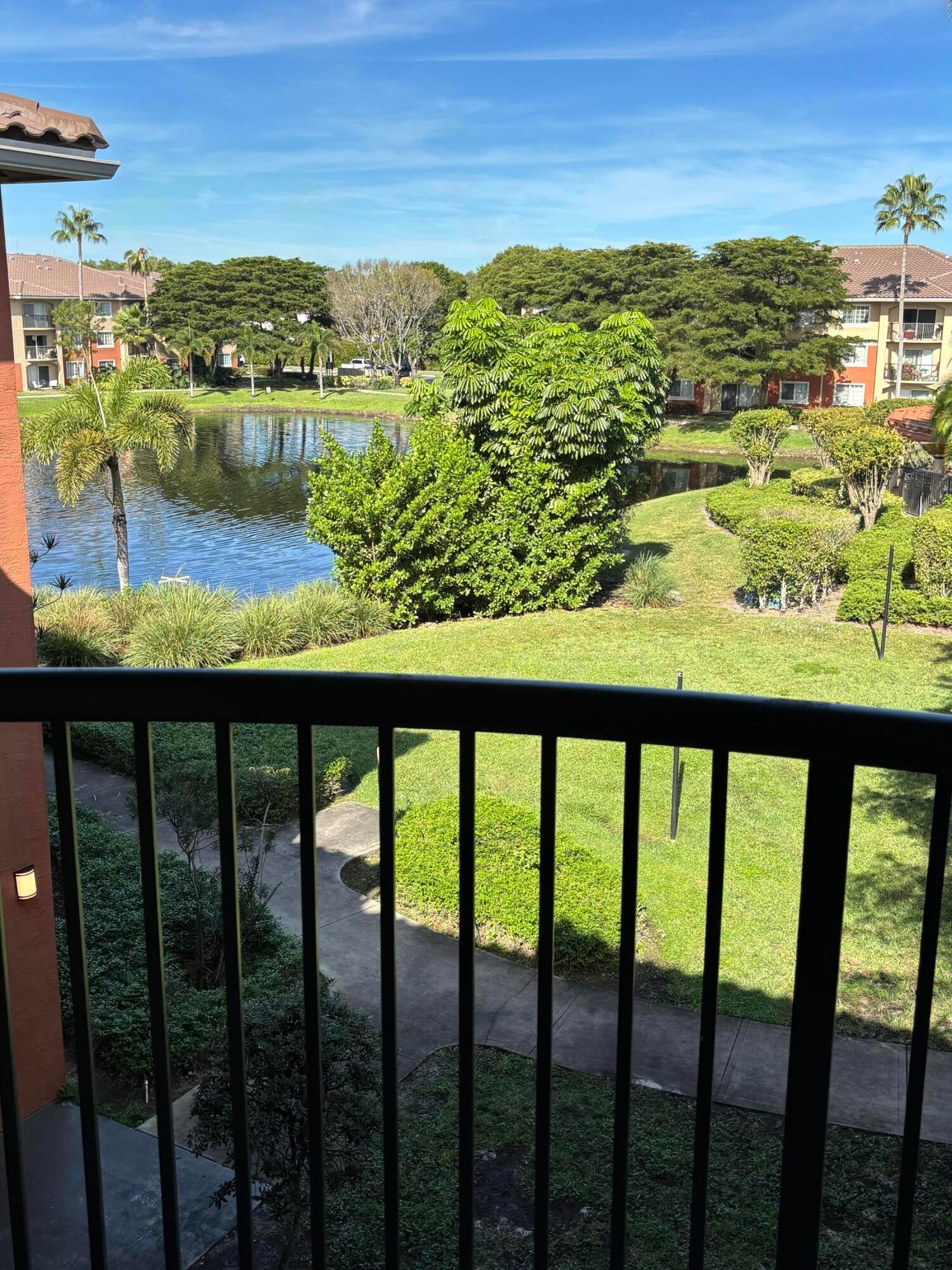 Great location with a nice view from the patio of the lake.Newly painted througout with wood floors . GYM,Community pool .Gated community close to ll shopping needs