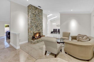 This lovely one-story home on a private lot offers 4 bedrooms & 2 1/2 baths and is nicely remodeled. Features include porcelain tile & luxury vinyl flooring;vaulted ceilings;a charming sunken Living Room with twin-sided fireplace to the Family Room with stone to the ceiling; island kitchen with white cabinetry; granite counters with island waterfall edge, stainless steel appliances and extra high-hat lighting. All bedrooms have custom-configured closets. The bathrooms have been remodeled and the primary offers marble flooring. Hurricane protection includes impact windows & doors an accordion shutters, portable 9000 watt generator. The outdoor space offers silver travertine pavers, a covered lanai with a summer kitchen with refrigerator, screened patio with a pool & grassy area beyond.