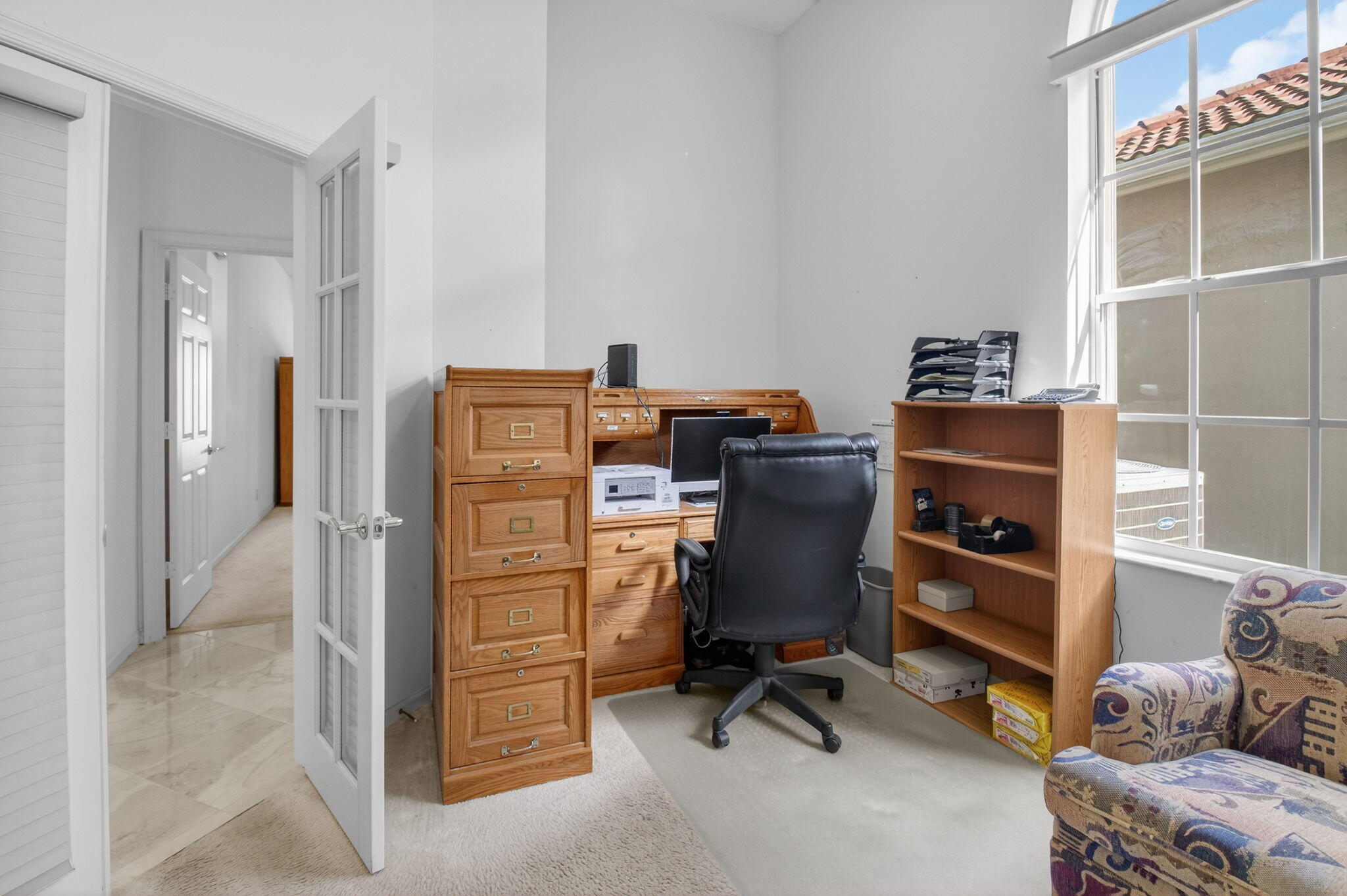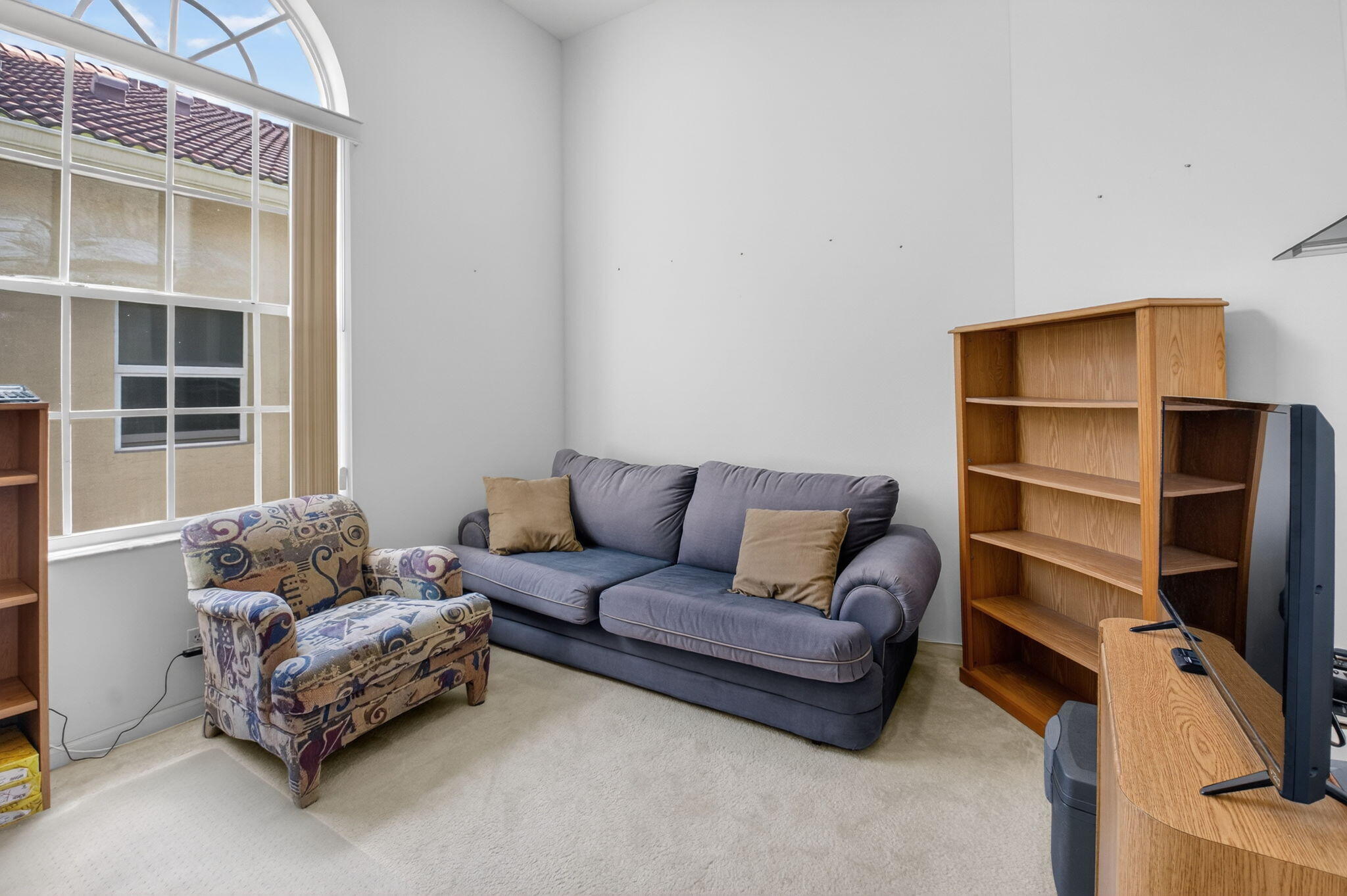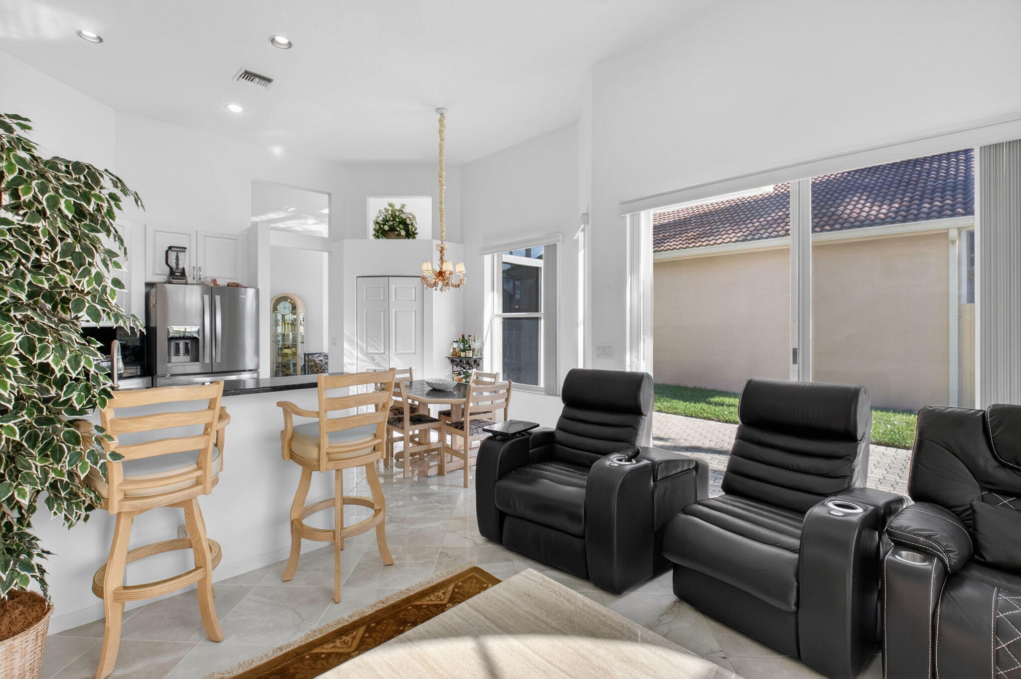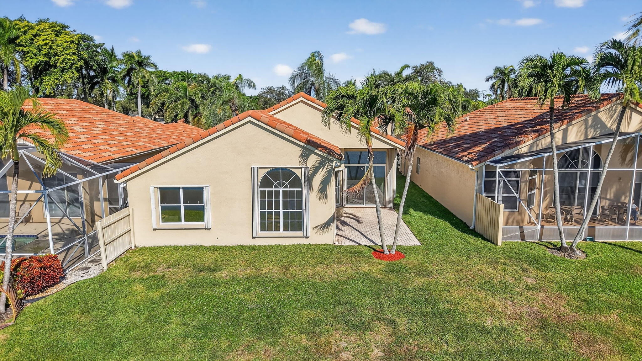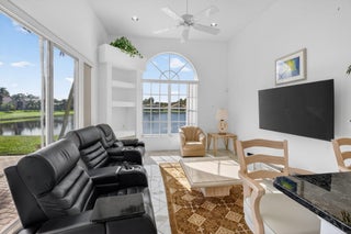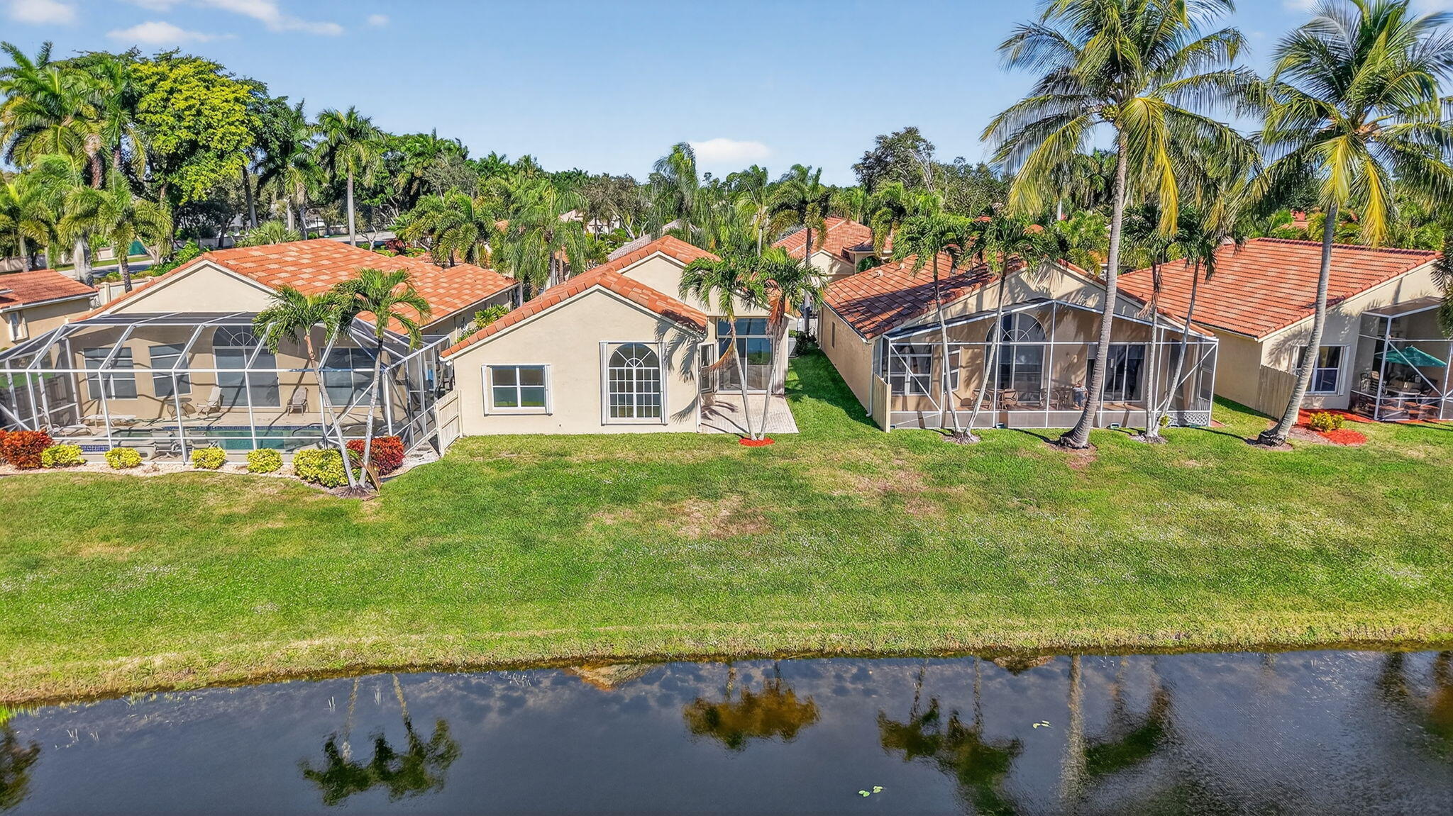 Step inside this rarely available 2,217 sq ft lake-front residence. The open concept floor plan is enhanced by soaring ceilings and an abundance of windows, allowing natural light to fill every room. .The home offers two bedrooms and two full baths, along with a versatile den. The bedrooms and den feature plush neutral carpeting, while the main living areas are finished with large ceramic tiles. Updated kitchen, with wood cabinets, granite countertops and stainless steel appliances, Exterior hurricane accordion shutters 4 electric. Palladium is an all age, pet friendly gated community. Designed for active lifestyle, resort-style heated pool, tennis & pickleball fitness center, game room & card room .Conveniently located minutes to beaches, restaurants, and shopping. New roof in 2020.