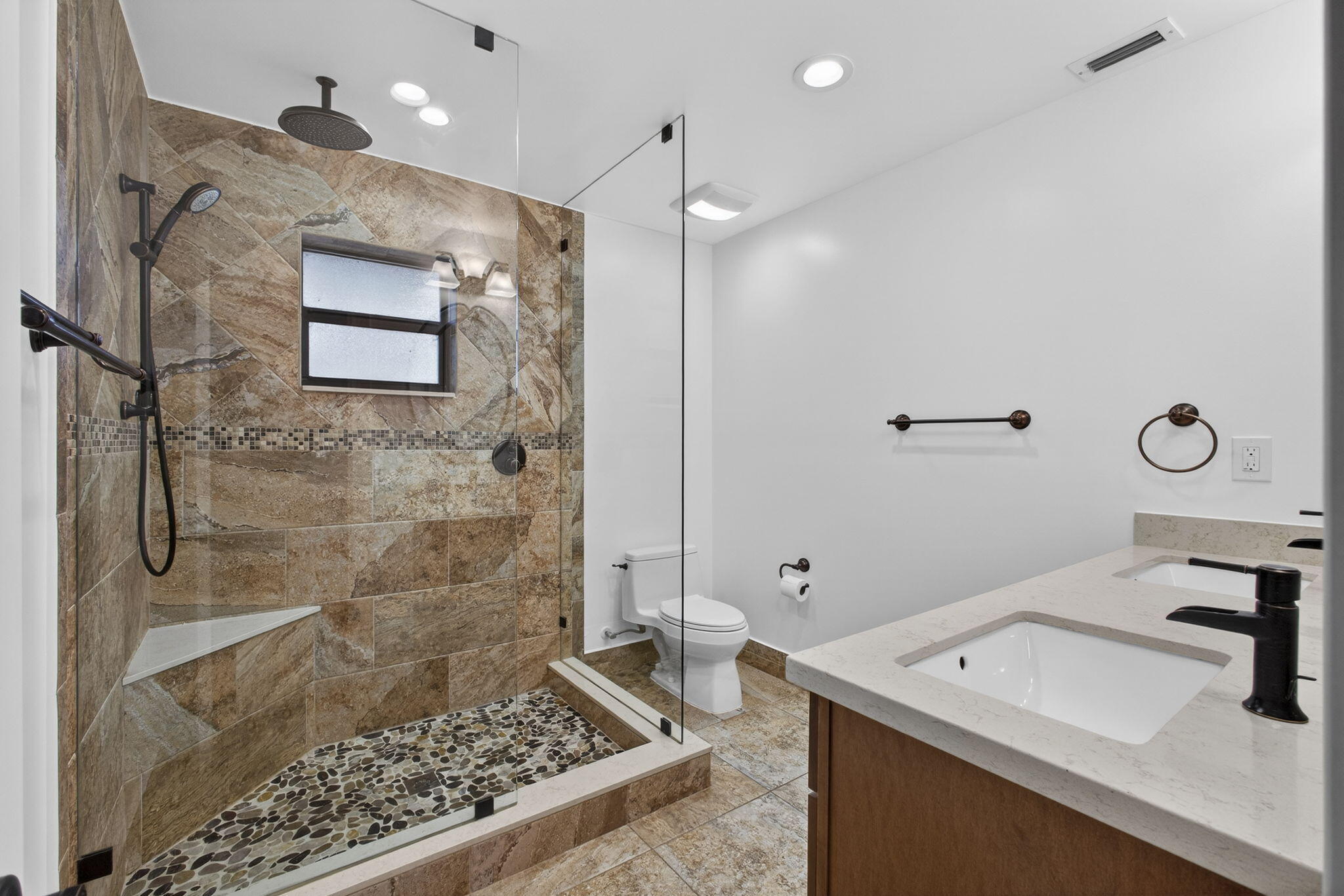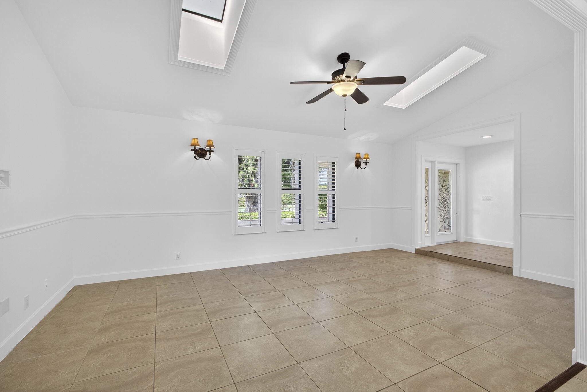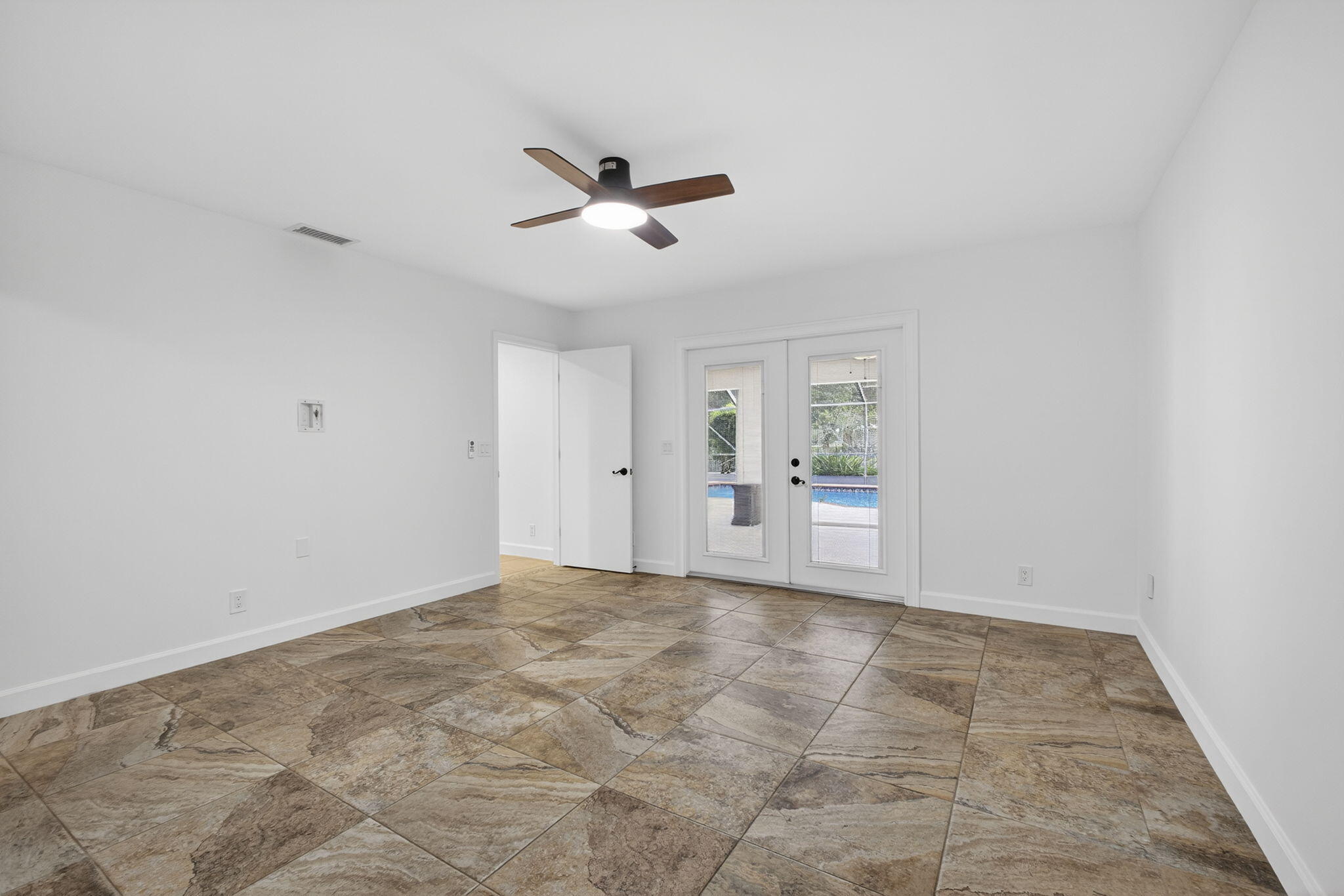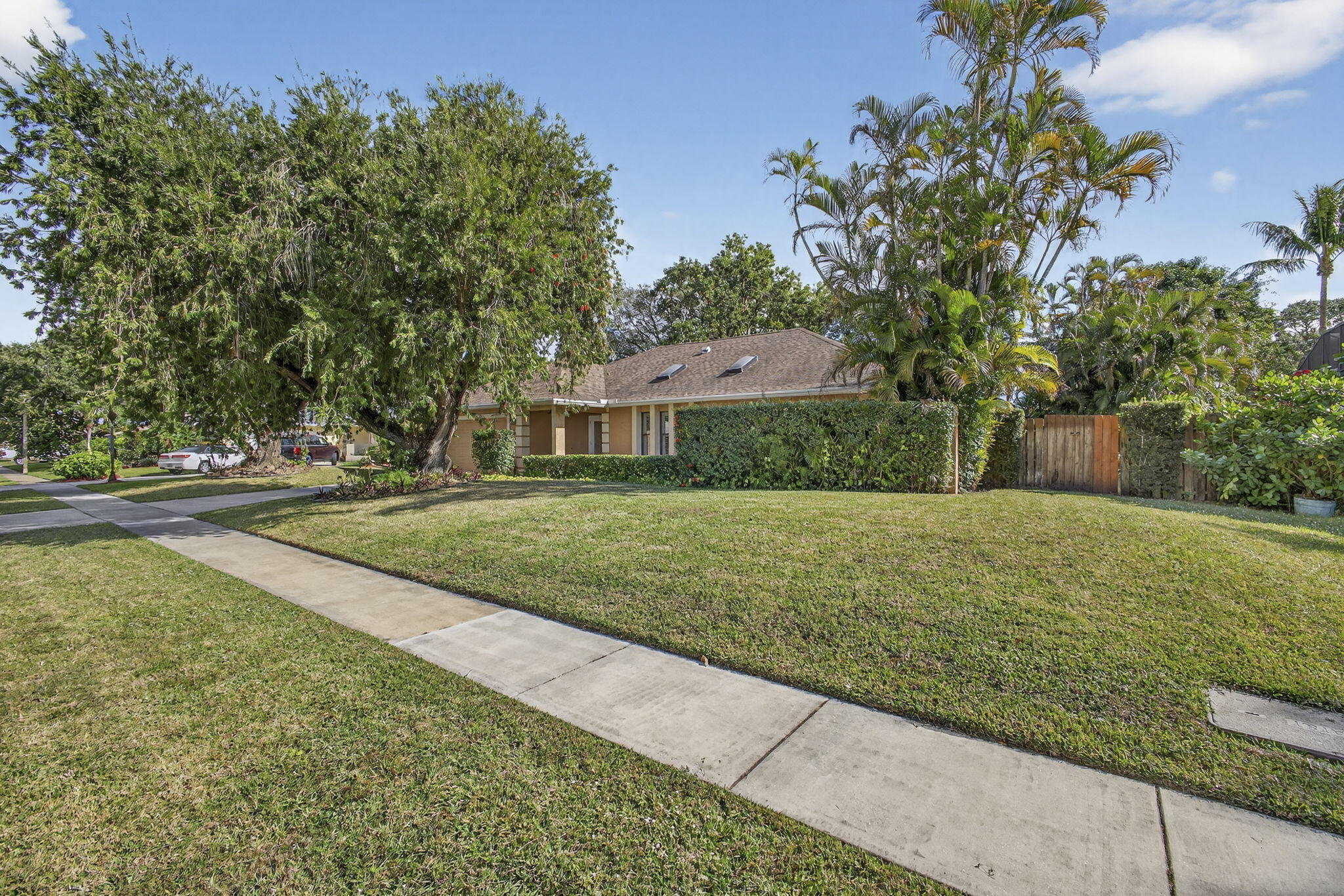 This exceptional home features a brand-new, high-end modern renovation throughout. Very bright house with vaulted ceilings and abundant natural light, Impact windows & skylights. Features two spacious living areas and a large well-designed kitchen with island, Brand new appliances, and updated lighting throughout. All systems in excellent condition, including new A/C. All Bedrooms offer large Walk-in closets w/wood shelves. No carpet. Enjoy a spacious patio and newly renovated screened pool. Expansive backyard with beautiful landscaping and golf course views, very private - no rear neighbors. Two-car garage with built-in storage and separate laundry room with Brand new Washer&Dryer. A must-see property! No HOA. A+ school zone.
