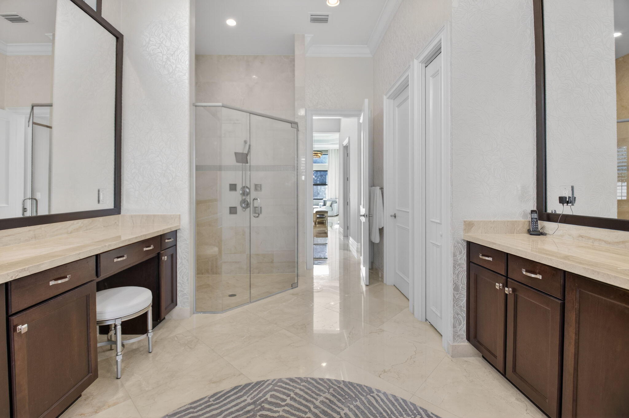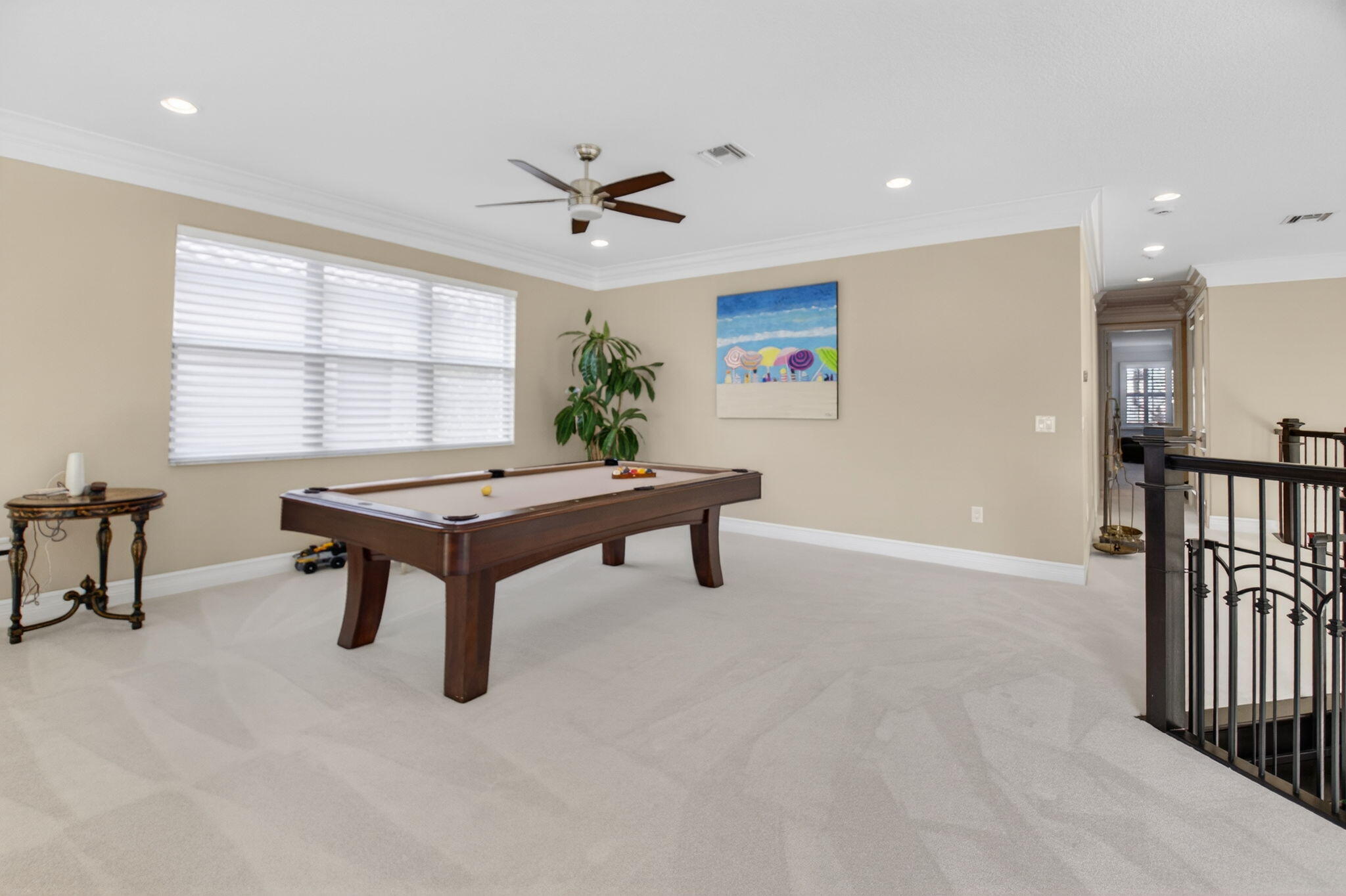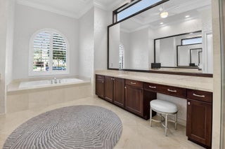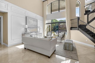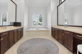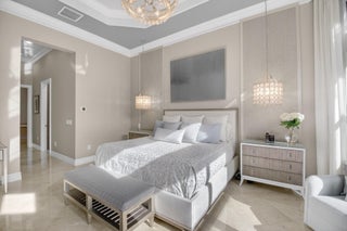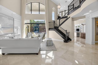 Enjoy luxury living in this beautiful 5-bedroom Colonnade model. Enter through custom mahogany front doors to soaring ceilings, open living spaces, & high-end designer finishes. The main floor features a formal living & dining room, guest suite, a primary suite, & well-appointed office. The gourmet kitchen features Bosch and Wolf appliances, large center island, walk-in pantry & breakfast area open to the family room. Beautifully landscaped backyard with oversized heated saltwater pool & spa,spacious patio, putting green, lots of green space with astro turf. All impact glass, solid core doors, designer lighting, fans, custom blinds & window treatments, whole house generator, built-ins, crown moldings, surround sound theater in upstairs bedroom, large loft area, & new tankless water heate 3 retractable screens, plantation shutters, landscape lighting, and central vac. The 3-car garage has epoxy flooring, built-in storage, 2 EV chargers, & new garage door openers. Enjoy a 5-star lifestyle with a 17,000 sq. ft clubhouse, state-of-the-art fitness center, top-notch racquet center with 6 clay tennis courts & 4 pickleball courts, resort style pool, cabanas, restaurant, kids' playground & activity center & more! A rated schools & guard gated 24/7 with roving security.