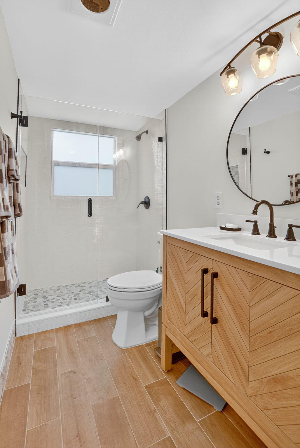 Rarely available first-floor corner unit in the highly sought-after Century Village! This spacious 2-bedroom, 2-bath residence features the largest floor plan in the community and offers the perfect blend of comfort, style, and convenience. The home has been thoughtfully updated with a brand-new, beautifully designed kitchen showcasing modern cabinetry, quality finishes, and sleek functionality--ideal for both everyday living and entertaining.Both bathrooms have been transformed into spa-inspired retreats, complemented by impact windows throughout, high-end modern finishes, and fresh neutral paint that creates a bright, move-in-ready feel. The corner location allows for added privacy and natural light, while the first-floor setting offers easy access with no stairs.Century Village is renowned for its resort-style, low-maintenance lifestyle, featuring an impressive array of amenities including 12 tennis courts, 12 shuffleboard and bocce ball courts, a 1,250-seat theater, a main outdoor pool, plus 13 additional satellite pools throughout the community. Residents enjoy an active social calendar with clubs, fitness classes, live entertainment, and countless recreational options. With far too many amenities to list, this vibrant community truly offers something for everyonebe sure to review the photos for a full list of activities and features. This is a rare opportunity to own a turnkey, oversized corner unit in one of the area's most desirable 55+ communities.