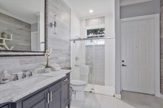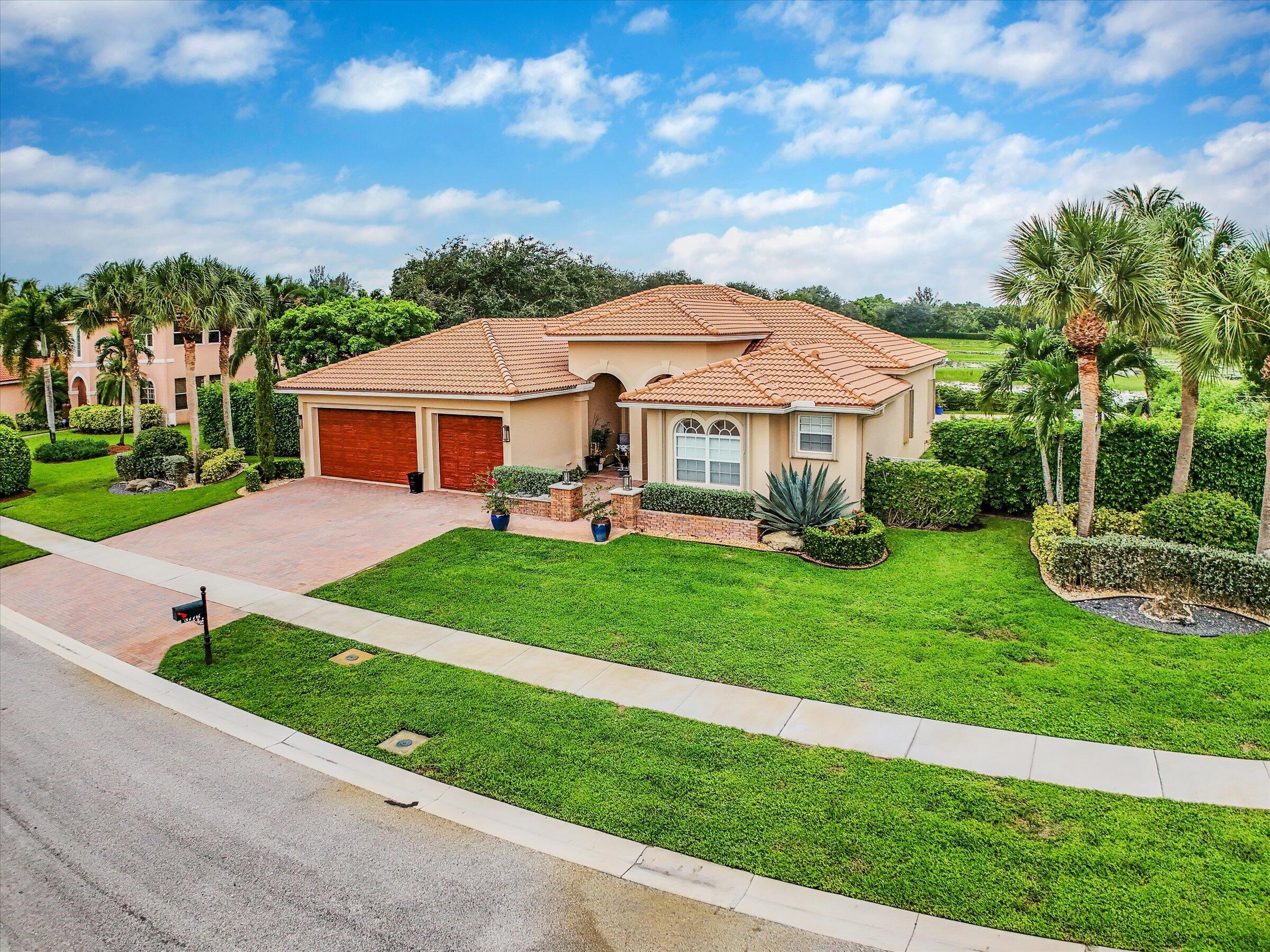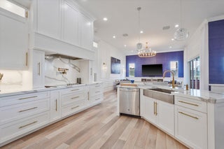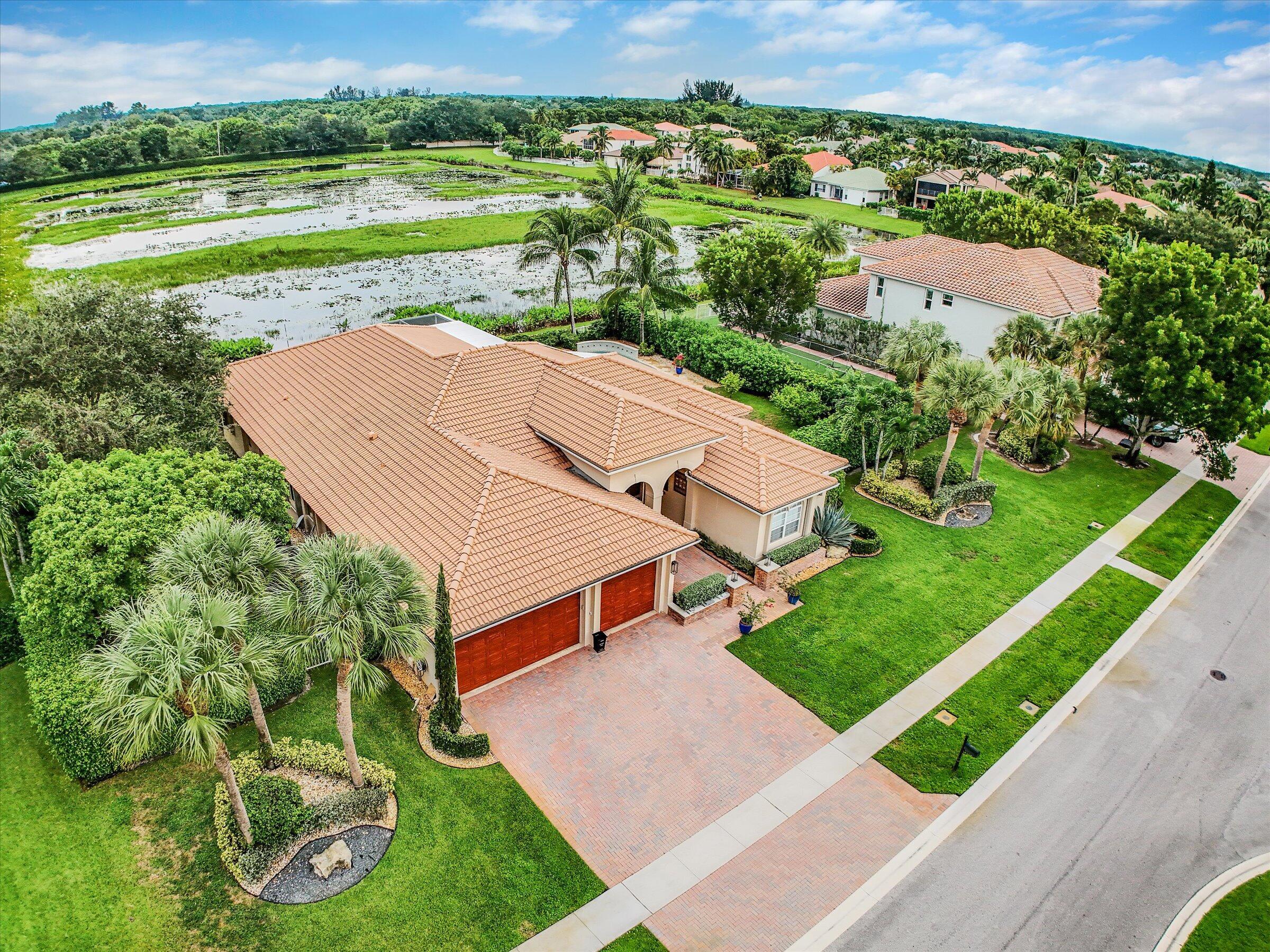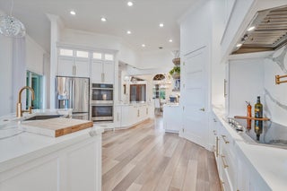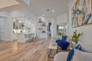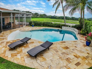 Luxury 5-bed 3-bath oasis pool home can be rented for season or year round fully furnished/turnkey. Gorgeous white kitchen with double ovens, decorative hood with gold fixtures, pot filler, coffee bar, wine fridge, designer countertops and more. Private saltwater beach entrance pool on a tranquil private preserve with screened in outdoor living and dining. Spacious bedrooms, one converted to office with built-in desks. Spa-like master bath with huge shower and tub. AC in garage. Navy grasscloth wallpaper in family room, tastefully decorated with state-of-the-art community amenities, this home is situated within proximity to equestrian venues and beaches. Includes Wi-Fi, Cable and ADT security.