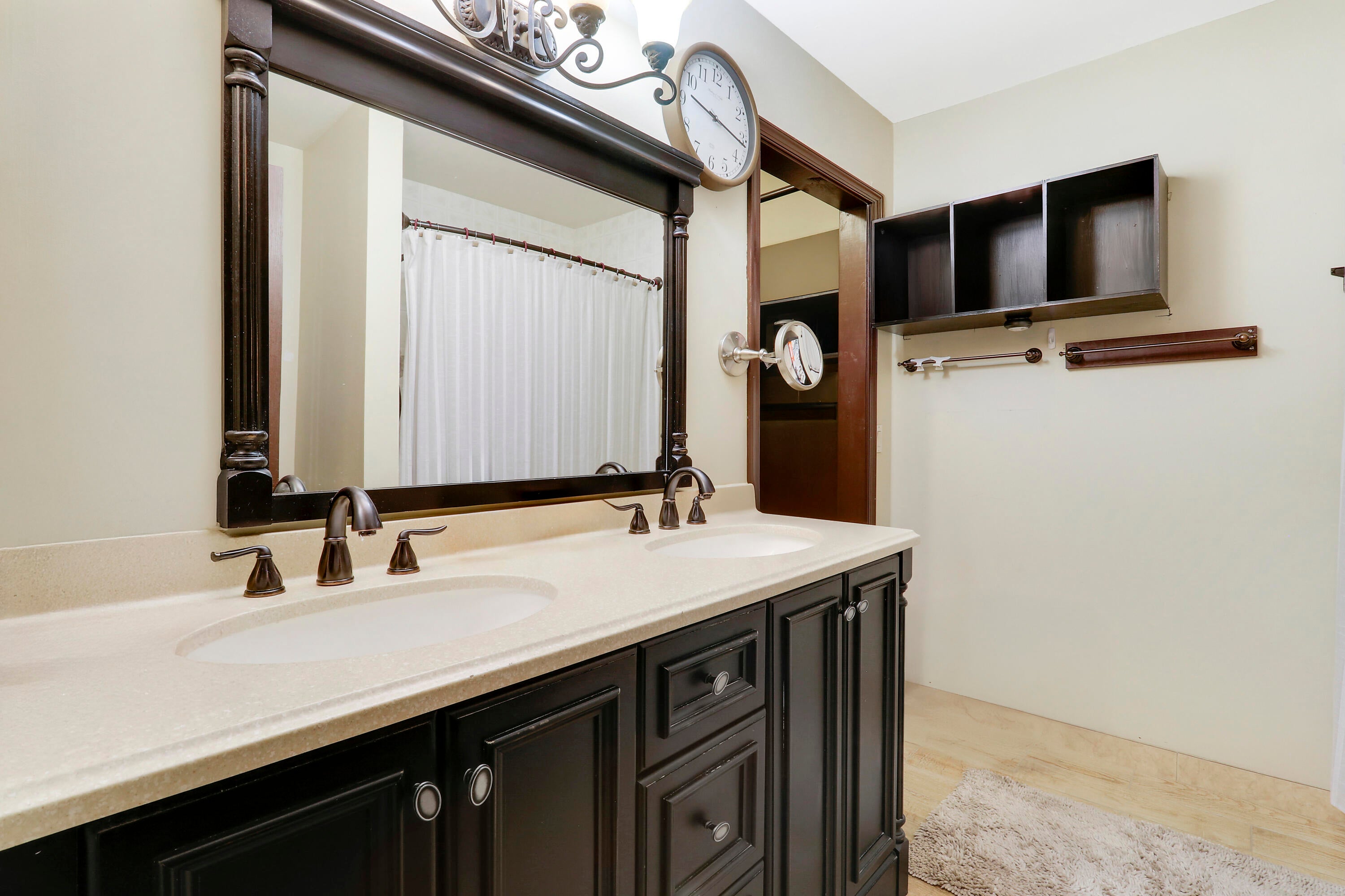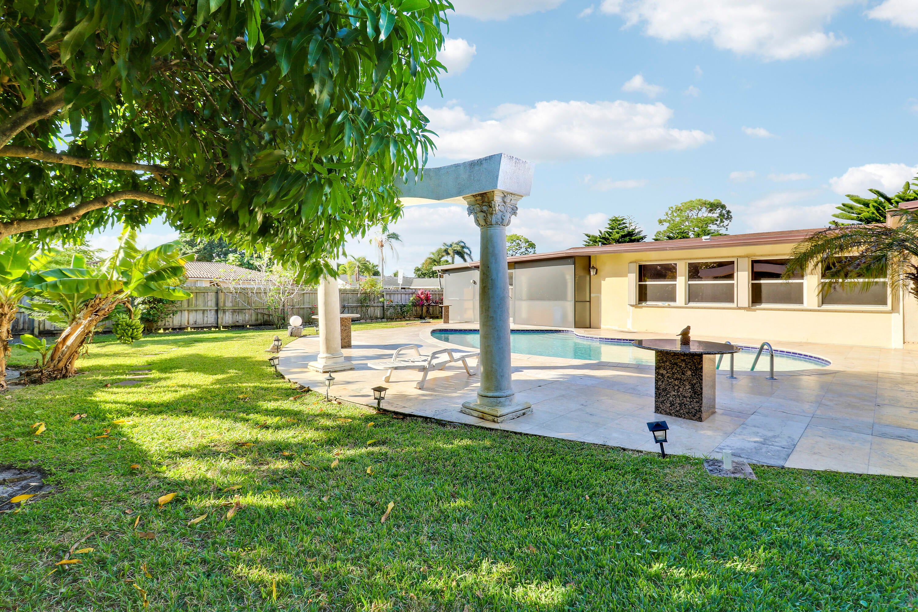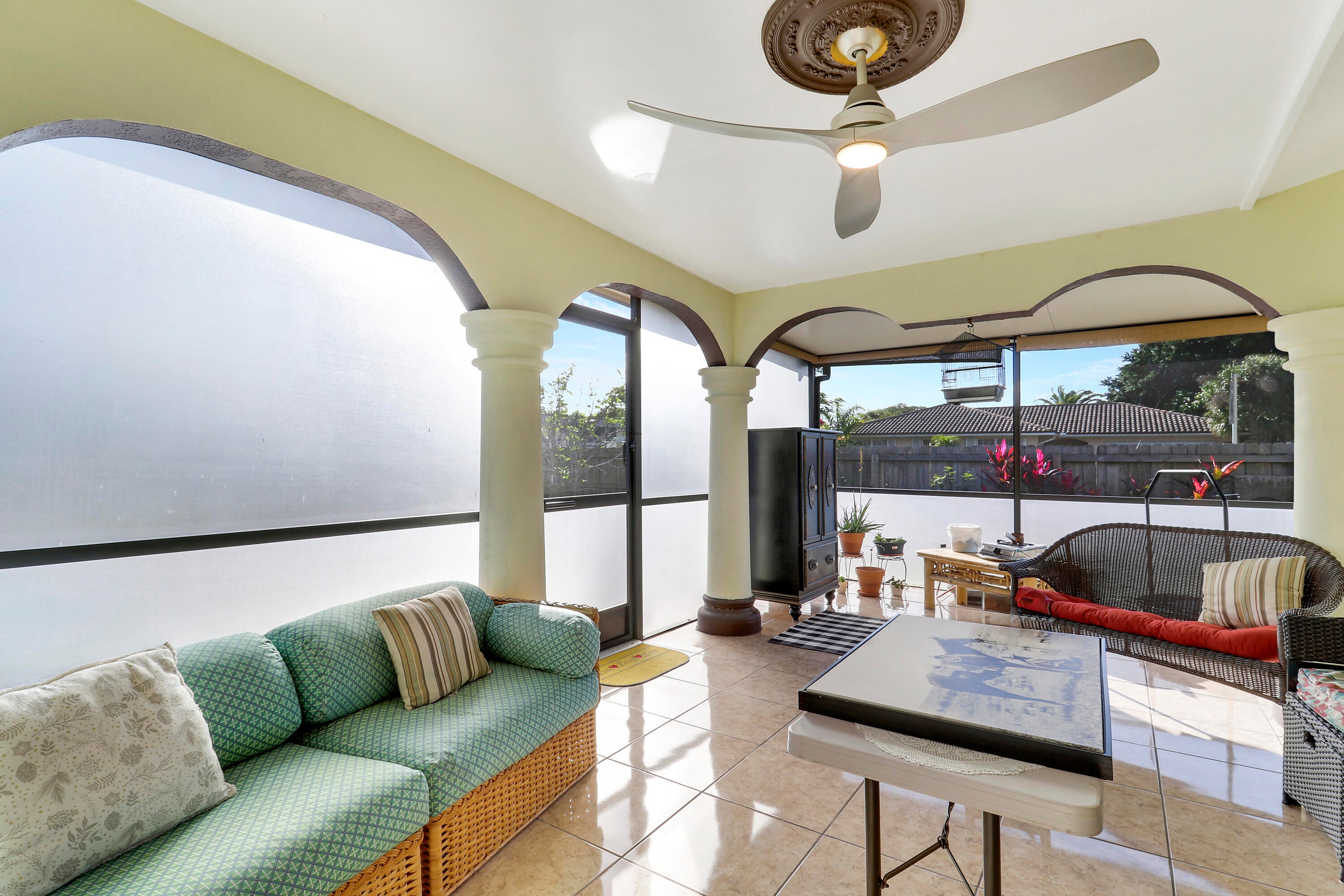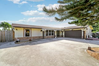 Spacious pool home in the desirable neighborhood of Garden Isles. Ideally located in the heart of PB Gardens. The kitchen features wood cabinets with granite countertops and one year old refrigerator, oven and hood. The three baths have been remodeled. The roof was replaced in 2024. The screened patio overlooks the pool. Tropical trees including organic banana, mango, avacado, sugar apple and fig. Zoned sprinkler draws from the canal.