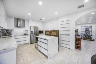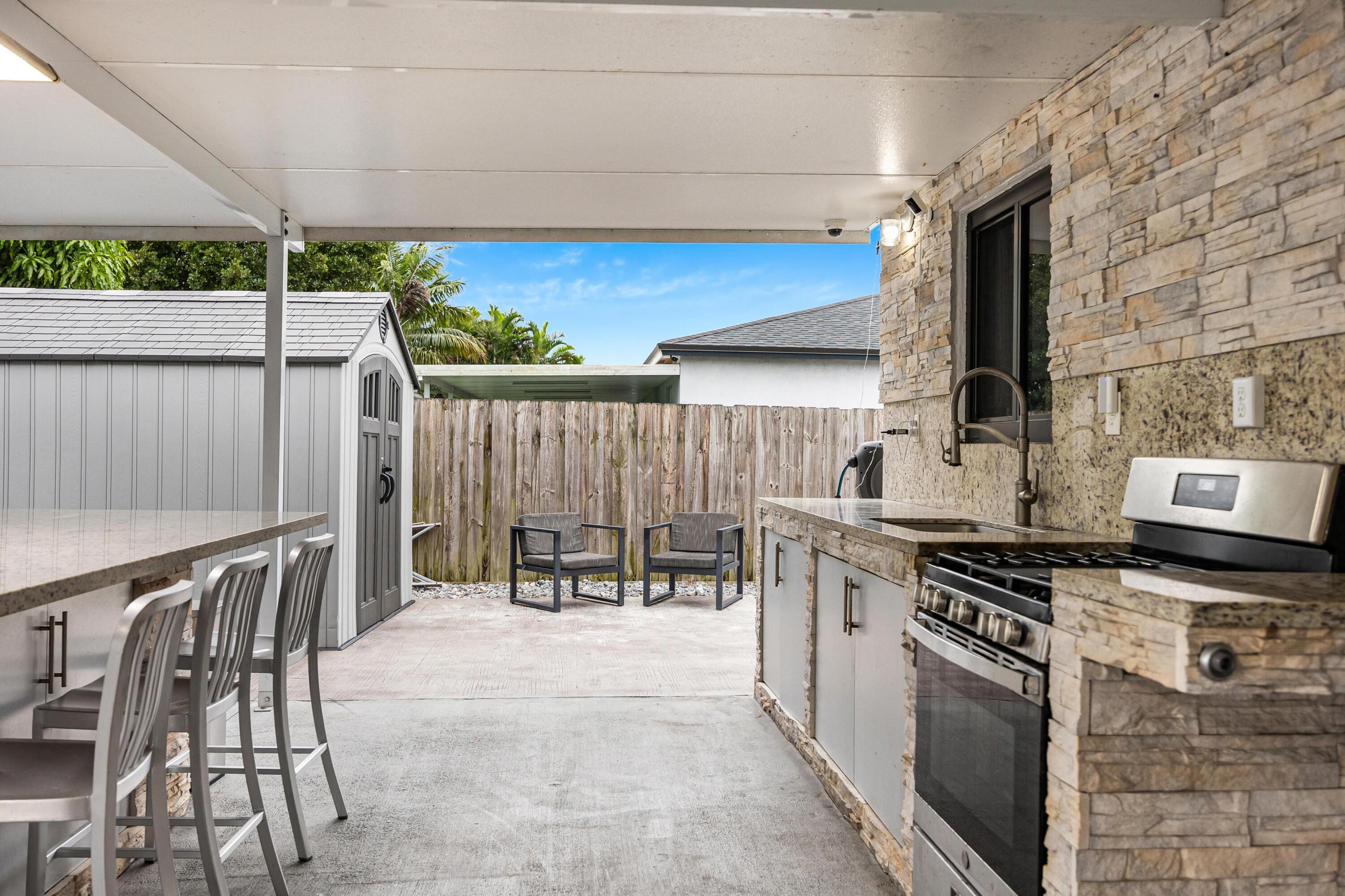 Fully renovated 3-bedroom home featuring a 2022 metal roof and Hurricane Impact Windows. The heart of the home is the brand-new modern kitchen, featuring premium cabinetry and sleek quartz countertops, designed for both everyday living and entertaining. Thoughtful upgrades continue throughout the home with premium interior glass doors, baseboards, modern recessed lighting, tile flooring, and new zebra blinds in every room. Outdoor living is equally impressive with a covered patio and fully equipped outdoor kitchen, featuring stone finishes, granite countertops, a large center island with seating, and gas stove. There is ample yard space for a boat or trailer, plus room for a pool. Enjoy a move-in ready home with all the upgrades and no HOA!