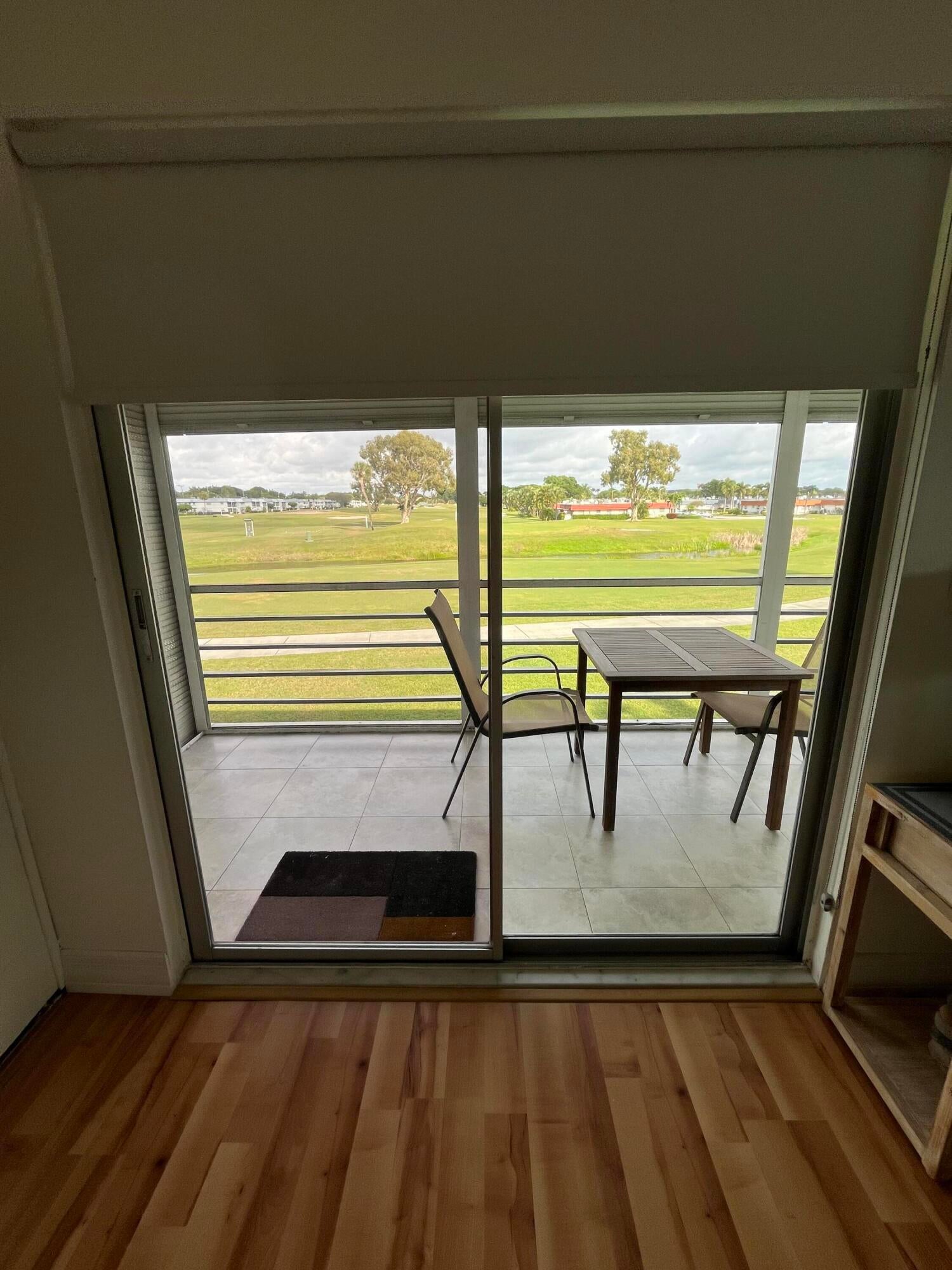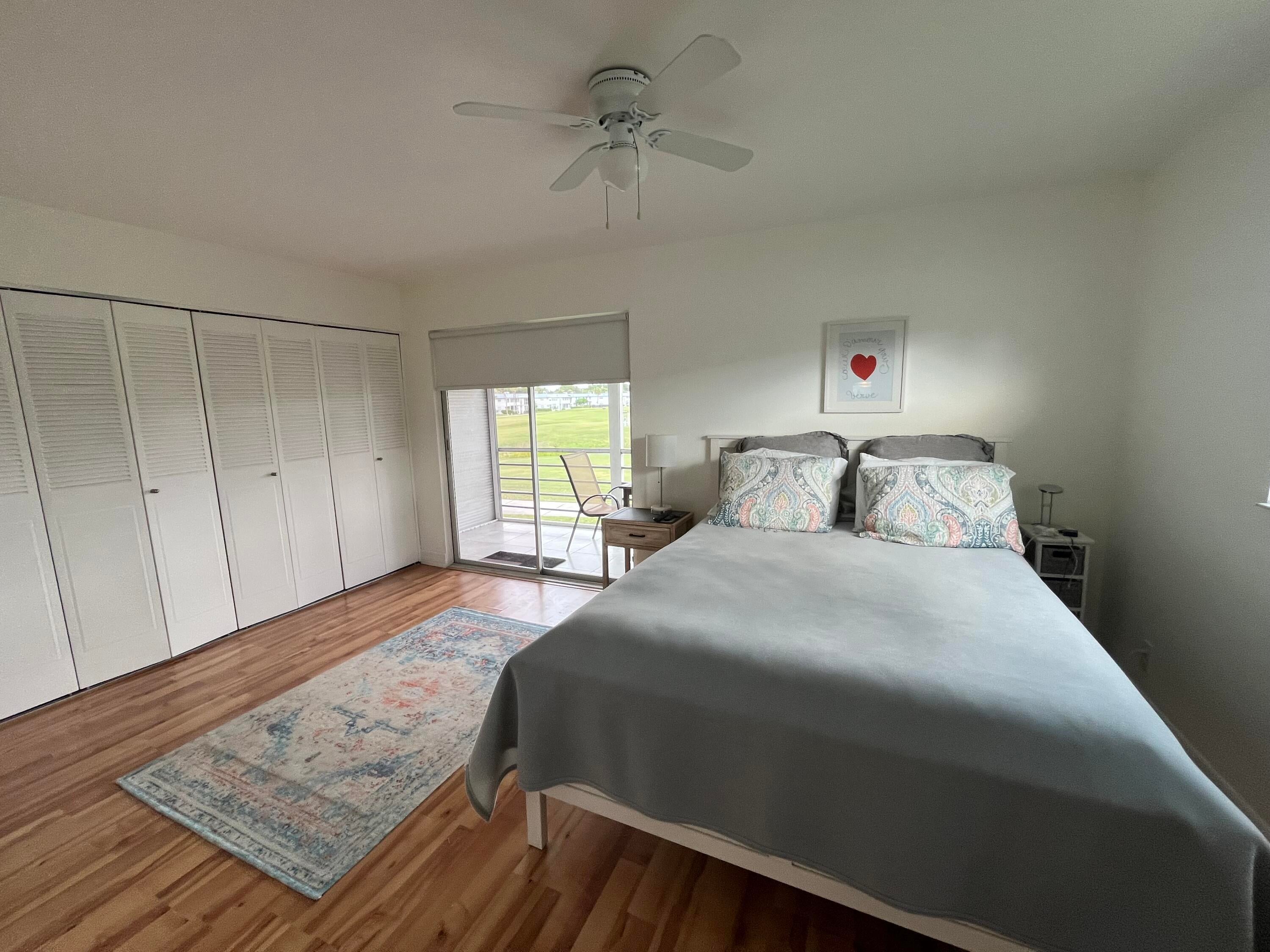 LOCATION, LOCATION, LOCATION!! Widest expansive golf course view from your 2nd floor balcony/patio with northern exposure. Sit on your patio and enjoy the cool breezes while having breakfast. Very contenporary modernized unit. Kitchen boasts of a glass top range with a range hood, stainless steel fridge. Front loading washing machine in the kitchen as well. Gray quartz countertops. Recessed lighting. Wood laminate flooring throughout the condo. So, so clean A/C approx 2023-'24 Updated bathrooms with tub shower in primary bathroom. Roll-down shutters on the patio. Unit available with all furnishings.