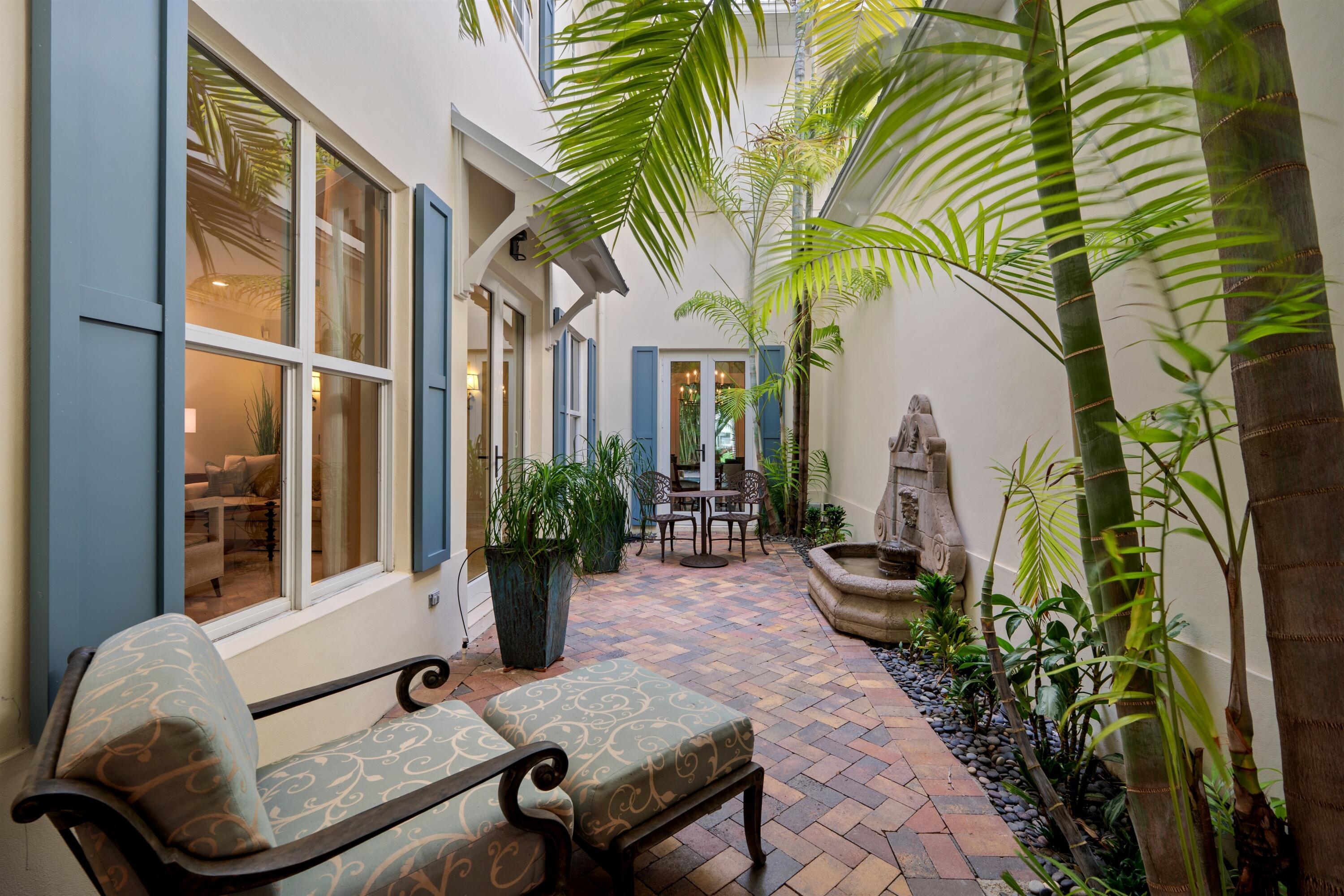A block from the sea and near Delray Beach's trendy Atlantic Avenue, this Windsor Court townhome conveys a signature blend of Caribbean-inspired charm; modern luxury; and a light, airy, serene ambience. A tranquil seaside retreat, it lives like a single-family home with windows on all four sides offering garden views, and a private heated pool. 1016 Bay Street, Delray Beach, Florida. An enclave of ten Caribbean-style seaside townhomes, Windsor Court offers the idyllic beach lifestyle in Seagate, a sought-after neighborhood near the ocean and four blocks from vibrant Atlantic Avenue's restaurants and shops. PROPERTY: A tropically landscaped oasis, residents enjoy indoor/outdoor living in the gated front courtyard featuring a fountain, and on the inviting covered loggia overlooking a private heated pool, set within a brick patio and secluded by mature palms along the property line. RESIDENCE: A tranquil seaside retreat, this coastal /contemporary three-bedroom townhome, with 3,863± total-square-feet under the roof area, was developed by Ironwood Properties, renowned for creating residents with elegant detail-oriented architecture distinguished by quality materials and fine craftsmanship. Designed to accommodate garden views and an indoor-outdoor aesthetic, the living room and dining room overlook the serene front courtyard. Additionally, the dining room adjoins the pool loggia, both highlighted by handsome pecky cypress ceilings. The renovated island kitchen is finished with custom cabinetry, quartz countertops and high-end appliances, while the family room, just adjacent, accesses the pool loggia. Upstairs, the hallway with an office area connects the primary suite to the two guest bedroom suites in a split-bedroom plan for privacy. Highlights in the primary bedroom include a tongue-and-groove peaked ceiling and a pool-view balcony. The suite comprises two walk-in closets, a shoe closet and a renovated bathroom finished with tile flooring, custom cabinets, quartz countertops, dual sinks, spa tub and a glass-eclosed multi-head shower. The two guest bedrooms share an updated bathroom, and completing the overall layout are a half-bath, laundry room with a breakfast bar and the two-car garage. Features include planation shutters, phantom screens and marble flooring downstairs, while new details throughout include LED lighting and impact-rated doors, along with new carpeting, baseboards and wood flooring upstairs. DISCLAIMER: Information published or otherwise provided by the listing company and its representatives including but not limited to prices, measurements, square footages, lot sizes, calculations, statistics, and videos are deemed reliable but are not guaranteed and are subject to errors, omissions or changes without notice. All such information should be independently verified by any prospective purchaser or seller. Parties should perform their own due diligence to verify such information prior to a sale or listing. Listing company expressly disclaims any warranty or representation regarding such information. Prices published are either list price, sold price, and/or last asking price. The listing company participates in the Multiple Listing Service and IDX. The properties published as listed and sold are not necessarily exclusive to listing company and may be listed or have sold with other members of the Multiple Listing Service. Transactions where listing company represented both buyers and sellers are calculated as two sales. "No payments made until title passes" Some affiliations may not be applicable to certain geographic areas. If your property is currently listed with another broker, please disregard any solicitation for services. Information published or otherwise provided by seller, listing company or its representatives is deemed reliable but are not guaranteed and subject to errors, omissions, or changes without notice. Copyright 2024 by the listing company. All Rights Reserved.