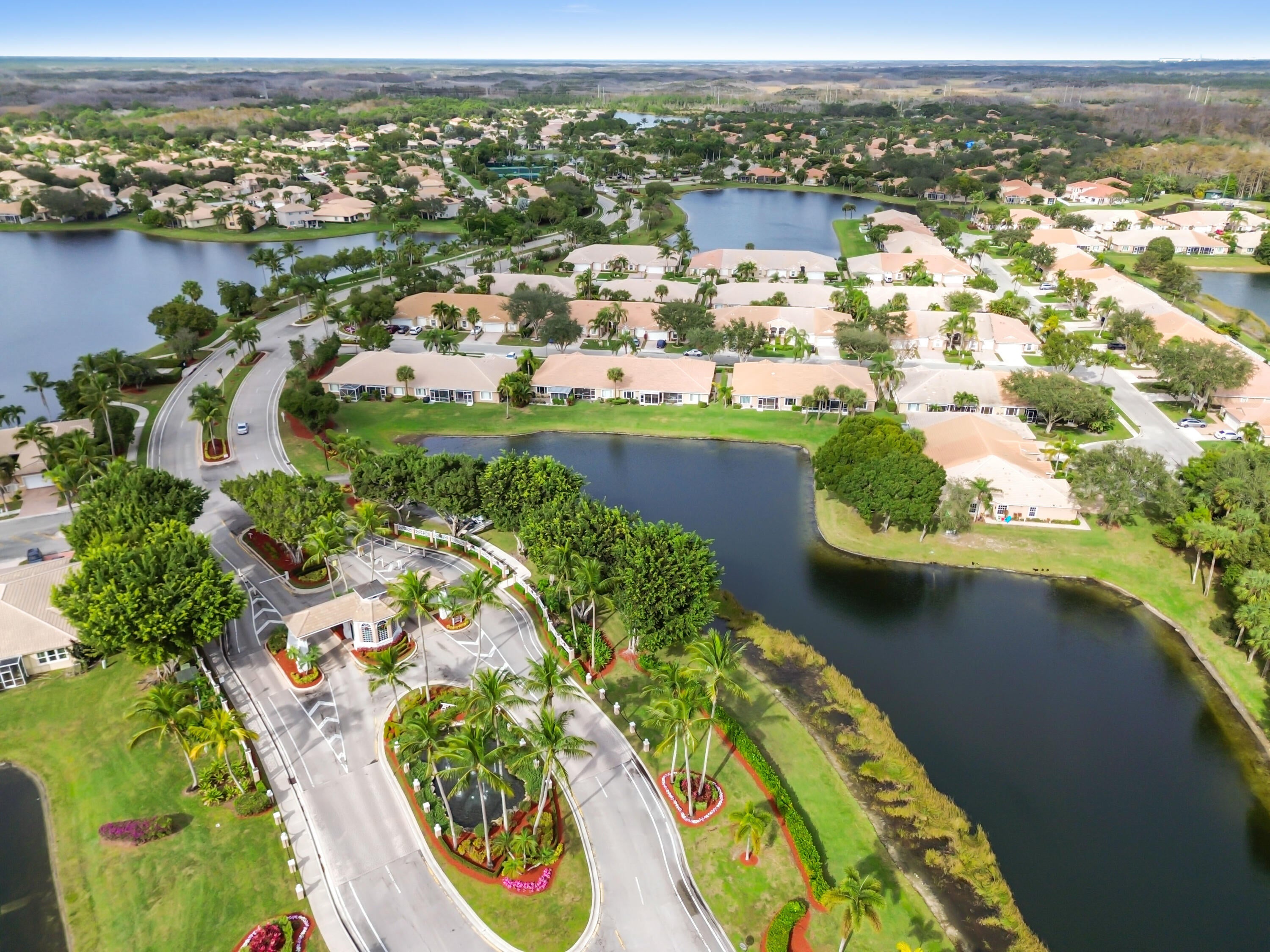 Discover the perfect combination of peace of mind and modern luxury in this move-in-ready 3-bedroom, 2-bath villa, boasting a new roof (2023) and a freshly painted interior. Step inside to find a sleek home designed for easy living, centered around an open-concept kitchen featuring granite countertops and stainless steel appliances. The bathrooms have been tastefully renovated to include a spa-like Jacuzzi sit-down shower and tub, offering a daily retreat. Practicality meets comfort with a 2-car garage equipped with a privacy screen, while the covered and screened patio offers serene, uninterrupted views of the lake--the ideal spot for your morning coffee or evening relaxation.Located within the sought-after, gated community of Andros Isle, this home offers access to an award-winning clubhouse with resort-style amenities, including a pool, fitness center, tennis, and pickleball courts. The location is unmatched for convenience, placing you just minutes from the Florida Turnpike, Wellington's equestrian venues, top-rated hospitals, and an array of dining options. Whether you need quick access to PBI Airport or the vibrant nightlife of Downtown West Palm Beach, everything is within easy reach, making this lakefront gem the ultimate carefree sanctuary.