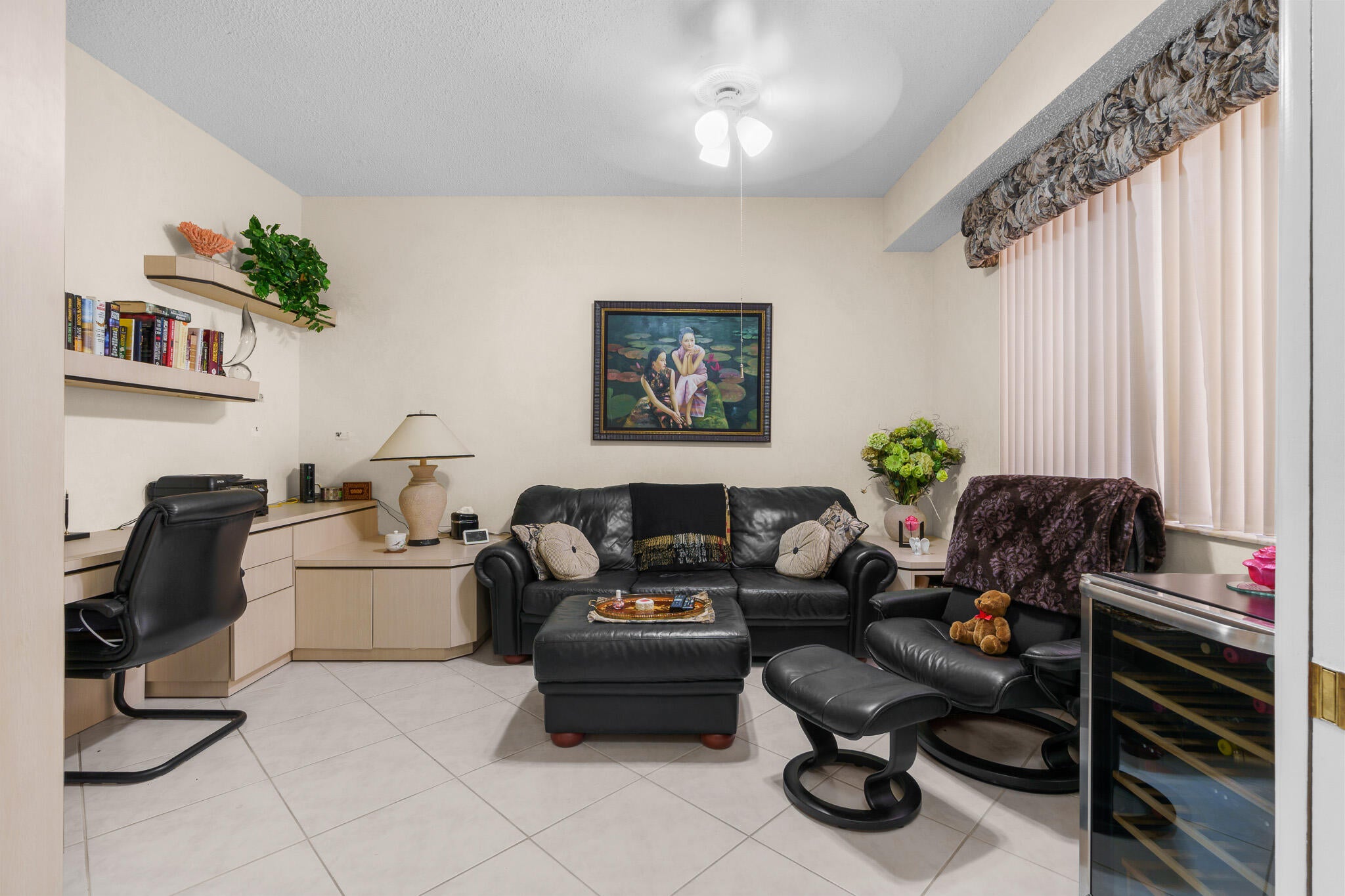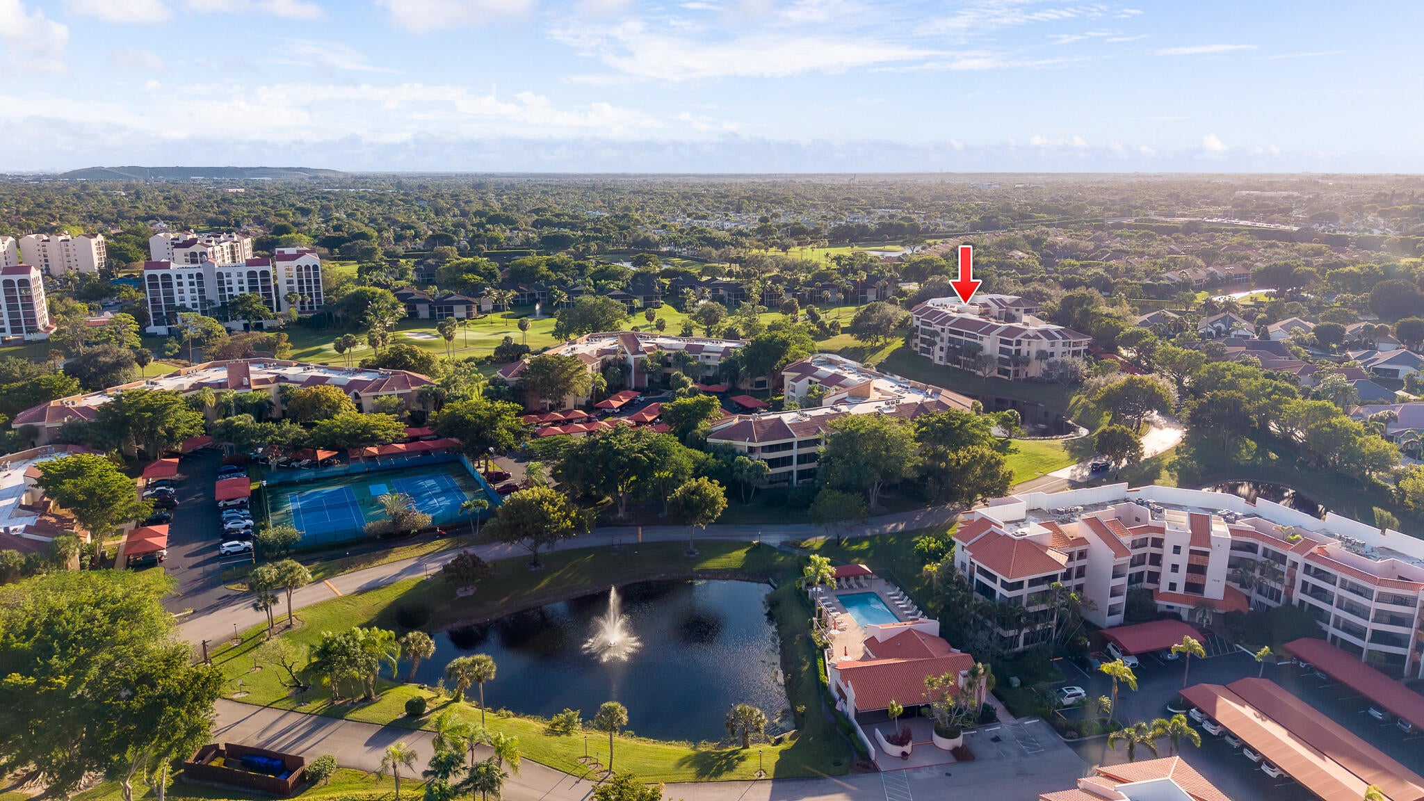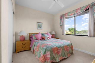 Beautiful condo on top floor with 3 bedrooms, 2 baths in updated condition. Charming unit with views of garden and lake. The spacious kitchen has granite countertops, stainless steel fridge, extra cabinets and view of the garden. There is plethora of storage and large/walk in closets. Other features include screened in patio with TV and storage cabinets, washer and dryer within the unit, and a new AC that was just installed. All furniture and small appliances are negotiable. Lakes at La Paz feature 2 pool, 2 tennis courts, pickleball, hot tub and a clubhouse. The sought-after Boca Pointe community offers an amazing Country Club optional membership! This unit is priced to sell.