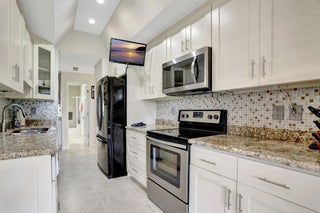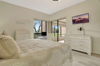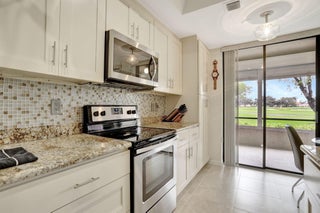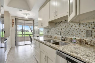 Move right into this beautifully updated 2-bed, 2-bath first-floor condo with golf course views. Large tile floors throughout living areas. Sold turnkey, fully furnished, and equipped with TV's and so much more!!! Screened patio with storm shutters. Updated kitchen features replaced cabinets, granite countertops, mosaic backsplash, and glass cabinet door. Appliances are 7 years old (fridge 5 years) with a TV and pantry. Master bedroom with vinyl floors, king bed, walk-in closet with new shelving, and wall-mounted TV. Master bath has double sinks, granite tops, marble floors, and updated shower. Second bedroom with queen sleeper and walk-in closet. Washer and dryer 5 years old. A/C 2009 and water heater 7 years old La Paz offers 2 pools, 2 tennis courts, and a small clubhouse.