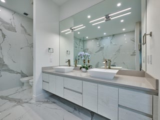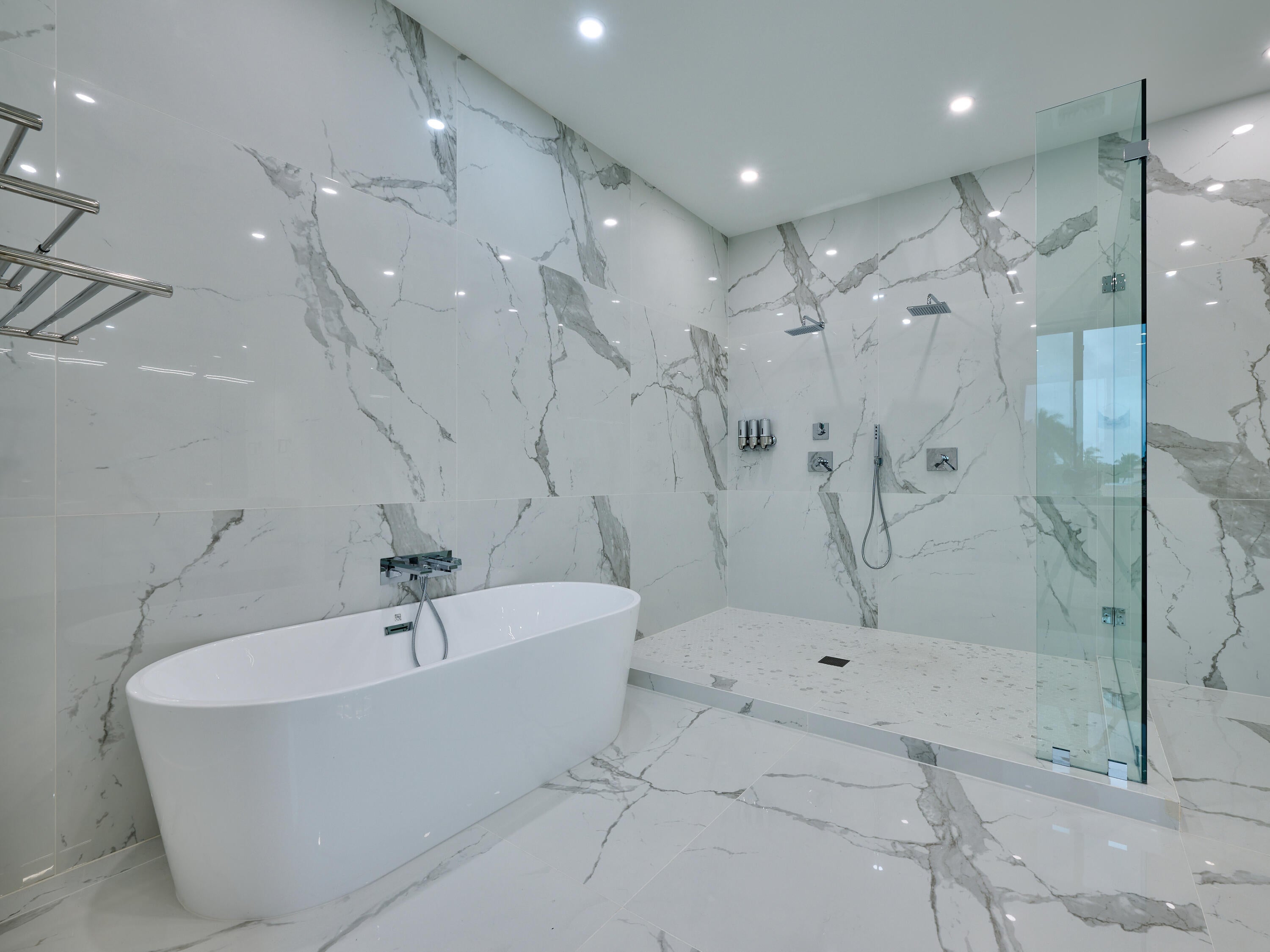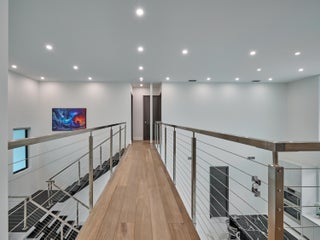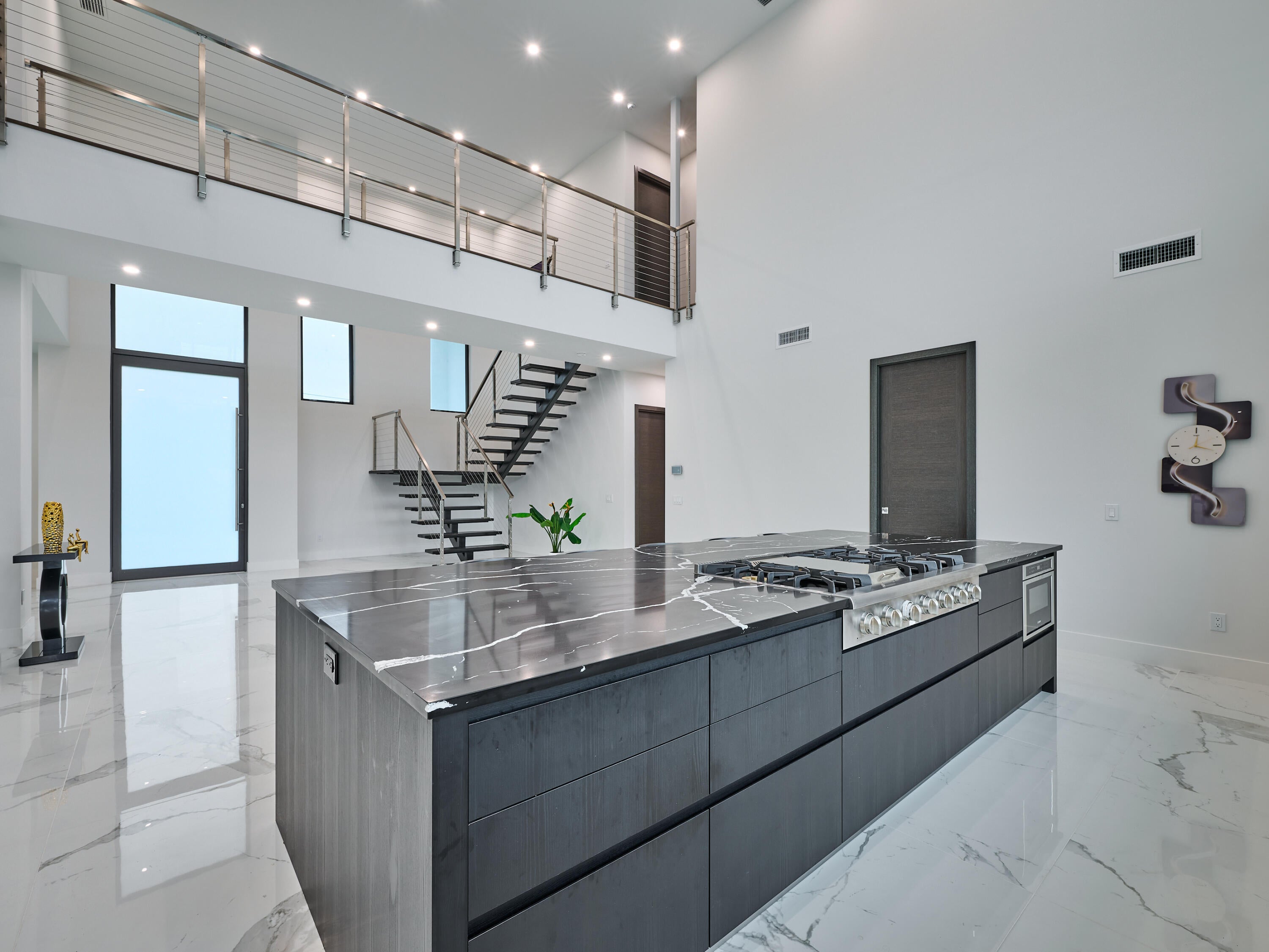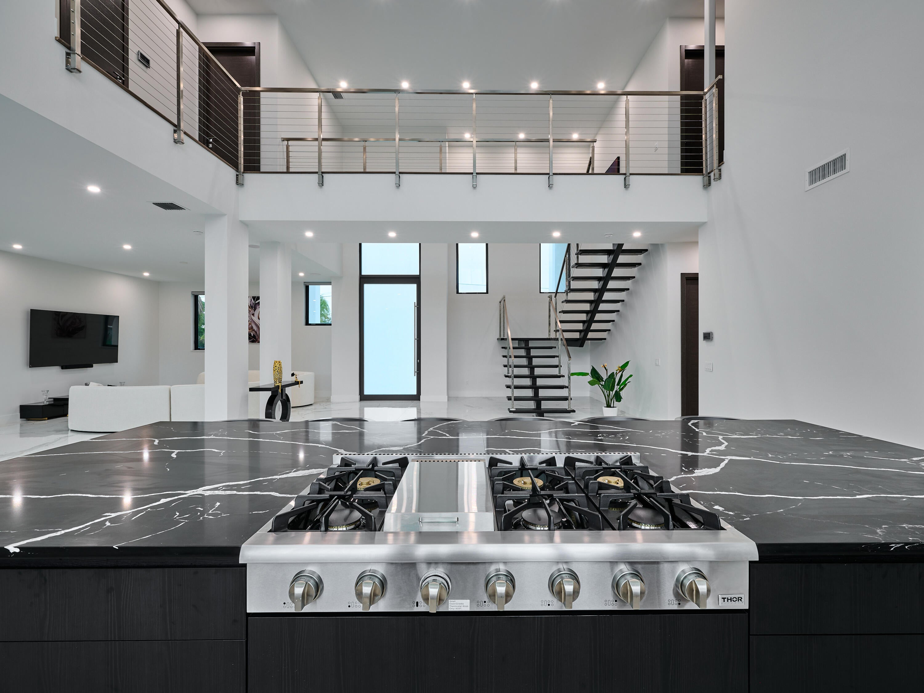 This exquisite, just-completed 2025 modern waterfront masterpiece offers turnkey coastal luxury in the heart of South Florida. Spanning approximately 4,500 square feet over two sunlit levels, the home delivers breathtaking ocean-access water views from nearly every room, seamlessly integrating indoor and outdoor spaces for a private resort-like experience. Soaring ceilings, expansive floor-to-ceiling impact-resistant glass, and automated motorized shades flood the interiors with abundant natural light. The gourmet chef's kitchen serves as the home's centerpiece, boasting an oversized double-slab black island, top-tier professional appliances, a gas cooktop, and elegant design perfect for intimate meals or large-scale entertaining. Upstairs, warm hardwood flooring leads to the luxuriousprimary suite, complete with a private sitting area, spa-like bathroom featuring dual sinks, dual showers, a lavish free-standing tub, and a sophisticated bidet; an expansive walk-in closet; and a covered balcony overlooking the canal. All generously sized bedrooms feature en-suite bathrooms and walk-in closets, with two opening onto private balconies showcasing wide-water views. On the main floor, enjoy a convenient cabana bath ideal for pool guests and a stylish powder room. The additional bedrooms each include private full baths with built-in tubs. A dedicated mudroom comes fully equipped with washer, dryer, utility sink, and ample cabinetry, offering excellent organization and the potential for conversion into maid's or nanny's quarters. Transition effortlessly to expansive covered terraces with pre-plumbed space for a summer kitchen, alongside a stunning infinity-edge pool and spa that blend harmoniously with the horizon. Boating enthusiasts will appreciate the brand-new elevated 80-foot deepwater dock, complete with full electric service and no fixed bridges, providing direct Intracoastal and open-ocean access. The crowning jewel, a spacious rooftop terrace, roughed-in and ready for customization promises unparalleled 360-degree views and an idyllic setting for unforgettable sunset soirées. This home is engineered for ultimate reliability and convenience, featuring a whole-house backup gas-powered generator, sustainable solar panels, and a premium Sonos sound system throughout the interior and pool area. Smart home integration places control at your fingertips via smartphone, managing the pool, spa, lighting, climate, and more. Comprehensive security is ensured with a full camera system surrounding the property. Uncompromising in quality and design, this residence defines the pinnacle of contemporary South Florida waterfront living and is ready for immediate enjoyment.