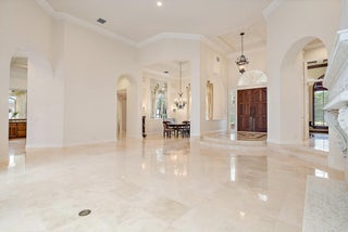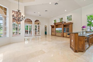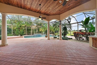 Perfectly positioned on a half-acre lot just moments from the main gate and premier amenities of The Club at Ibis, this stunning custom estate offers timeless architecture, thoughtful design, and sweeping long water and golf course views overlooking the fairway of the Nicklaus-designed Legend Course #6. Adding immediate peace of mind, the roof was replaced in 2022, complementing the home's exceptional scale and enduring quality. Encompassing 5,915 square feet under air and 7,565 total square feet, the residence features four bedrooms, four full baths, three half baths, a private office, a theater/game room, and a 3.5-car garage. Designed for effortless living, all primary spaces--including the owner's suite, three spacious guest suites, and den--are located on the first floor, offering ideal single-level functionality. A second-floor bonus/game room added in 2003 sits above the garage and provides nearly 900 additional square feet complete with a custom wall unit, mini kitchen, and powder room, making it ideal for entertaining, media, or extended guest use. Throughout the home, refined architectural details include marble flooring, crown molding, wood baseboards, vaulted and tray ceilings, raised-panel solid wood doors, recessed lighting, French doors, and a striking fireplace. Mahogany double front doors create a grand arrival, while the formal dining room is elegantly enhanced with crown and wall moldings. The gourmet kitchen is designed for both function and style, showcasing upgraded cabinetry, granite countertops, a 48-inch Sub-Zero refrigerator with ice maker (2018), Thermador cooktop, Viking double ovens, and a wine refrigerator. The adjacent family room opens through French doors to a spectacular outdoor retreat featuring over 1,800 square feet of screened patio space, a resort-style pool and spa, outdoor kitchen, and wet barset against tranquil water and golf course views. Additional features include a brick-paver patio and driveway, a fully upgraded three-car garage by Premier Garage with new flooring, walls, cabinetry, drawers, and custom slat wall, two garage motors replaced in 2025, a water softener and carbon tank system, and a Samsung app-enabled washer and dryer. This exceptional estate blends refined luxury, thoughtful upgrades, and an unmatched location within one of Palm Beach County's most sought-after private club communities. Located in the Egret Lakes enclave at The Club at Ibis, this home provides access to one of South Florida's most celebrated amenity-rich environments: a 90,000-square-foot clubhouse, three championship Nicklaus-family golf courses, five exceptional restaurants, a world-class fitness complex and spa, and premier tennis and pickleball facilities.