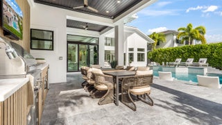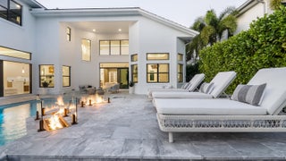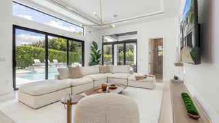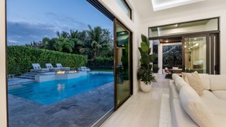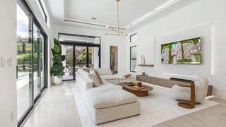 A true architectural masterpiece located within the prestigious Boca Bridges community; this residence has undergone a complete redesign and rebuild with no builder grade materials remaining. Essentially a brand new custom home, the transformation was just completed in December 2025 and reflects an uncompromising commitment to luxury, craftsmanship, and design. Offering an exceptional two story layout, the home includes six bedrooms, seven full bathrooms, two half bathrooms, a private office, a spacious loft, a custom movie theater with Martin Logan surround sound, and a three car garage.The home is introduced by dramatic 48 x 48 Spanish porcelain flooring throughout the main living areas, paired with rich custom Reserve hardwood floors in the bedrooms and along the staircase.Designer lighting and refined finishes are showcased throughout, creating a sophisticated yet warm atmosphere. The custom kitchen is a statement of both form and function, featuring leathered Bianco Rhino quartzite countertops, custom cabinetry, and a professional appliance suite by Wolf, Sub Zero, and Viking, ideal for everyday living and elevated entertaining. The primary suite is a private retreat, highlighted by a spa inspired bathroom with a luxurious wet room featuring separate his and her showers, a designer soaking tub, Hansgrohe fixtures, and smart EPLO electric toilets. Every bathroom in the home reflects the same level of detail and craftsmanship, finished with imported tile from Spain and premium materials throughout. The backyard is a true resort style oasis, perfectly positioned on an extremely private south facing lot with no rear neighbors. Designed for entertaining and relaxation, the outdoor space features a fully upgraded pool, an expanded covered summer kitchen with grill and pizza oven, outdoor fireplace, putting green, new turf, lush landscaping, and a full exterior lighting package. Whether hosting gatherings or enjoying quiet evenings, this backyard delivers the ultimate Florida lifestyle. This extraordinary residence inside Boca Bridges is more than a home. It is a work of art that must be experienced in person to be truly appreciated.