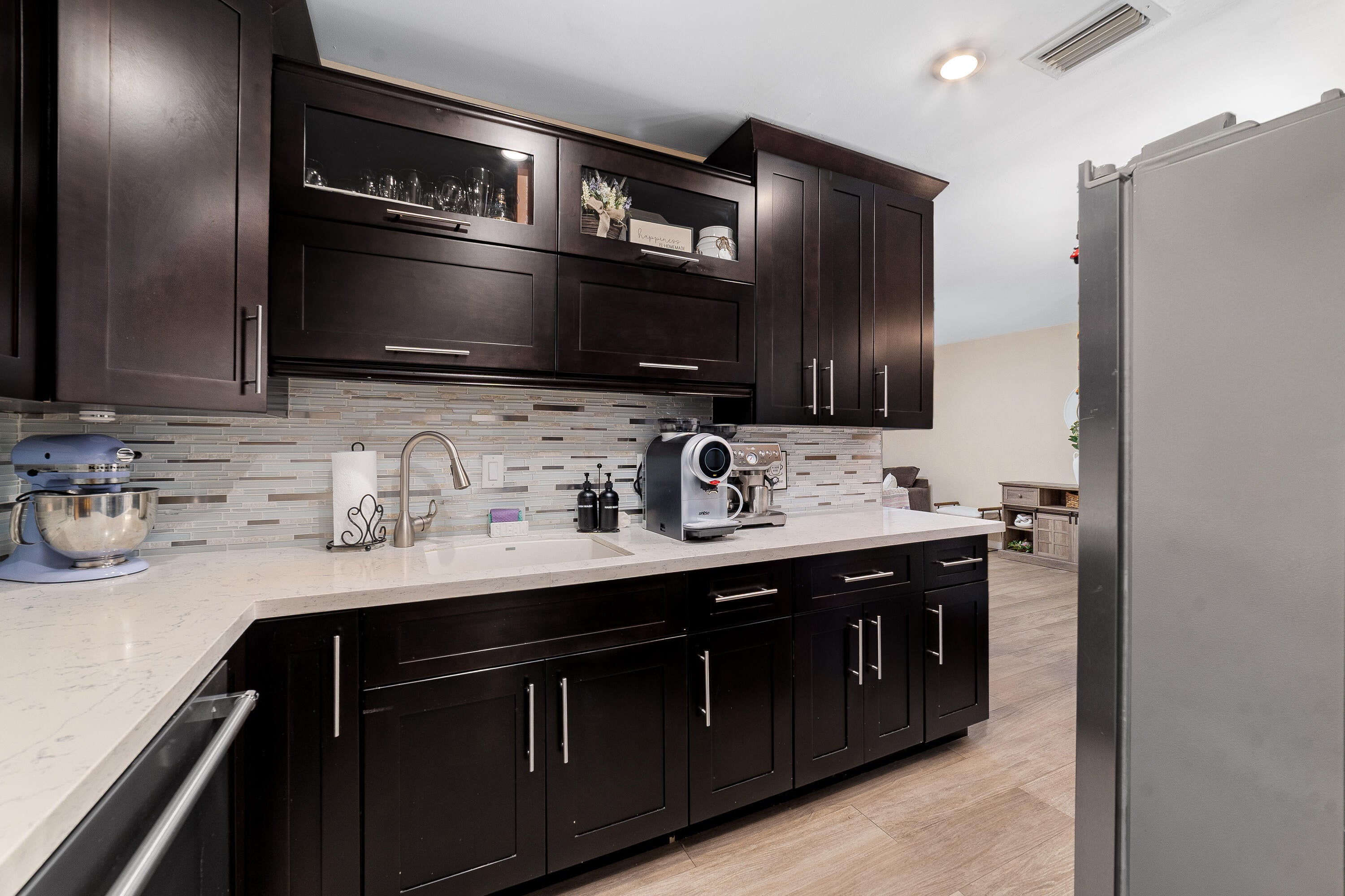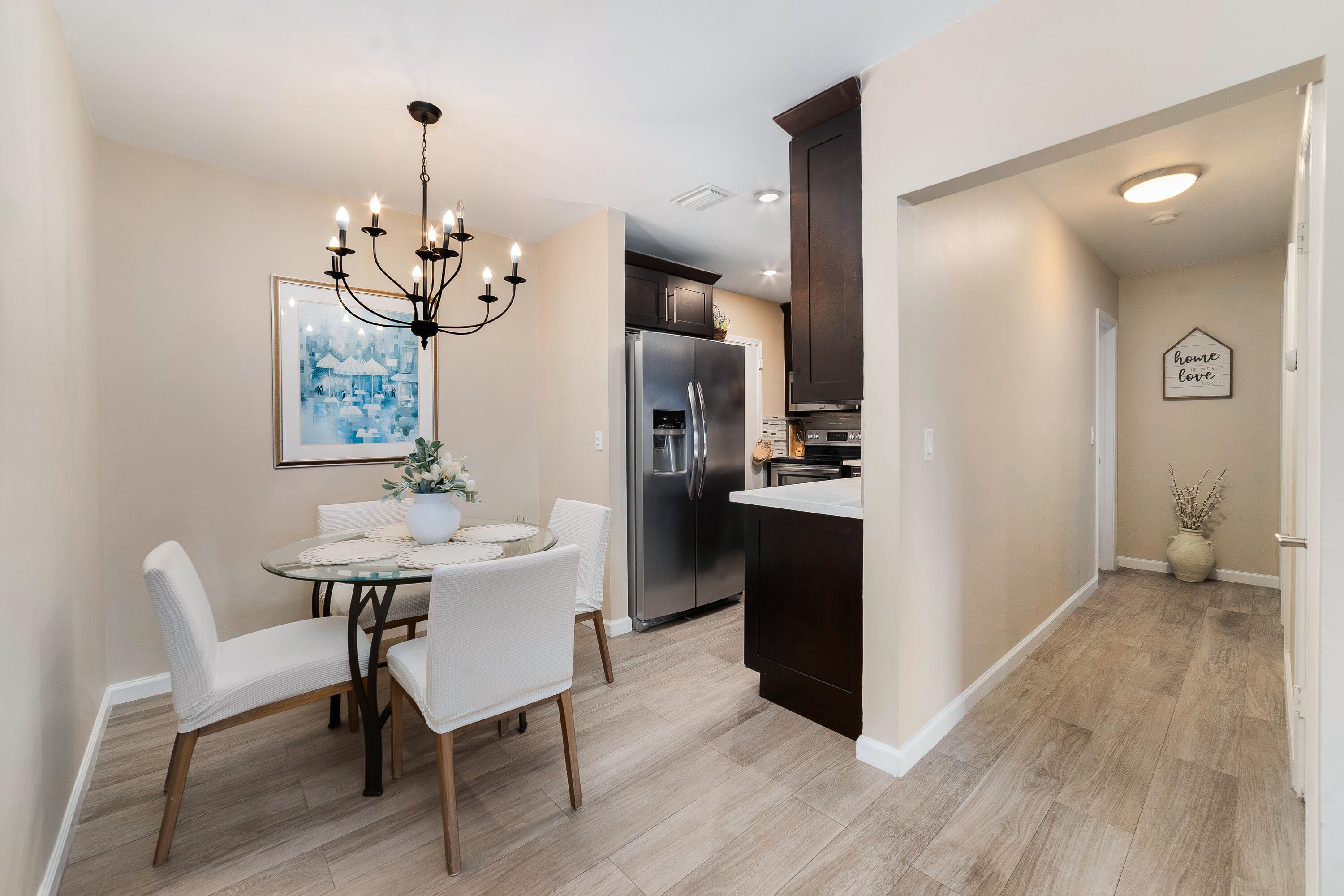 Thoughtfully renovated with a clean, modern style, this home offers a fresh and inviting feel throughout. Porcelain tile flooring with a warm wood-look finish runs through the main living areas, complemented by soft, neutral paint tones. The kitchen features custom espresso cabinetry, stainless steel appliances, granite countertops, and a striking backsplash that adds visual interest. Both bathrooms have been tastefully updated with contemporary tile flooring, sleek vanities, modern lighting, and glass-enclosed walk-in showers. Two spacious bedrooms provide comfortable retreats, each with soft carpeting, ceiling fans, and spacious walk-in closets.Additional highlights include a quiet neighborhood setting, a new AC unit installed in 2022, a roof replacement completed in 2024, and full concrete restoration also completed in 2024, offering added peace of mind. Located in the Imperial Point area, the home is conveniently close to shopping, dining, golf, tennis, and is just a short drive to the beach, making it easy to enjoy everything the area has to offer.
