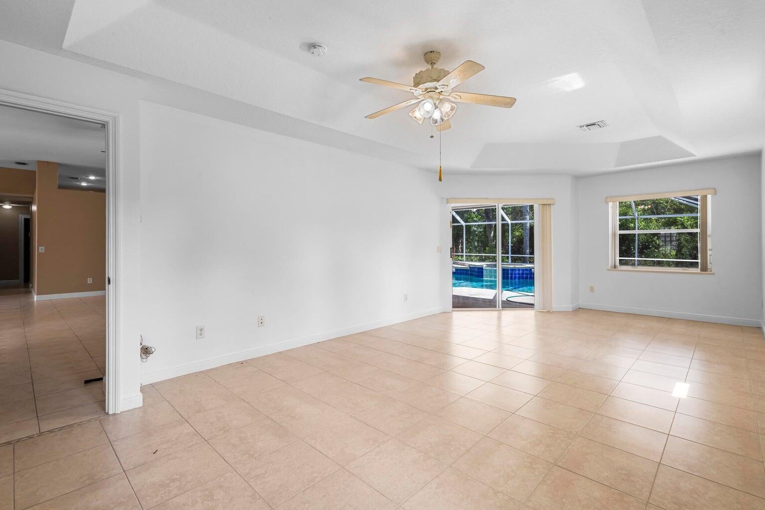 Three bedroon two bath with a den/office/4th bedroom. Cul de sac location. Screened lanai over the heated pool and spa. Formal Dining Room. 2016 A/C. Golf cart parking in garage.