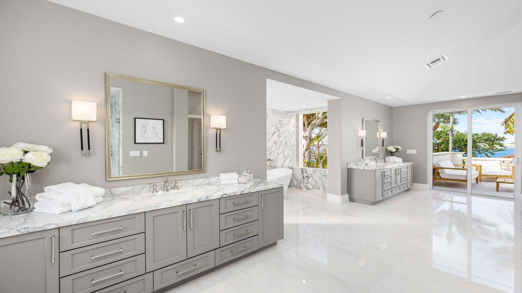 A Rare Dual-Waterfront Trophy Estate in Manalapan! Commanding one of Manalapan's most coveted positions, this extraordinary 1.86-acre ocean-to-Intracoastal compound is among the fewer than 60 properties in the entire town offering private frontage on both the Atlantic Ocean and the Intracoastal Waterway. Spanning approximately 13,000 SF under air and over 20,000 total SF, the estate delivers unparalleled scale, serenity, and architectural presence. A long, gated drive leads to the main residence, featuring seven bedroom suites plus a stately office and nine elegantly appointed bathrooms. Grand entertaining rooms flow seamlessly to sweeping terraces, resort-style grounds, and breathtaking water views at every turn. Across the dune, a charming oceanfront beach cottage provides an intimate retreat on pristine sand, while a private dock on the Intracoastal offers effortless boating access and sunset vistas. Crafted for discerning buyers seeking privacy, acreage, and generational quality, this is a rare opportunity to secure a world-class Manalapan estate with scale, infrastructure, and dual-waterfront living that cannot be replicated today.