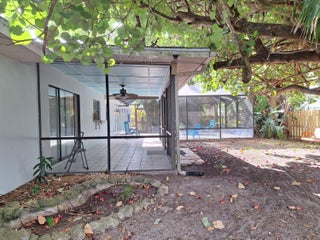 Your private, Florida sanctuary awaits you! This 3/2/1 offers features not usually found in this price range. Backyard offers a fully screened patio with a heated small pool / hot tub area. Great outdoor shower with hot and cold running water. Giant Banyan tree in yard priceless! Home feels much larger than actual square footage. This is a must, see property close to shopping, restaurants and less than 15 minutes to the beautiful beaches! Kitchen window pass thru, counter top to patio. All new interior door knobs and garage opener with remote. NEW kitchen appliances. NEW ROOF in 2024