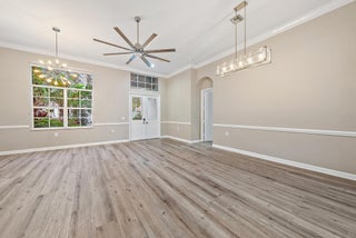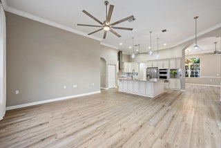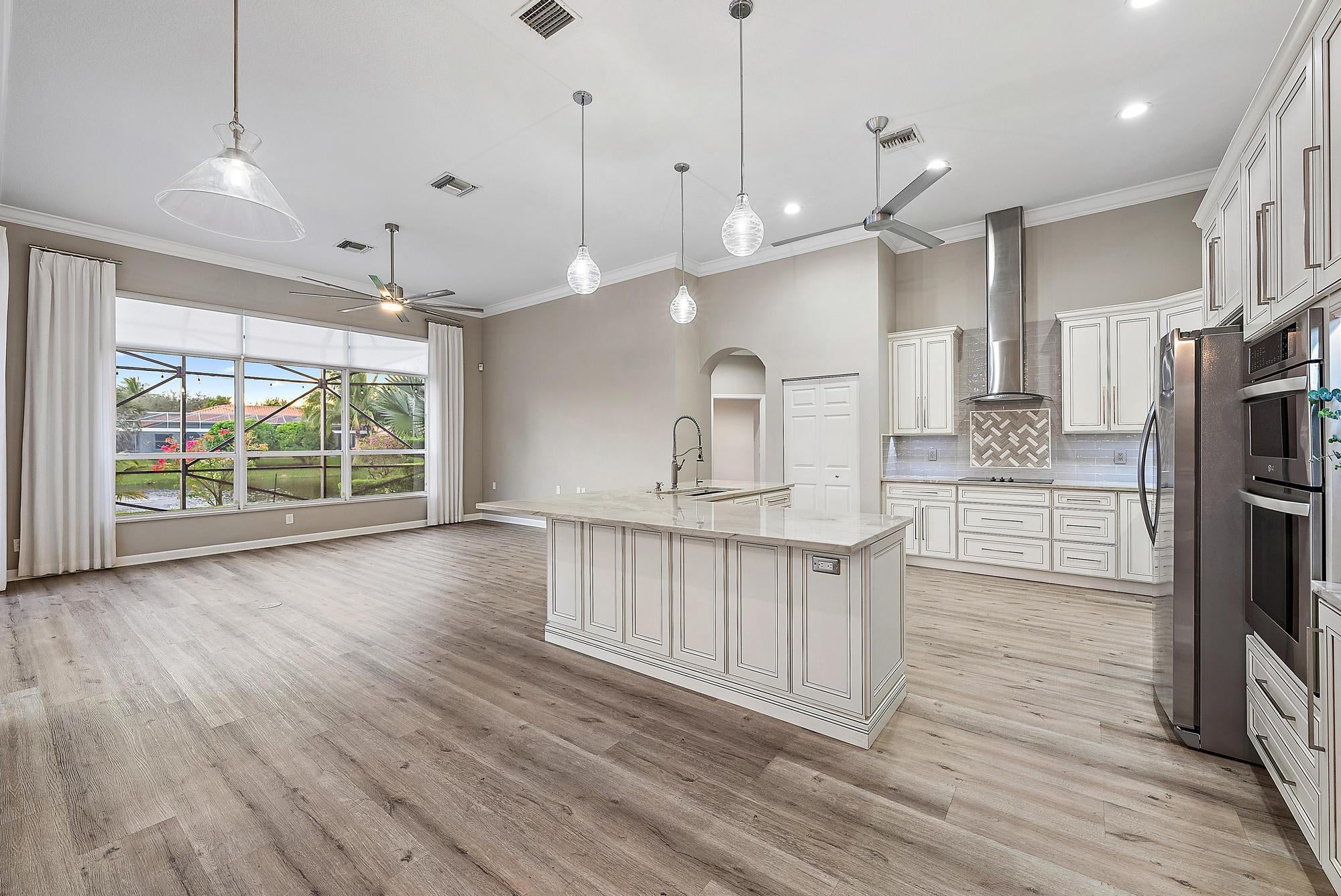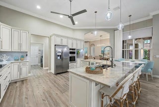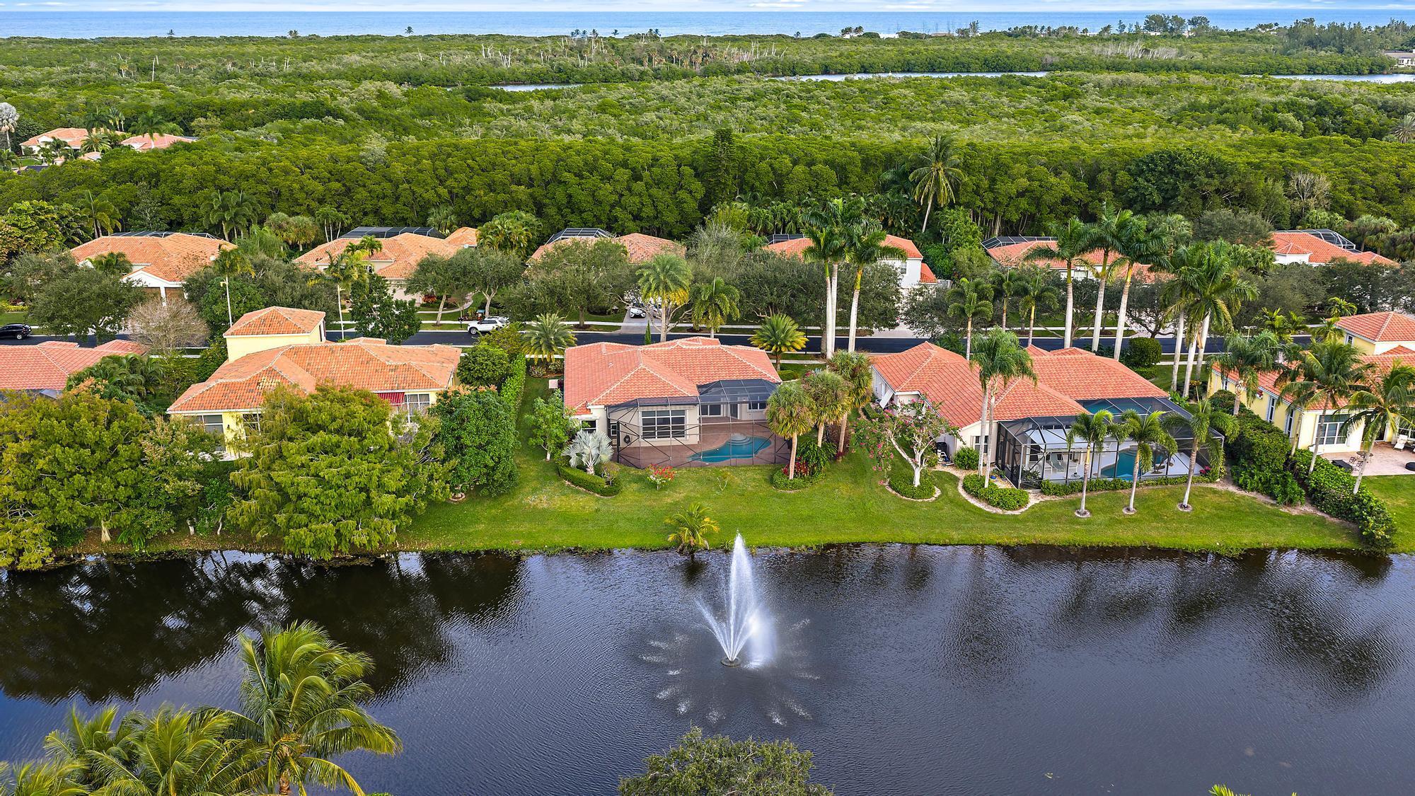 Prepare to fall in love with this exquisitely RENOVATED, single-story LAKEFRONT home in the GATED INTRACOASTAL community of Osprey Cove. Perfectly positioned on an oversized .35-acre lot, this 4 BED, 3 BATH, 2 CG, POOL home showcases soaring 12' ceilings & breathtaking views of the tranquil lake & fountain from the moment you enter. The home boasts a true split bedroom floor plan, offering private retreats, as well as an exceptional open flow for entertaining. Virtually everything is NEW, including a NEW ROOF, NEW AC, NEW WATER HEATER, a stunning NEW KITCHEN, NEW DESIGNER BATHS, & beautiful NEW laminate FLOORING throughout. Impact glass sliders, accordion shutters, & generator provide peace of mind, while a FRESHLY PAINTED exterior and lush NEW LANDSCAPING elevate the home's curb appeal.Double entry doors welcome you into an open, sun-filled interior where elegance meets effortless Florida living. The main living areas are thoughtfully designed to embrace the outdoors, with the living room, dining room, family room, kitchen, and primary suite all wrapping around the tropical lanai and capturing sweeping views of the pool, lake, and fountain beyond. At the heart of the home, the stunning NEW gourmet kitchen is a true showpiece, featuring quartz countertops, high-end hardwood cabinetry, stainless steel appliances, oversized sink, and a reverse-osmosis drinking water system. On-trend, wood-look laminate flooring flows seamlessly throughout the entire home, while every bedroom is enhanced with custom closet organizers for both style and function. The spacious primary suite is a private sanctuary, complete with its own mini-split A/C system for individualized comfort, two walk-in closets with custom built-ins, and a luxurious spa-inspired bath. Indulge in the oversized soaking tub, separate glass-enclosed shower, dual vanities, touch-light mirrors, and stunning floor-to-ceiling tile with elegant waterfall glass and marble-look finishes. The two guest baths are equally impressive, each completely reimagined with designer tile and refined details. Step into a private outdoor sanctuary where a large screened lanai with herringbone pavers and upgraded drainage wraps around the free-form SALTWATER POOL, all framed by serene lake and fountain views, creating an ideal setting for entertaining and everyday relaxation. Newly installed tropical landscaping showcases mature palms, vibrant foliage, and bougainvillea, along with a distinctive moringa tree, celebrated as the nutrient-rich "tree of life" for its many wellness benefits, all illuminated by remote-controlled landscape lighting. A fenced side yard offers added privacy and versatile space for outdoor enjoyment. Additional highlights & upgrades include CBS Construction, full-home water filtration system, remote controlled retractable awnings, BRAND NEW GUTTERS & extended downspouts with advanced underground drainage, epoxy garage floors, new garage door opener (so quiet), SafeRack overhead storage, and an EV charger, delivering both luxury and peace of mind. Situated within the picturesque waterfront enclave of Osprey Cove Yacht Club, this intimate gated community of just 86 single-family homes is nestled along a nature preserve and offers a refined yet relaxed coastal lifestyle. Residents enjoy a clubhouse with fitness center and lounge, heated resort-style pool with tiki hut, and tennis & pickleball courts. A scenic boardwalk leads through the preserve to Intracoastal access with kayak storage and launch, plus a community marina featuring 32 deep-water slips that come up for lease or purchase. Ideally located between the Jupiter Inlet (approx. 10 miles) and the St. Lucie Inlet (approx. 5 miles), this is a boater's dream. With an address that offers great schools and is just minutes to beautiful beaches, world-class golf, fine dining, great shopping, and countless entertainment venues throughout Martin County and the Palm Beaches, 9790 SE Crape Myrtle Court is the perfect year-round home or seasonal retreat. Come in, fall in love, and make it your own. It truly doesn't get any better.