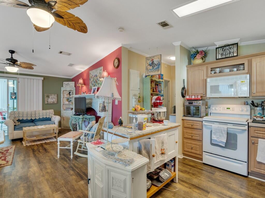 Charming Home in Heritage Plantations. Located on an inside corner lot bordering a beautiful pine and palm tree forest, a neighbor on each side whisper quiet, practically zero traffic, the home has a standard shingled roof, 1200 sq. ft, 2 BR, 2 full bathroom w/a attached mini laundry room, good condition all appliances, fully wired to a 9000 watt generator, new plywood floors with top grade slats, they offer all the amenities It is in move-in condition. They offer all the amenities, ball courts, pool, big community center. Come take a look at this beautiful home and community.