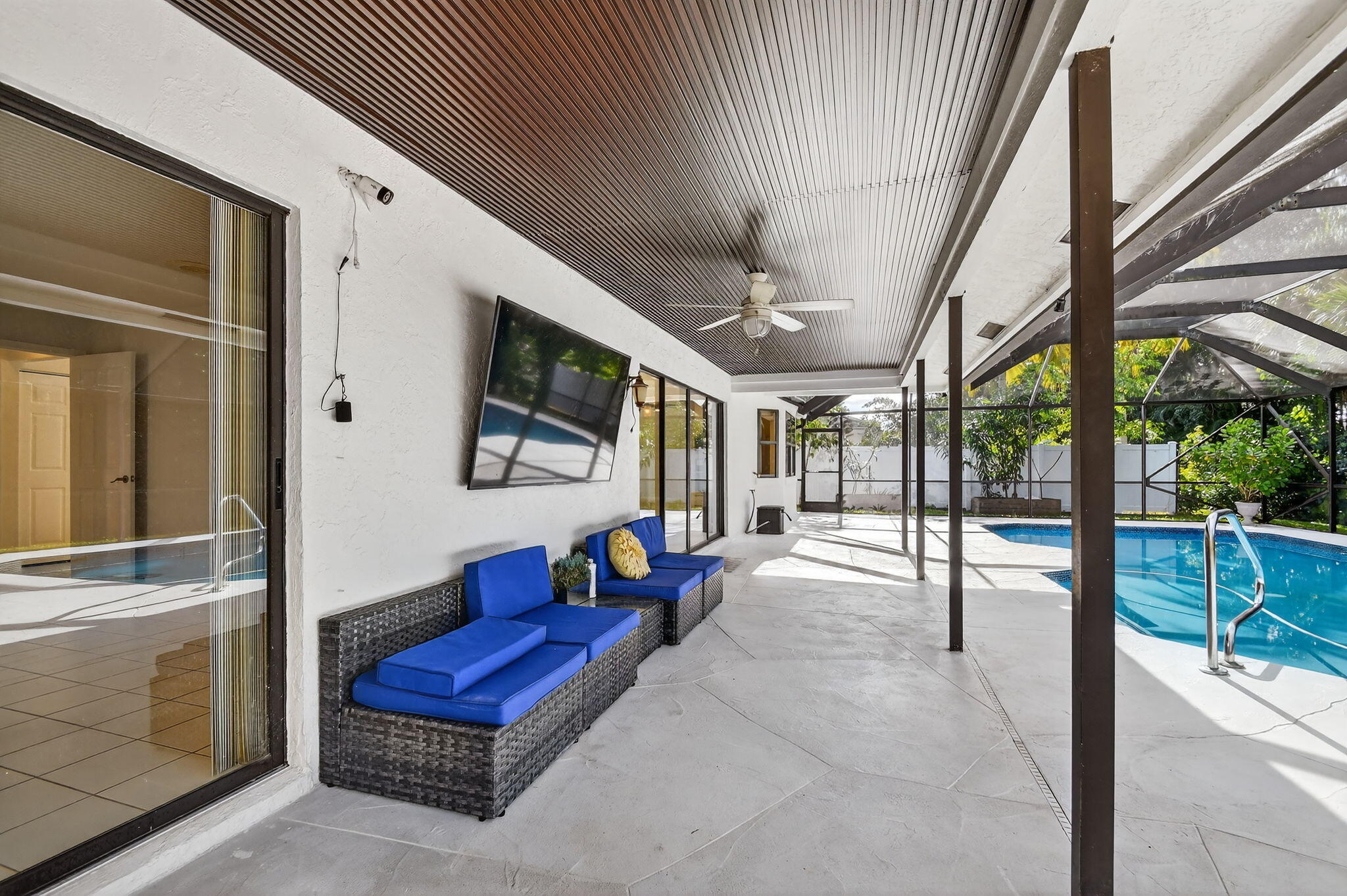 NO HOA, 3 Bed, 3 Bath Open Concept Space for Boat, RV or Both. Oversized Screened Salt Water Pool, Canal/Golf Course View, Privacy Fencing, 50 Year Hidden Fastener Metal Roof, 2 A/C zoned systems both Aero Duct Sealed. Whole House no-salt Water Filter. High ceilings and large windows and rooms make this home spectacular, perfect for entertaining. Primary suite with Her Bath and His Bath/Cabana Bath, His/her large walk in closets, along with her whirlpool and shower, all in a conditioned space with it's own AC Unit. Roof 2022, AC 2022, WH 2022 To top it off, 9.9KW 31 LG Solar Panel System 2022 (back of home out of sight) Buyer to assume solar loan. The system powers the home with ease. Mango, Banana and Lemon trees. Prestigious home, in highly desirable NO HOA community. A-Rated Schools