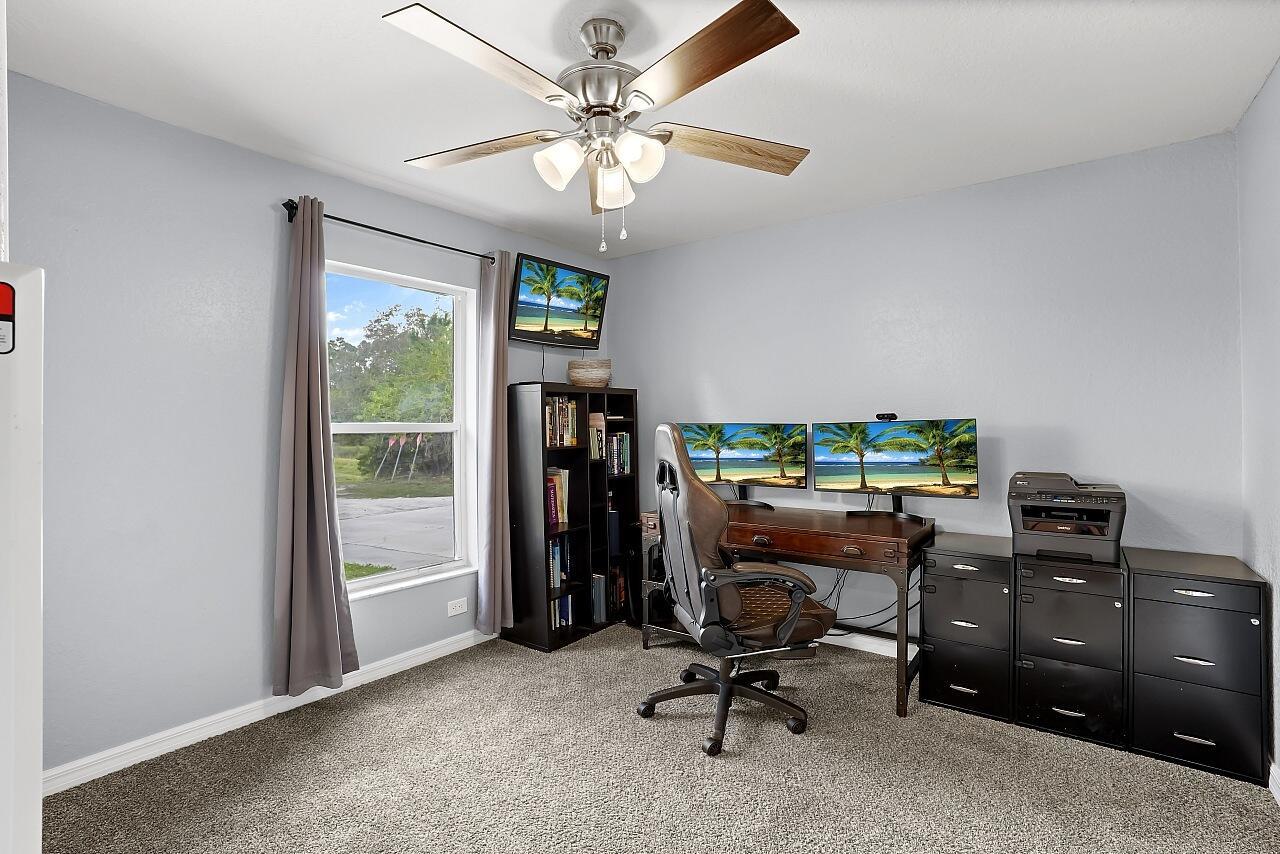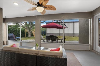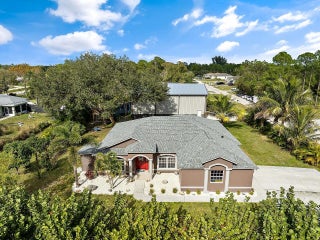Built for serious RV, boat, and equipment owners, this rare .52-acre property in Vero Lake Estates delivers true freedom and infrastructure. Located in unincorporated Indian River County with NO HOA, the property is anchored by a $250,000+ commercial-grade steel 1925 Sq Ft workshop built by MBMI Buildings, engineered for durability, access, and long-term performance.The 55' x 35' x 25' over-engineered steel building features two 16-ft high doors, allowing effortless drive-in storage for large RVs, boats, trailers, and commercial vehicles. Designed for real use, the building includes 100-amp and 50-amp RV hookups, water access at both the front and rear, gutters with four downspouts, whole-building generator conduit, and CAT-5 wiring ideal for storage, maintenance, hobbies, or businessoperation without restrictions. The renovated 1,762 sq ft CBS home built by Groza Homes complements the workshop with a comfortable split floor plan, 3 bedrooms, 2 bathrooms, and a 2-car garage. Updates include a redesigned kitchen with granite countertops and newer appliances, tile flooring throughout, 2020 roof with peel-and-stick waterproofing, HVAC 2021, hot water heater 2022, upgraded electrical, new well pump, whole-house dehumidifier, whole-house surge protection, and advanced water filtration. The primary bathroom has been fully renovated, offering a spa-like retreat with a coastal-modern feel. It features a custom walk-in shower wrapped in striking multi-tone plank tile, a pebble-stone shower floor, brushed nickel fixtures, rainfall-style showerhead, and a double-sink vanity with quartz-style countertops and updated lighting. Outdoors, enjoy 10+ mature fruit trees, including dragon fruit, mango, and avocado, along with an optional security system. A truly rare opportunity to own proper RV and boat infrastructure paired with a move-in-ready home, offering space, power, and freedom in one of Vero's most sought after no-HOA areas.
