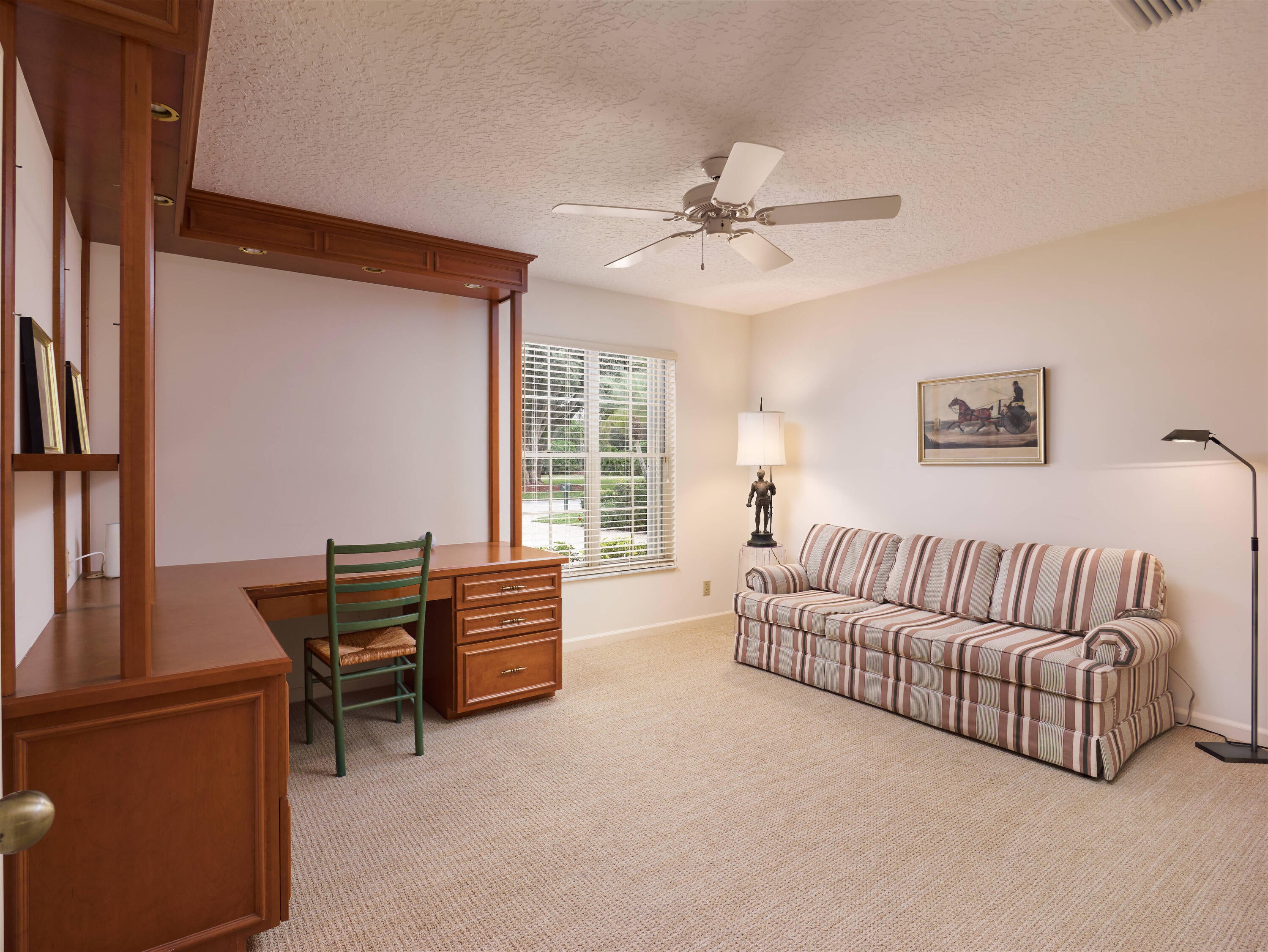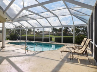 Located in the Preston neighborhood of PGA National, this 3-bedroom, 3-bath single-family residence offers 2,615 square feet of living space with a traditional, well-defined layout. Features include a 2-car garage, high ceilings, warm wood flooring, and an ivory-toned interior throughout. The home offers separate living and formal dining rooms, a kitchen with breakfast nook, and a flexible office/guest room. The expansive primary suite features patio access and an en-suite bath. Outdoors, enjoy a covered and screened patio with pool, privacy hedging, and serene views of the Palmer Golf Course. Additional highlights include a whole-house gas generator and accordion hurricane shutters. Situated on a peaceful cul-de-sac with green space across the street, this well-maintained home, owned bythe same family for over 30 years, presents an exceptional opportunity for renovation and customization. Come experience the setting, the space, and the potential for yourself.