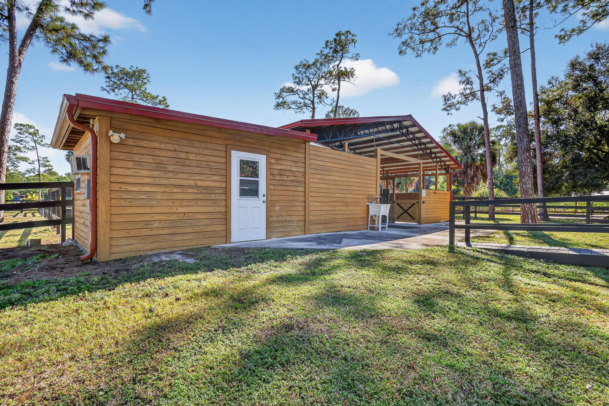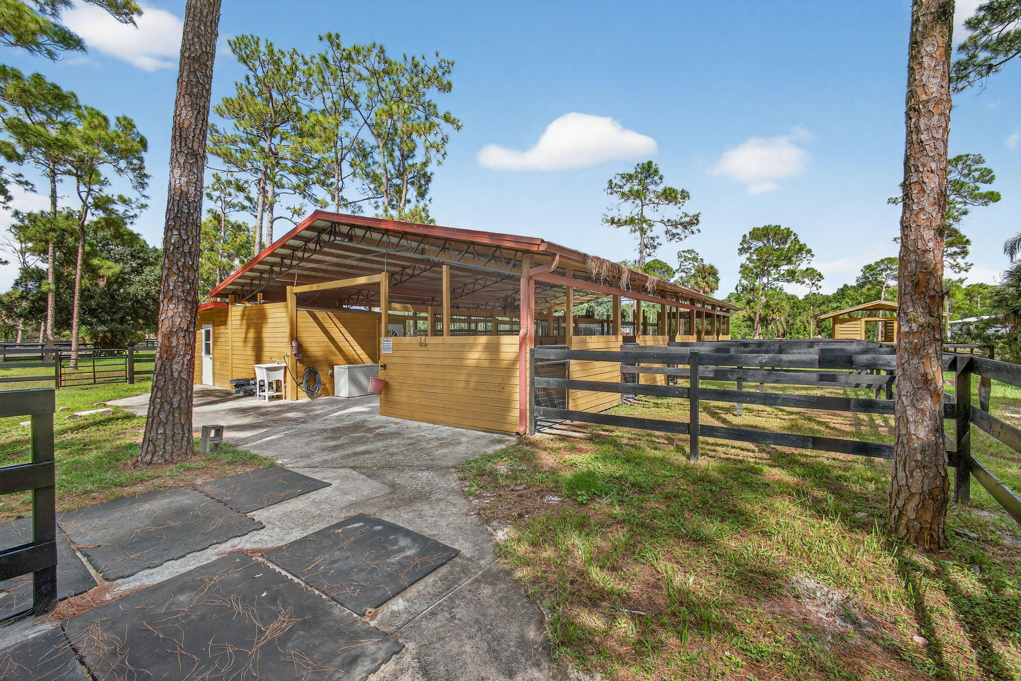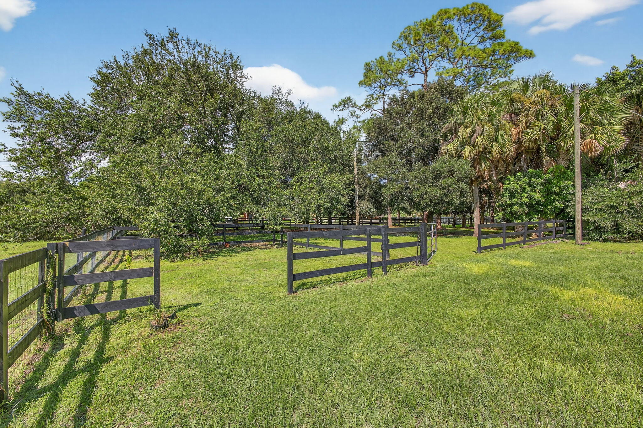 Loxahatchee Groves equestrian estate 10 min to WEF Near White Fences 5 shaded acres 9-stall barn with runouts 100200 irrigated arena Turnkey cottage Set on 5 private, tree-lined acres in Loxahatchee Groves, this equestrian estate offers a rare combination of year-round comfort, seasonal flexibility, and professional-caliber horse facilities just 10 minutes from WEF and minutes from White Fences. The property includes a recently updated 4-bedroom, 2-bath single-family home with impact windows, new laminate flooring, new interior paint, a new AC system, a screened back patio overlooking the pond, and a covered front porch shaded by mature palms and natural canopy.This furnished wood-style cottage includes a full kitchen, laundry, chimney, and WiFi, and is available for both annual and seasonal terms. The equestrian infrastructure is designed for ease, safety, and efficiency. The 9-stall center-aisle barn features 12×14 matted stalls, each with a direct runout, excellent ventilation, durable metal roofing, mounted aisle fans, and wide walkways for grooming. Directly adjoining this setup is a separate 1-stall house with its own individual paddock, ideal for specialty housing and a practical solution for a stallion or any horse requiring a private turnout arrangement. A private A/C tack room provides washer, dryer, bathroom, 14 saddle racks, and a refrigerator. A dedicated feed room, double wash racks, manure pit, and trailer parking support a complete working program. Multiple shaded holding areas and an additional stall structure increase flexibility for rotation and management. A Gator is available for use as part of the rental. The 100×200 irrigated arena offers quality footing and full fencing, suitable for flatwork, training rides, and lessons. A round pen adds convenience for warm-ups and groundwork. Across the property, six large renovated paddocks provide generous turnout options, each with water access and secure fencing. The layout keeps horses comfortable under natural shade from surrounding palm clusters, bamboo stands, and mature hardwoods. The entire 5-acre parcel offers a peaceful, green setting with abundant trees, natural privacy buffers, open grassy areas, and thoughtful pathways connecting the home, cottage, barn, and paddocks. A stocked pond creates a scenic backdrop from the screened patio. Multiple gates and wide driveways accommodate horse trailers and deliveries, and two RV hookups allow additional support housing if needed. Although private, the property sits close to major equestrian venues, training centers, feed stores, veterinary services, making it an ideal seasonal base or annual home for riders. Nearby amenities add to the convenience of the location. A coffee shop is approximately 0.9 miles away, groceries are about 1.2 miles away, a pharmacy is roughly 1.3 miles away, and casual dining can be found within 1.1 miles. The nearest park with riding-friendly trails is about 1.0 mile from the property. Retail options sit within approximately 1.4 miles, and a local gym is around 1.2 miles away. The Loxahatchee Groves library is about 1.6 miles away, and Wellington Regional Medical Center, a major employer and resource, is a short drive away. These points anchor the property in a well-connected yet rural equestrian corridor. Annual rent is $10,000 per month, with seasonal rates available upon request and a four-month minimum stay for seasonal terms. Both the main home and the cottage can be configured to accommodate a range of living arrangements, and the full equestrian setup supports a variety of riding disciplines. With its proximity to Wellington's showgrounds, extensive equestrian trail networks, natural setting, and professional facilities, this property offers an exceptional opportunity for those seeking a complete, private horse-ready estate in the heart of Palm Beach County's riding community.